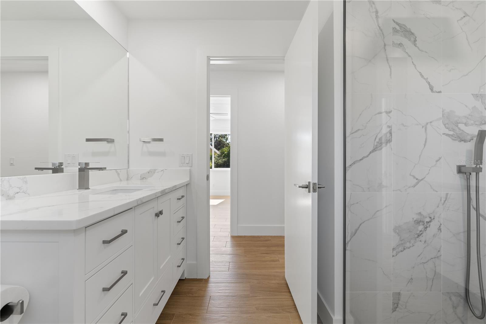 FULLY UPDATED ONE-ACRE MODERN COASTAL HOME NEAR MANASOTA BEACH - Set on a full acre in the heart of Englewood, this completely renovated 3 BED/2 BATH home pairs crisp coastal design with modern functionality--all just over a mile from the Manasota Key Beach. With the whole home updated, it's ready to enjoy from day one. Whether you're seeking a primary home with room to breathe, a seasonal escape, or an income-generating short-term rental, this property delivers flexibility and long-term value. A bright, open layout welcomes you inside, where vaulted ceilings and natural light create an airy sense of space. The brand-new kitchen is a showstopper featuring KraftMaid cabinetry, Carrara quartz waterfall countertops, artisan tile backsplash, and a full suite of stainless-steel smart appliances. The adjacent dining area features complimentary built-in cabinetry. Great room and dining area flow effortlessly together. Both bathrooms have been beautifully redone with frameless glass showers w/floor to ceiling tile, luxury vanities, and Carrara quartz counters. Split bedroom layout boasts large bedrooms. The bonus room is suitable for use as a 3rd bedroom, an office, studio, or exercise room. Wood-look, plank tile runs throughout the home, adding warmth and continuity. Peace of mind is provided by the 13ft structural elevation and superior HURRICANE PROTECTION with ALL NEW IMPACT-RESISTANT doors & windows installed in 2024. Home has county water & sewer plus on-site well for irrigation. Additional upgrades include a 2019 roof, NEW window blinds, all new ceiling fans, fresh interior & exterior paint, custom closets w/built-ins, NEW 3-ton, variable speed Goodman HVAC system. A 15x25 standalone shed with electric is perfect as a workshop or as storage for your toys and gear. With just over an acre of Residential Estate-zoned land, there's room to expand--add a pool or even build a larger home & use current residence as a guest house/in-law suite or studio. Property has been cleared and new landscaping installed giving it great curb appeal. The setting is private yet conveniently close to Englewood's dining, boutiques, and beach access points. PROPERTY HIGHLIGHTS: 3 Bedrooms | 2 Bathrooms | 1,532 SF under air | 1.01-Acre Lot | Roof 2019 | Impact Windows 2024 | HVAC 2025 - Enjoy the space, serenity, and style of this beautifully finished Englewood home--just minutes from the Gulf. Make an appointment today.