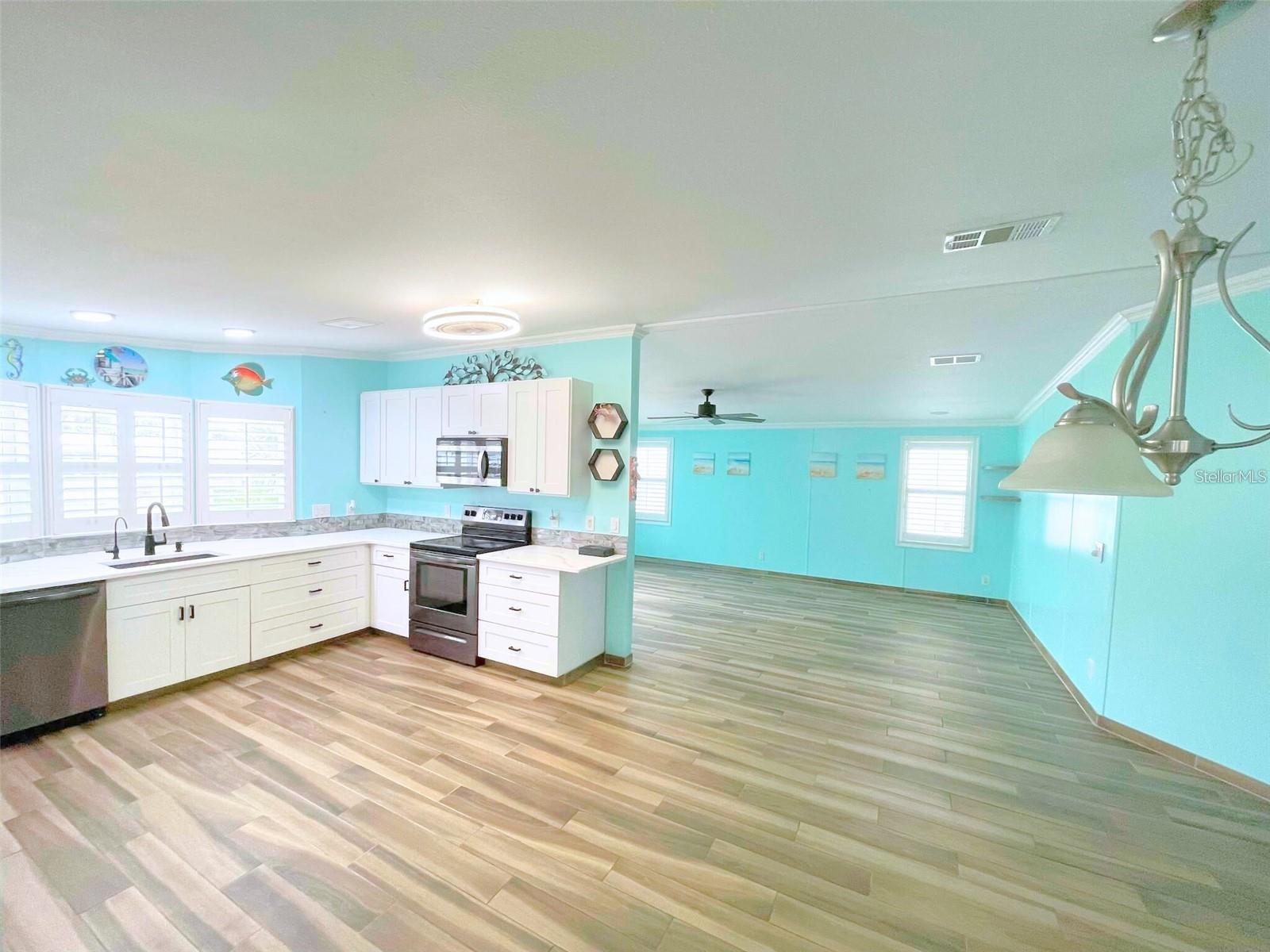 MOTIVATED SELLER - BRING OFFERS!!!! YOU OWN THE LAND, and YOU CAN GET A MORTGAGE!! Welcome to 6642 Acacia Ct., a beautifully LARGE upgraded 2-bedroom, 2-bath doublewide manufactured home with a CLOSED-IN FLORIDA ROOM UNDER AIR located in the desirable 55+ gated community of Holiday Park, where there are NO HOA fees and NO hurricane damage! Nestled on a quiet cul-de-sac in the PET SECTION, this spacious home offers 1,620 sq. ft. of stylish, move-in-ready living space, ideal for those seeking comfort, convenience, and an active lifestyle. Step into the air-conditioned Florida room, recently converted into a bright enclosed sunroom featuring all-new windows, a mini-split system for heating and cooling, an exterior door, and sliding glass doors--perfect for relaxing or entertaining. Inside, you'll find a stunning, fully updated kitchen with quartz countertops, a stylish backsplash, soft-close cabinetry, and sleek black stainless-steel appliances (4 years old, excluding fridge). With three pantries, an upgraded sink and faucet, and a whole-house sound system, this kitchen offers both form and function. The spacious master suite is a peaceful retreat with three large windows, high ceilings, and a built-in closet. The master bath has been fully remodeled with dual vanities, new faucets and light fixtures, and a luxurious walk-in shower with glass doors and custom tile. The guest bedroom includes a triple closet with built-in drawers, and the guest bath features a shower/tub combo with ample storage space. Enjoy the convenience of an indoor laundry room, which has been replumbed and upgraded with upper cabinets for added storage. The oversized carport is one of the largest in the park, and outside you'll also find a large utility shed, concrete patio, and sidewalk wraparound for easy access to the home. Additional upgrades include: Roof (2023) rated for up to 165 mph winds, Storm Stopper hurricane shutters (up to 160 mph protection), New plantation shutters, windows, tile, and luxury vinyl plank flooring. Fresh paint, crown molding, and lush landscaping with fruit trees This home combines modern upgrades with the charm and ease of Florida living. The low monthly maintenance fee of $195 ($2,340/year) is included in your taxes and gives you access to an impressive list of community amenities, including: 2 heated pools 2 clubhouses Fitness center Library Pickleball, tennis, shuffleboard, bocce, horseshoes, billiards, and more! Located just minutes from shopping, dining, entertainment, golf courses, airports, and Florida's world-famous beaches, this home offers the perfect balance of relaxation and activity--all without the hassle of an HOA. Don't miss your chance to own this gem in Holiday Park--schedule your showing today!