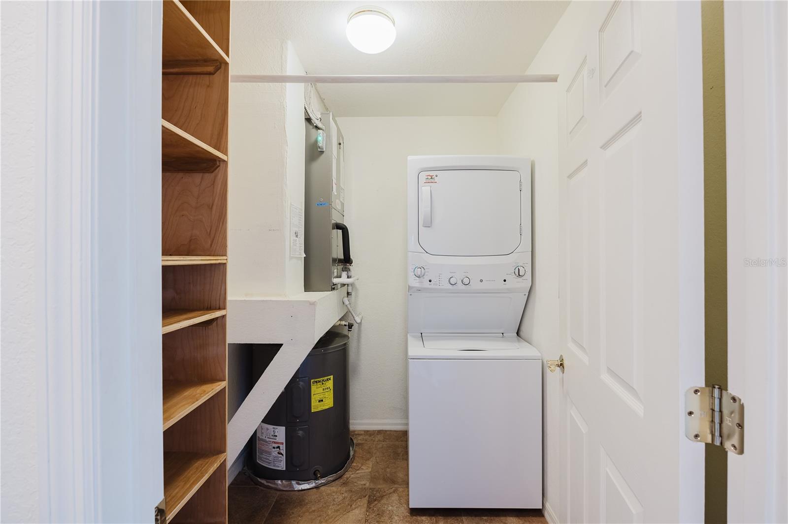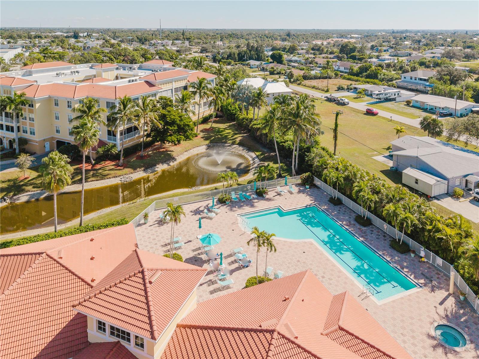 Welcome home to the gated community of Fountain Court! This beautifully maintained 3rd-floor CORNER condo in Building 1 offers a blend of comfort, convenience, and resort-style living. Step inside to find matching tile flooring throughout and abundant natural light that enhances the open, inviting layout. The spacious living room flows seamlessly to the screened-in lanai, where peaceful views of swaying palm trees create the perfect backdrop for morning coffee or evening relaxation. The kitchen features newer stainless steel appliances, ample cabinetry, and a bright, functional layout. Just off the kitchen, an inside utility room adds extra convenience with laundry and additional pantry/storage space. The primary bedroom is a true retreat, offering a large walk-in closet and an en-suite bath with dual sinks, a step-in shower, and a dedicated vanity area. This unit includes under-building parking with one assigned space. Fountain Court provides exceptional amenities, including two elevators per building, a heated pool and spa, clubhouse, tennis & pickleball courts, shuffleboard, fitness center, library, game room, outdoor grills, and a private storage unit in the parking area. Additional guest parking is available outside. Located in the heart of Punta Gorda, you're just minutes from Fishermen's Village, waterfront parks, dining, shopping, and Harborwalk. This condo offers the low-maintenance lifestyle you've been looking for, paired with all the comforts of home and the luxuries of a premier community.