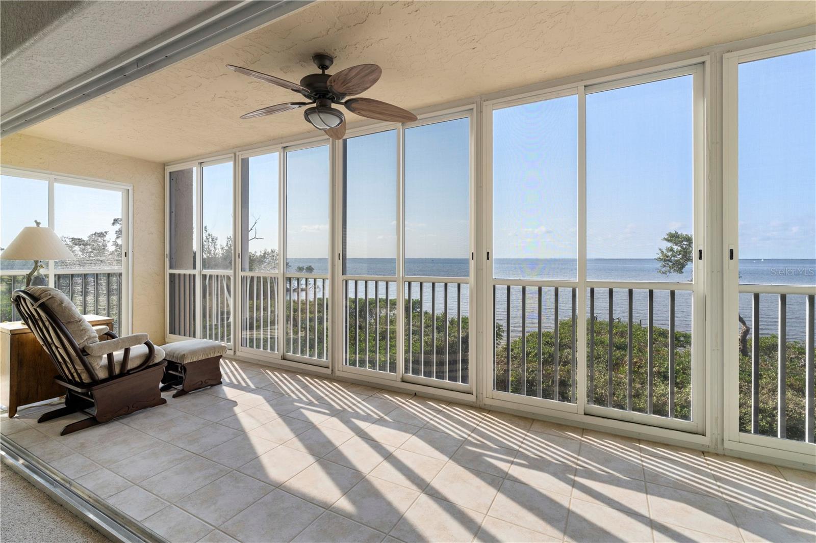 SPACIOUS END-UNIT CONDO WITH PANORAMIC HARBOR VIEWS & EXCEPTIONAL SUNSETS! Set along the shoreline of Charlotte Harbor, Points West pairs breathtaking water views with the comfort of a close-knit community. This spacious 3 bed/2 bath end-unit condo offers nearly 1,600 sq ft of open living plus an enclosed, tiled balcony that blends indoor and outdoor living with ease. From the moment you step through the screened entry into the inviting foyer, you're greeted by mesmerizing harbor views that set the tone for this remarkable property. With a western rear exposure, you'll enjoy vibrant Florida sunsets from nearly every room, providing the perfect backdrop for daily living or entertaining guests. The open concept floor plan includes a corner kitchen that opens to the living room & adjacent dining area. The kitchen features a curved island w/breakfast bar, updated appliances, granite counters, wood cabinetry plus a closet pantry. Enclosed lanai/balcony has glass sliding door enclosure that allow year-round, climate-controlled enjoyment of this outdoor living space. Sit out here & watch as boats meander by, dolphins play & the eagles, egrets, hawks, osprey & pelicans fly by. NEW CARPET throughout. The spacious master suite also boasts a fabulous view, featuring walk-out access to the balcony, a custom oversized walk-in closet with built-ins, and a spa-inspired master bath with dual sinks and a beautifully tiled shower. Two generously sized guest rooms share a stylish guest bath, making this home ideal for hosting friends and family. A convenient interior laundry room with a full-sized washer and dryer offers extra storage space. Unit comes with one private, under-building garage (Unit C) that features an elevated storage loft & tile flooring. Other updates include motorized window treatments in dining area & master bedroom, plantation shutters in guest bedrooms, whole-condo surge protector, EZ water conditioning system, modern ceiling fans in every room, NEW hot water heater (2023), NEW dishwasher (2024), NEW microwave (2022), NEW refrigerator (2021). The community features a clubhouse, heated swimming pool, private tennis/pickleball court & kayak launch w/adjacent kayak storage racks. Launch your kayak directly into the harbor from in back of the property. FANTASTIC LOCATION means this condo is just moments from the Isles Yacht Club, historic downtown Punta Gorda, and numerous local parks. Whether walking, biking, or driving, you'll find yourself close to shopping, dining, and entertainment. Discover why Punta Gorda is often considered among the best places to live, work, and retire in SW Florida.