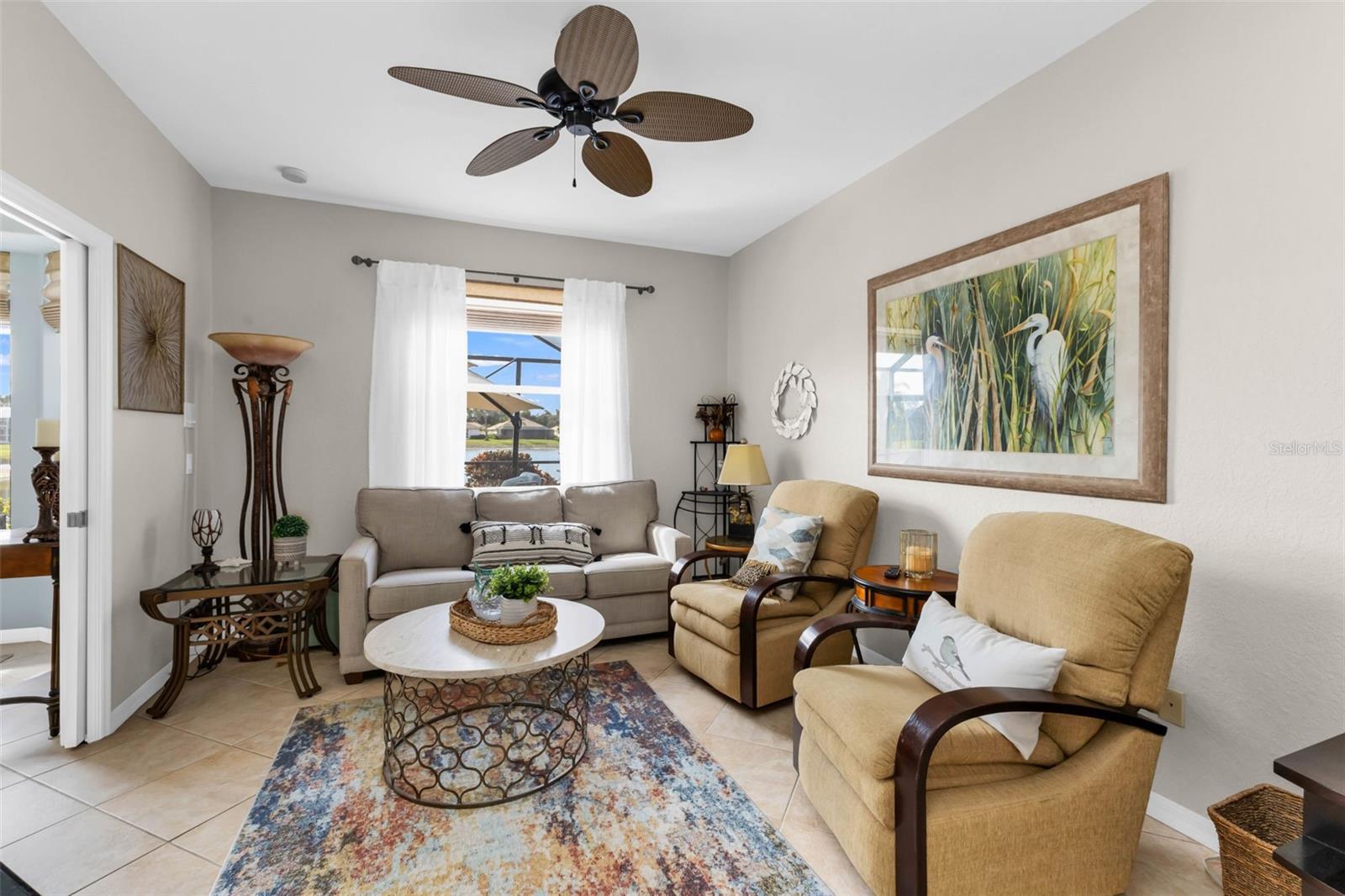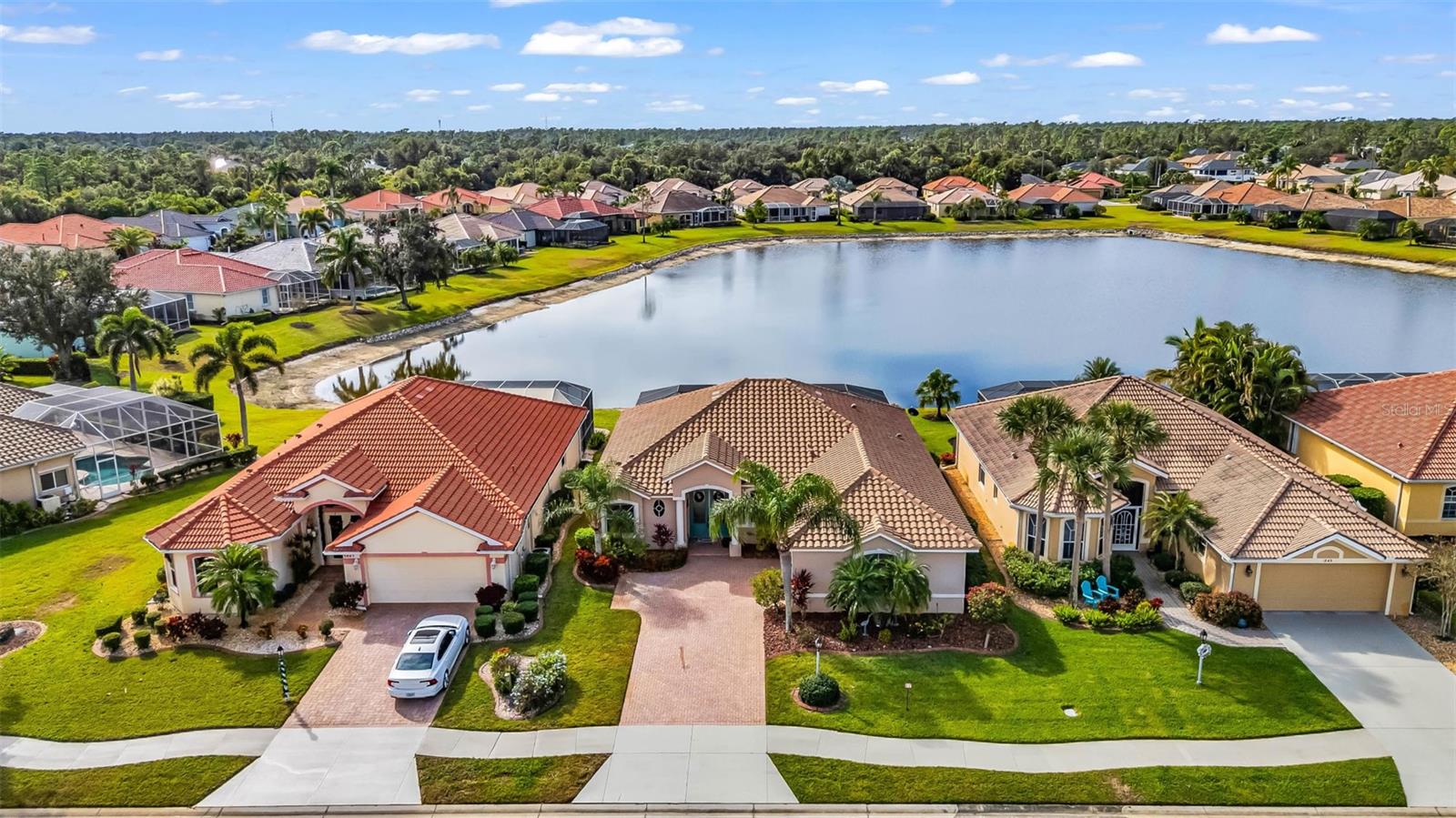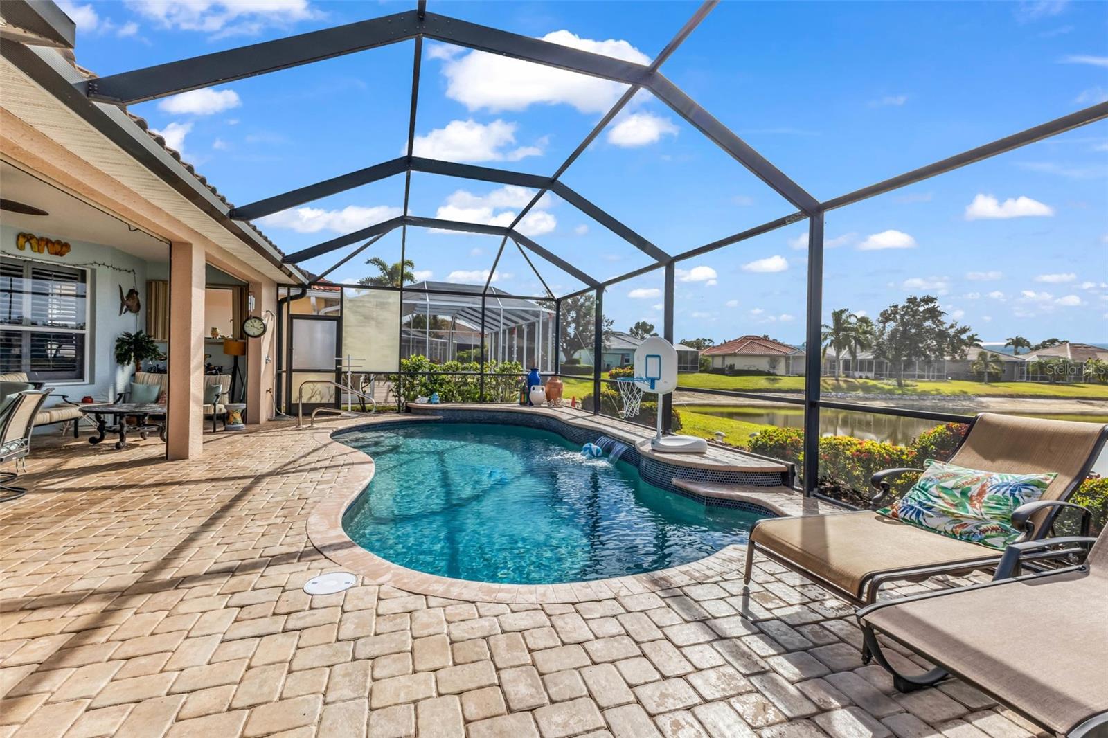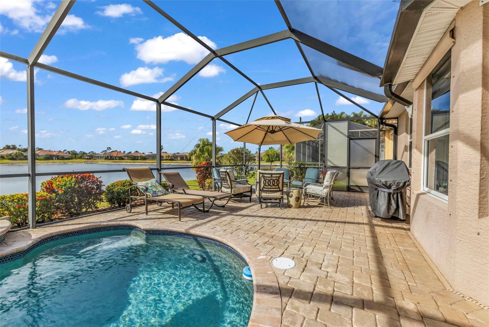 Welcome to your personal lakeside retreat in the gated community of Bobcat Trail. This beautifully maintained 3-bedroom, 2-bathroom pool home offers the perfect blend of comfort, style, and year-round outdoor living. Ideally positioned to capture stunning lake views and beautiful sunsets. This residence delivers the peaceful atmosphere and modern conveniences you've been searching for. Step inside to a bright, open-concept living area featuring large sliding doors that flood the space with natural light and provide serene water views. The spacious kitchen opens seamlessly to the dining and living rooms, creating an inviting layout ideal for gatherings and everyday living. The primary suite is your private oasis, complete with generous closet space and an ensuite bathroom. Two additional bedrooms offer flexibility for family, guests, or a home office. A second full bathroom ensures comfort and convenience for all. Step outside and discover your own backyard paradise. A sparkling in-ground heated pool overlooks the tranquil lake, offering the perfect setting for morning coffee, afternoon swims, or evening relaxation. Whether you're entertaining or unwinding, this space delivers unmatched Florida-style indoor/outdoor living. Additional features include a 2-car garage, ample storage, lush landscaping, and a quiet, welcoming neighborhood atmosphere. This home is being sold fully furnished/turn-key. New roof 2024, A/C 2025, Screen cage 2024, Newer pool heater, pump and skimmer.This is more than a home--it's a lifestyle. Don't miss your chance to enjoy lakeside living at its finest!