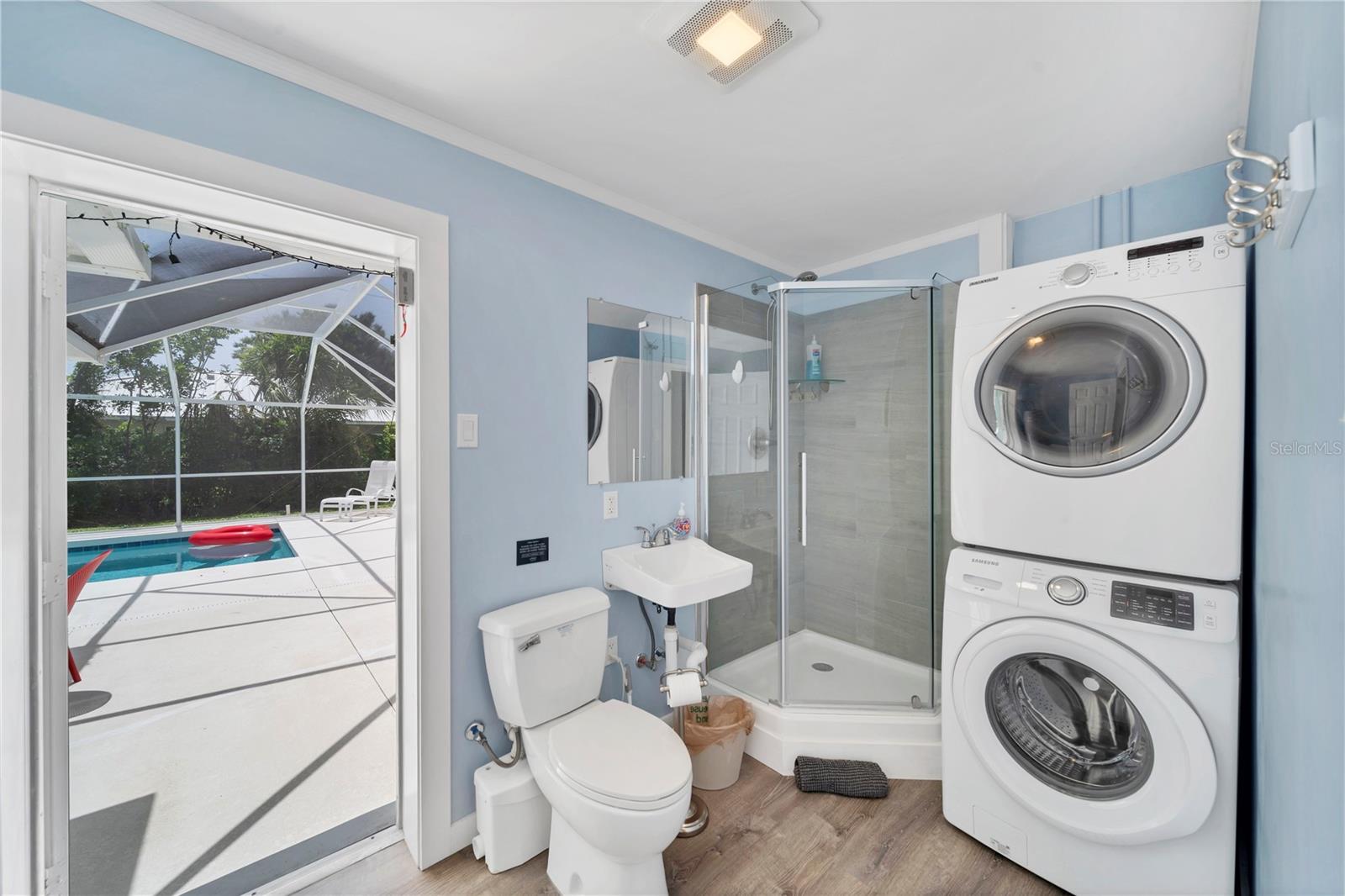 Exterior: Garden, Outdoor Shower, Rain Gutters, Sliding Doors