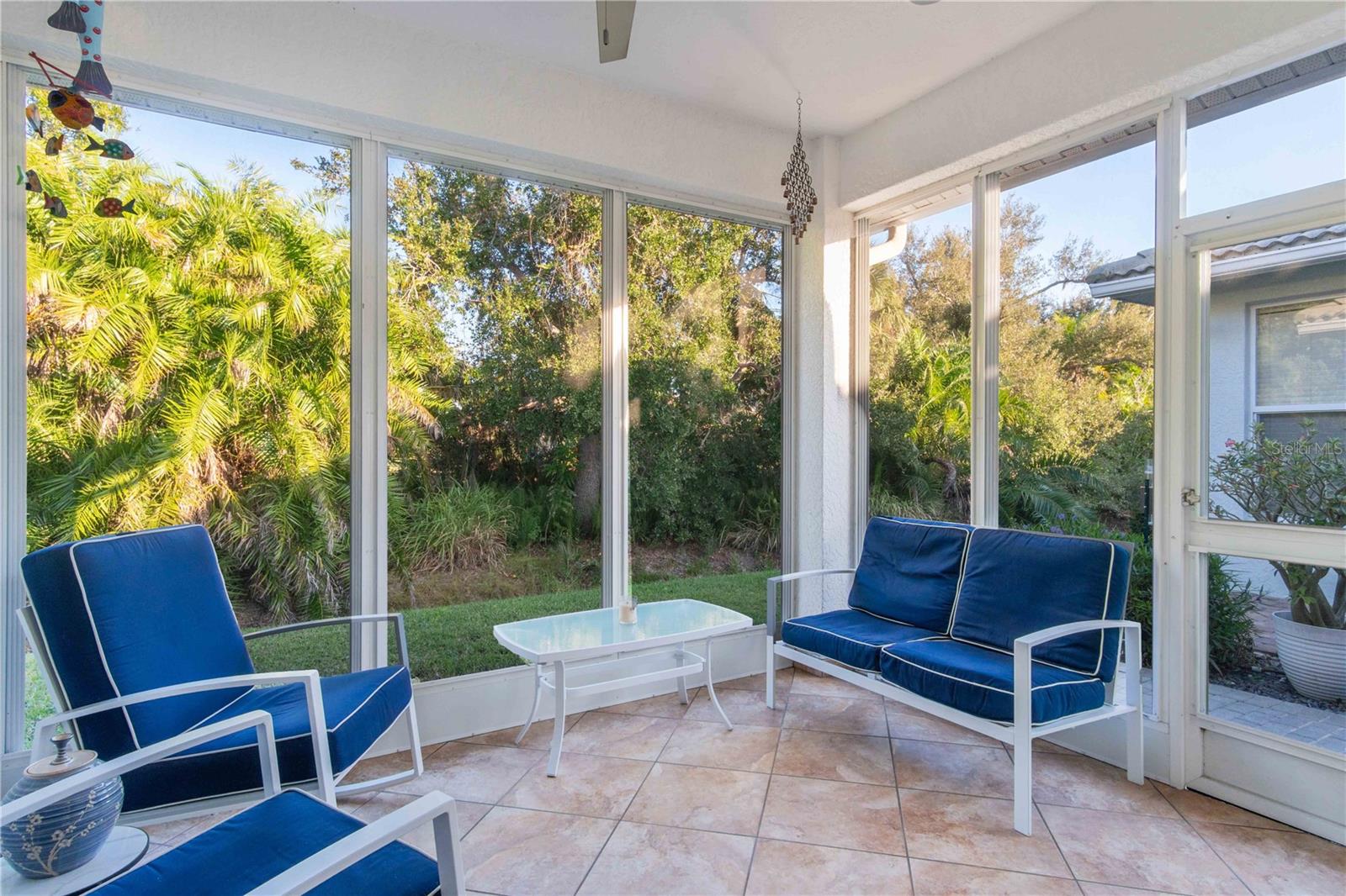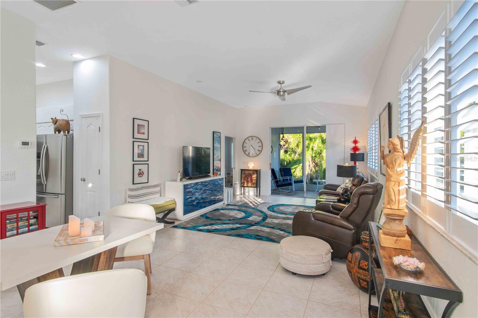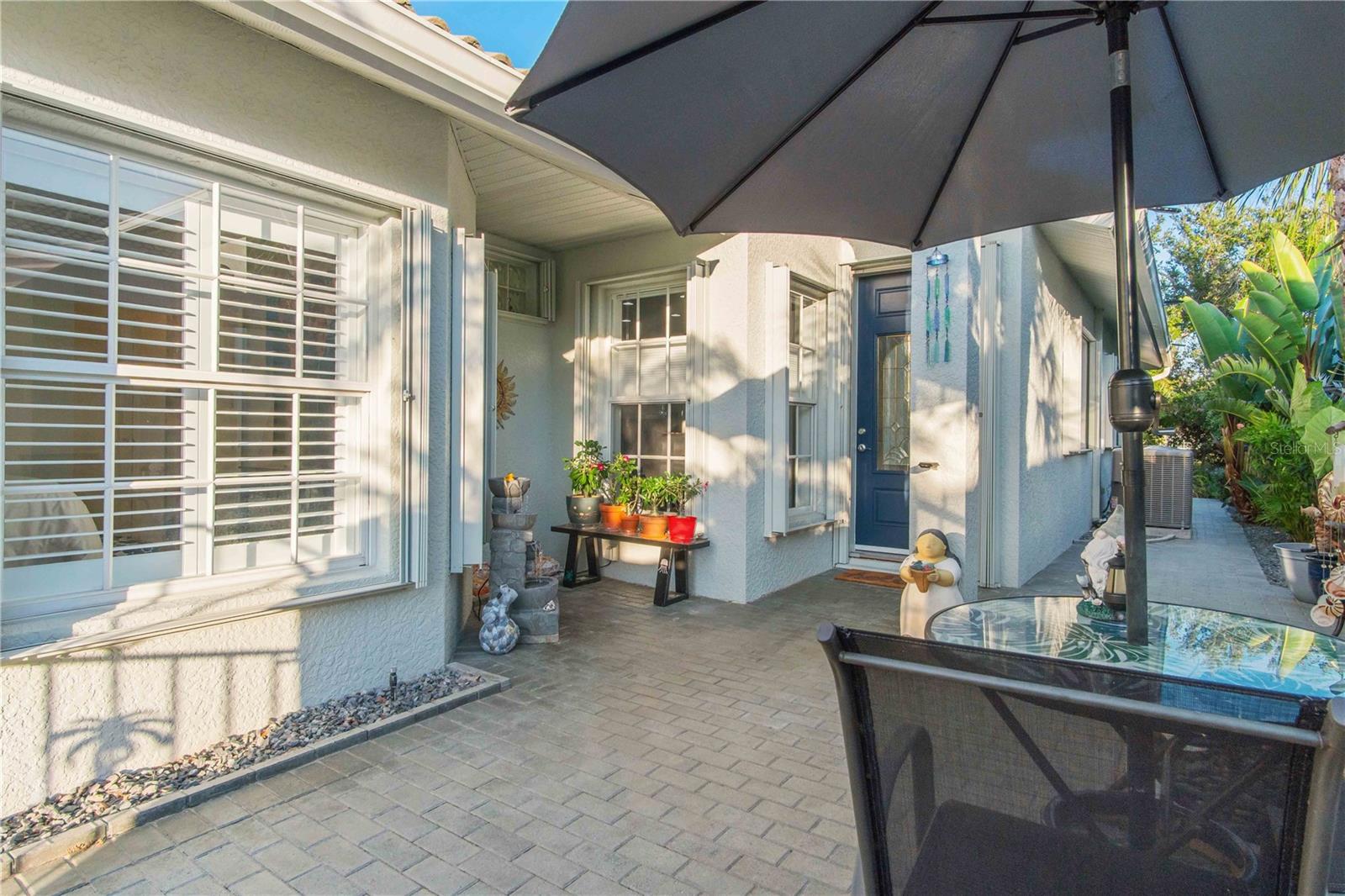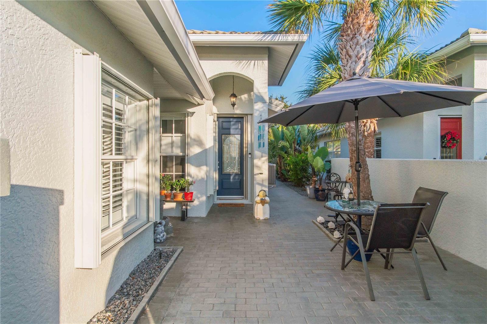 Welcome to your piece of paradise in the highly sought-after maintenance free community of Auburn Hammocks. This pristine community of only 47 properties includes a heated community pool directly across the street from your new villa, a clubhouse, a gated entry for security, lawn care, irrigation, and more despite it's shockingly affordable HOA fees. The property features plenty of privacy in the back yard and is fully move in ready for your convenience. Located only 4 miles from Venice beach, with top dining and entertainment destinations on the way, will have you feeling like every day is a vacation from the moment you move in. Once inside the property, you will be greeted by an open layout with tall ceilings and plenty of space to entertain friends and family, or to simply enjoy yourself. The kitchen features granite countertops, planter shelves, a pantry, and stainless-steel appliances. Nearby there is a custom coffee bar with custom cabinets, granite counters, and a wine fridge that is included with the sale. The layout of the home allows you to choose where you want your dining room to be situated and there are wood planation shutters throughout the home along with modern fans and fixtures. The master suite is well oversized, with room for a king bedroom set and more. Plus, the closet is among the largest of closets you will ever find in this price. The master bath has his & her vanities, granite counters, tiled shower, and additional overhead storage. On the opposite side of the home you will find the guest bedroom and bathroom near the interior laundry room giving you plenty of privacy from guests. The bathroom matches the master suite with the added bonus of a shower/tub combo, and the guest bedroom is also well sized with a larger than typical closet. Enjoy your morning cup of coffee or relax in the evenings from your screened in lanai as you plan out your future experiences that Venice has to offer. Unlike many other units, this Villa also has full hurricane protection with accordion shutters for the front door and all windows, along with traditional shutters for the lanai slider and a generator plug in the garage. Contact your agent today for a private showing before this opportunity is gone!