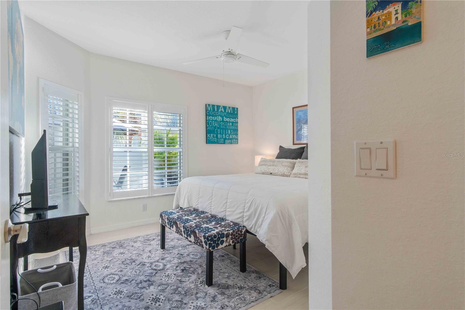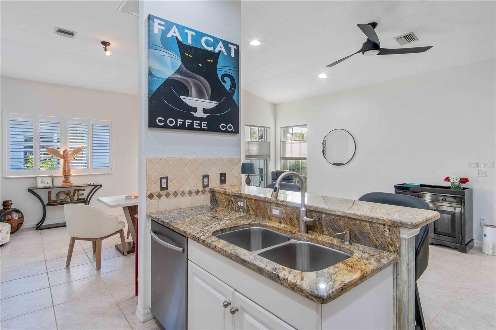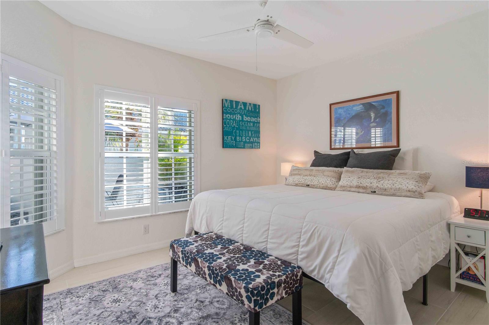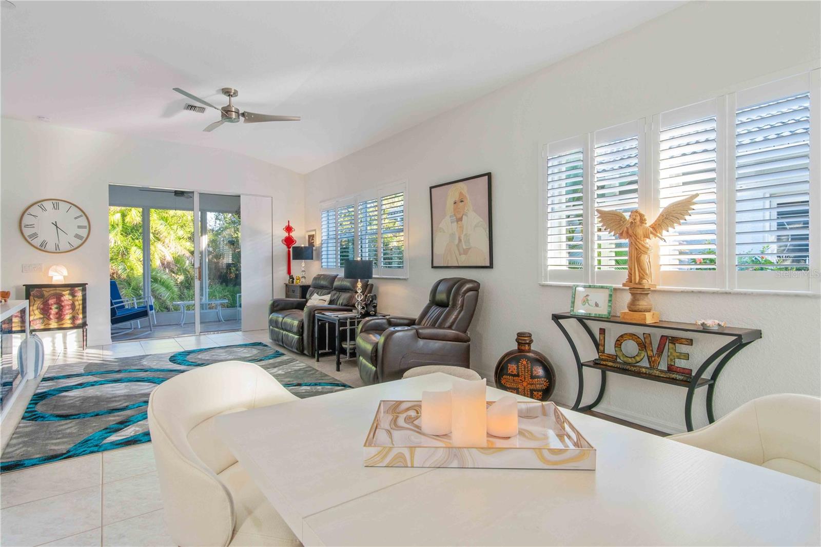 Welcome to your piece of paradise in the highly sought-after maintenance free community of Auburn Hammocks. This pristine community of only 47 properties includes a heated community pool directly across the street from your new villa, a clubhouse, a gated entry for security, lawn care, irrigation, and more despite it's shockingly affordable HOA fees. The property features plenty of privacy in the back yard and is fully move in ready for your convenience. Located only 4 miles from Venice beach, with top dining and entertainment destinations on the way, will have you feeling like every day is a vacation from the moment you move in. Once inside the property, you will be greeted by an open layout with tall ceilings and plenty of space to entertain friends and family, or to simply enjoy yourself. The kitchen features granite countertops, planter shelves, a pantry, and stainless-steel appliances. Nearby there is a custom coffee bar with custom cabinets, granite counters, and a wine fridge that is included with the sale. The layout of the home allows you to choose where you want your dining room to be situated and there are wood planation shutters throughout the home along with modern fans and fixtures. The master suite is well oversized, with room for a king bedroom set and more. Plus, the closet is among the largest of closets you will ever find in this price. The master bath has his & her vanities, granite counters, tiled shower, and additional overhead storage. On the opposite side of the home you will find the guest bedroom and bathroom near the interior laundry room giving you plenty of privacy from guests. The bathroom matches the master suite with the added bonus of a shower/tub combo, and the guest bedroom is also well sized with a larger than typical closet. Enjoy your morning cup of coffee or relax in the evenings from your screened in lanai as you plan out your future experiences that Venice has to offer. Unlike many other units, this Villa also has full hurricane protection with accordion shutters for the front door and all windows, along with traditional shutters for the lanai slider and a generator plug in the garage. Contact your agent today for a private showing before this opportunity is gone!