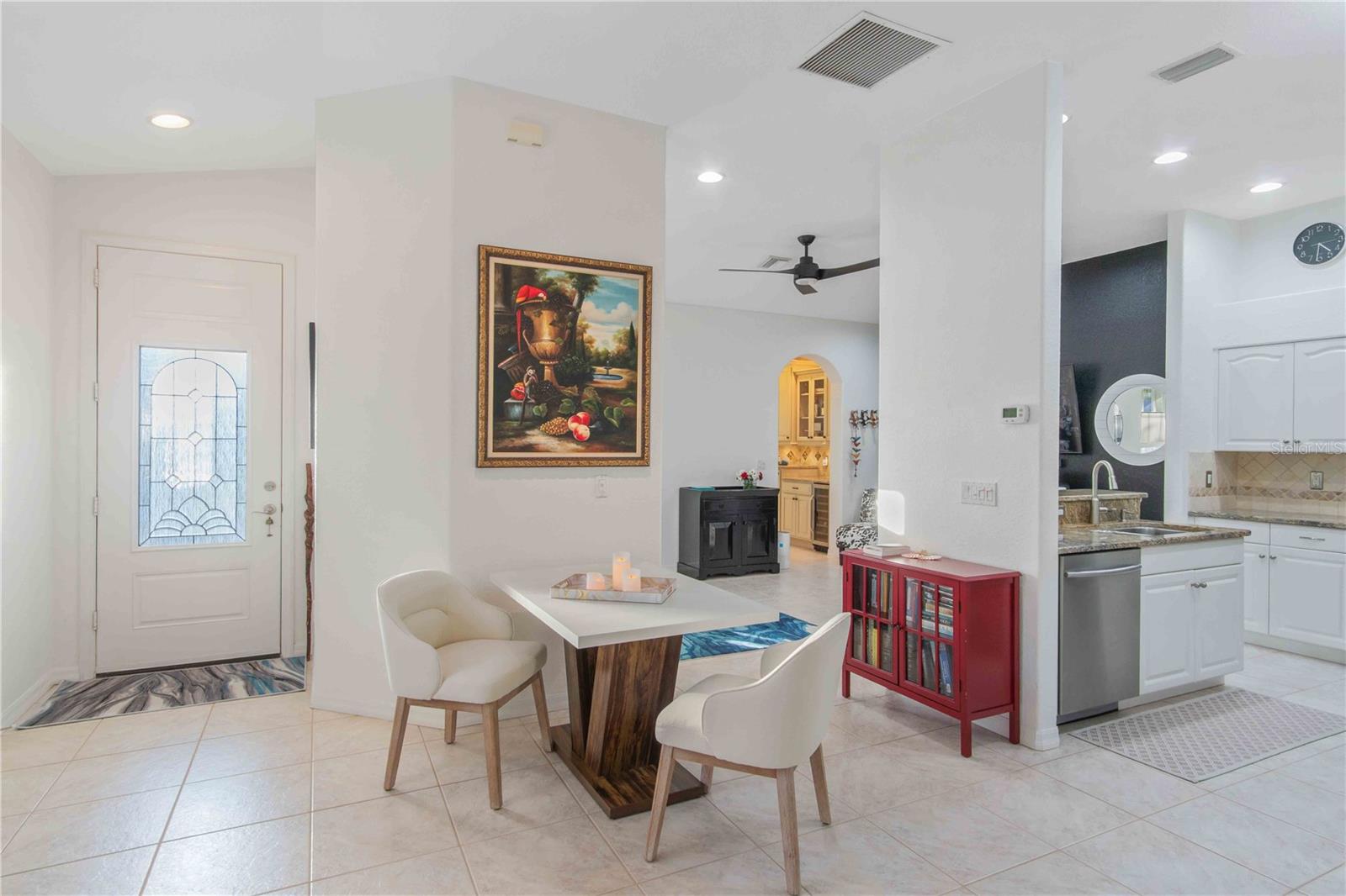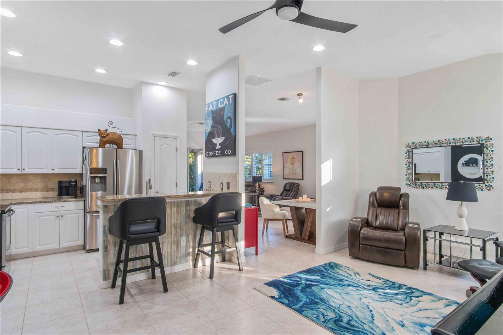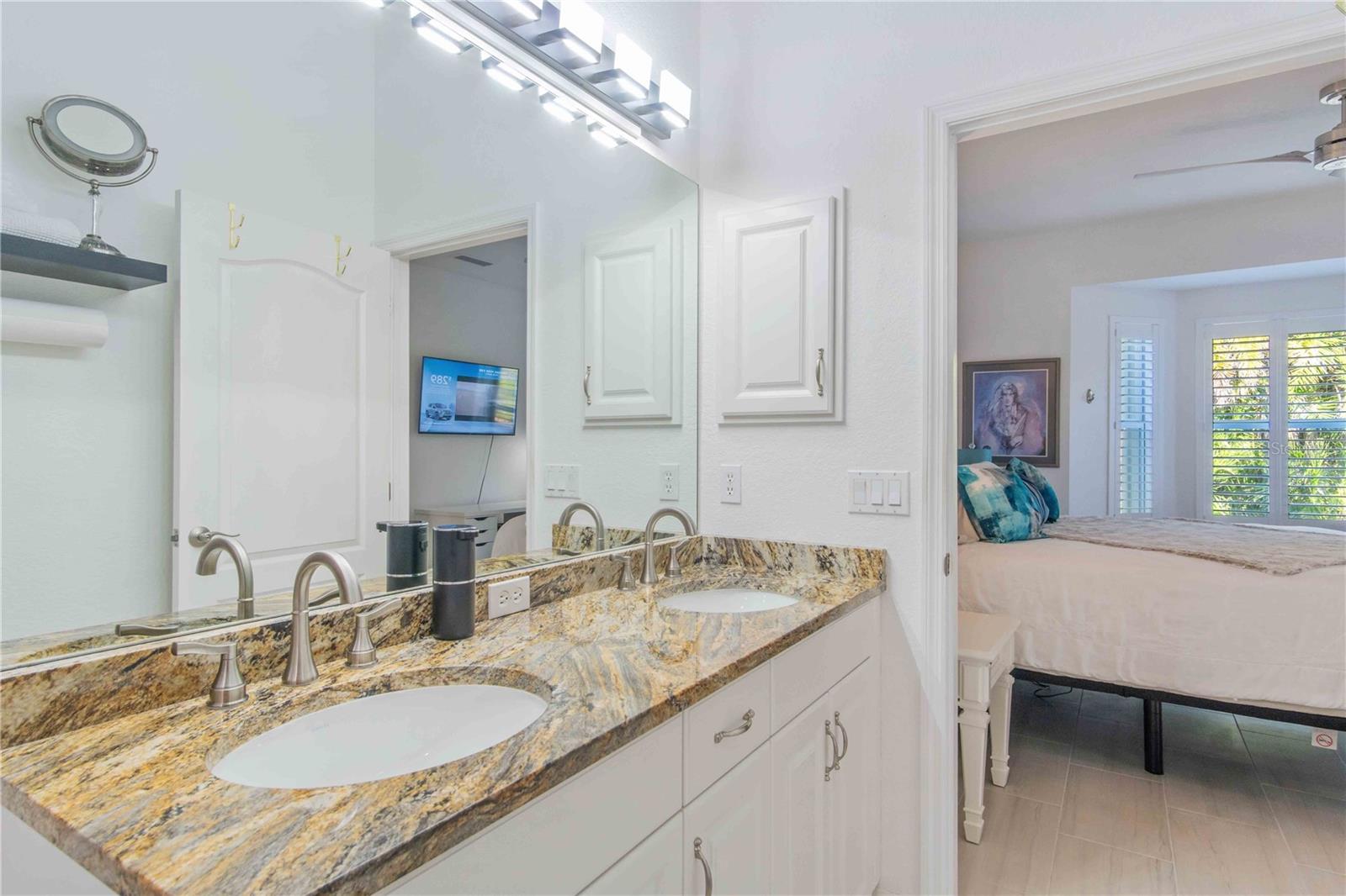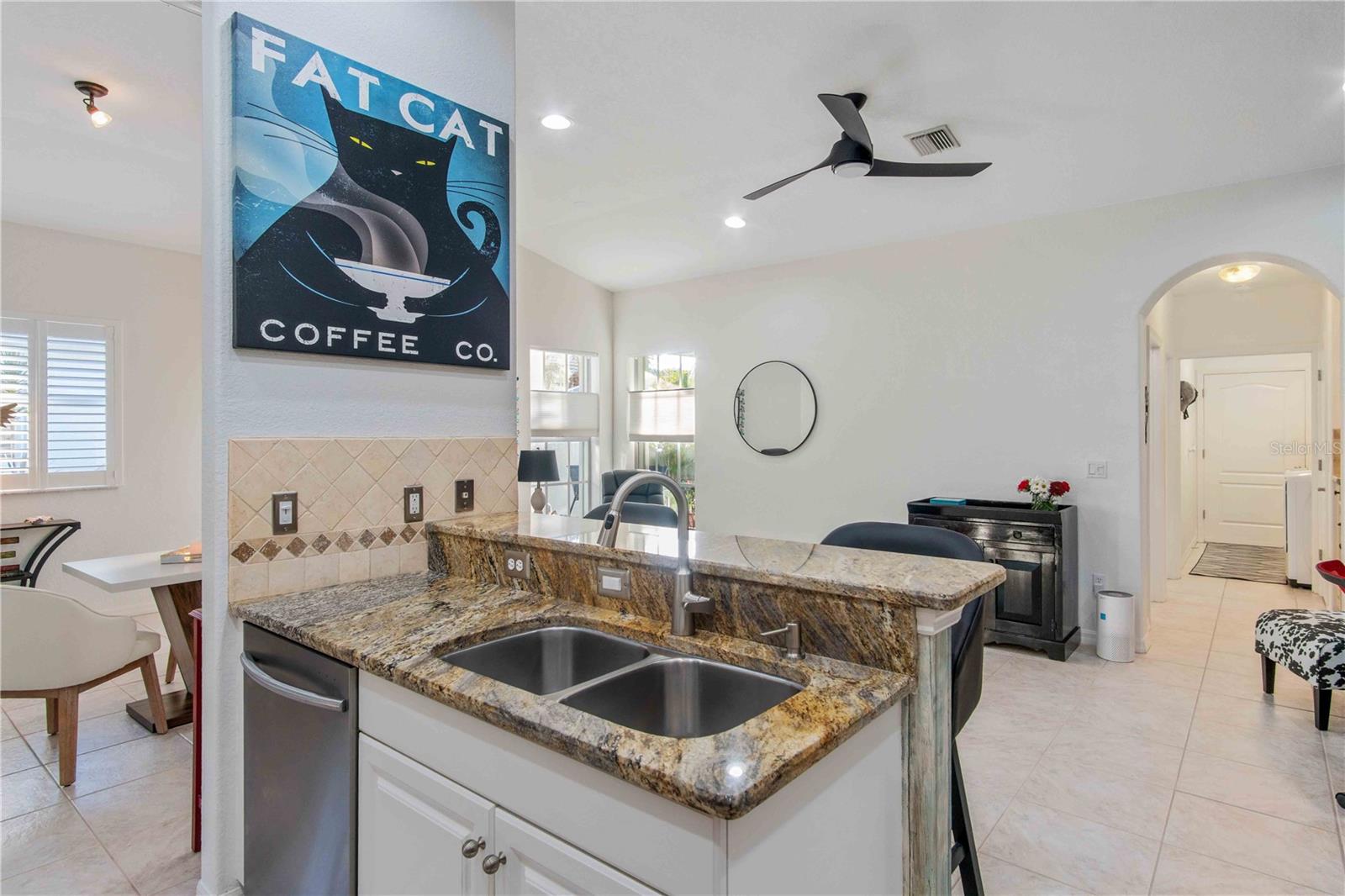 Welcome to your piece of paradise in the highly sought-after maintenance free community of Auburn Hammocks. This pristine community of only 47 properties includes a heated community pool directly across the street from your new villa, a clubhouse, a gated entry for security, lawn care, irrigation, and more despite it's shockingly affordable HOA fees. The property features plenty of privacy in the back yard and is fully move in ready for your convenience. Located only 4 miles from Venice beach, with top dining and entertainment destinations on the way, will have you feeling like every day is a vacation from the moment you move in. Once inside the property, you will be greeted by an open layout with tall ceilings and plenty of space to entertain friends and family, or to simply enjoy yourself. The kitchen features granite countertops, planter shelves, a pantry, and stainless-steel appliances. Nearby there is a custom coffee bar with custom cabinets, granite counters, and a wine fridge that is included with the sale. The layout of the home allows you to choose where you want your dining room to be situated and there are wood planation shutters throughout the home along with modern fans and fixtures. The master suite is well oversized, with room for a king bedroom set and more. Plus, the closet is among the largest of closets you will ever find in this price. The master bath has his & her vanities, granite counters, tiled shower, and additional overhead storage. On the opposite side of the home you will find the guest bedroom and bathroom near the interior laundry room giving you plenty of privacy from guests. The bathroom matches the master suite with the added bonus of a shower/tub combo, and the guest bedroom is also well sized with a larger than typical closet. Enjoy your morning cup of coffee or relax in the evenings from your screened in lanai as you plan out your future experiences that Venice has to offer. Unlike many other units, this Villa also has full hurricane protection with accordion shutters for the front door and all windows, along with traditional shutters for the lanai slider and a generator plug in the garage. Contact your agent today for a private showing before this opportunity is gone!