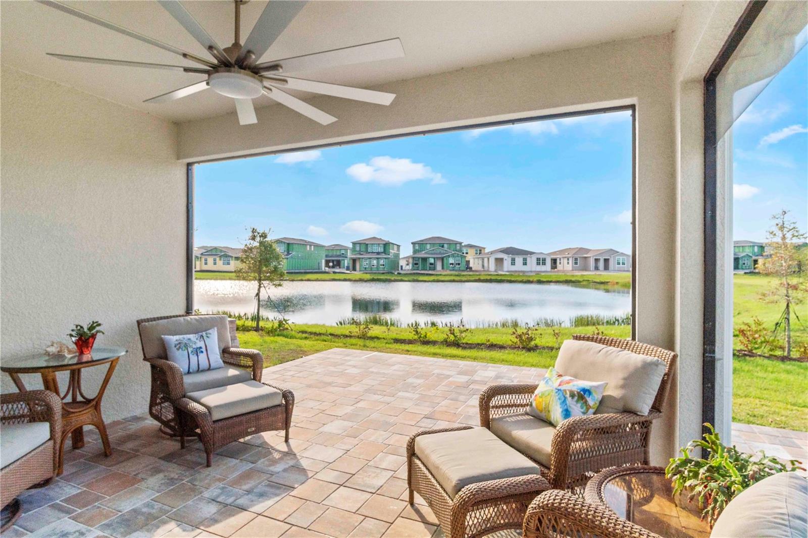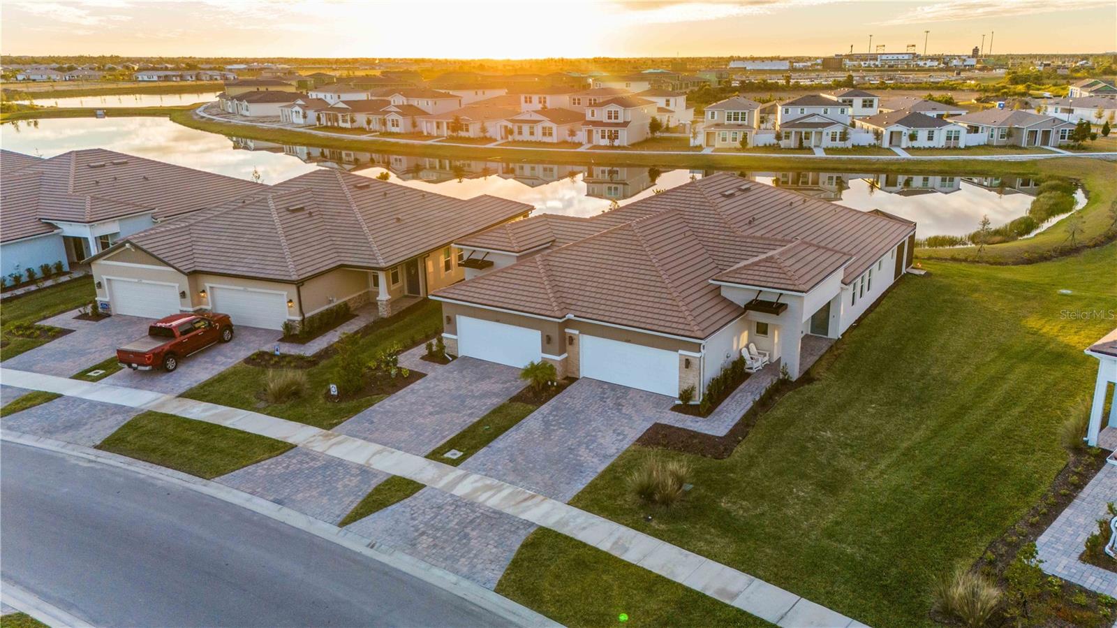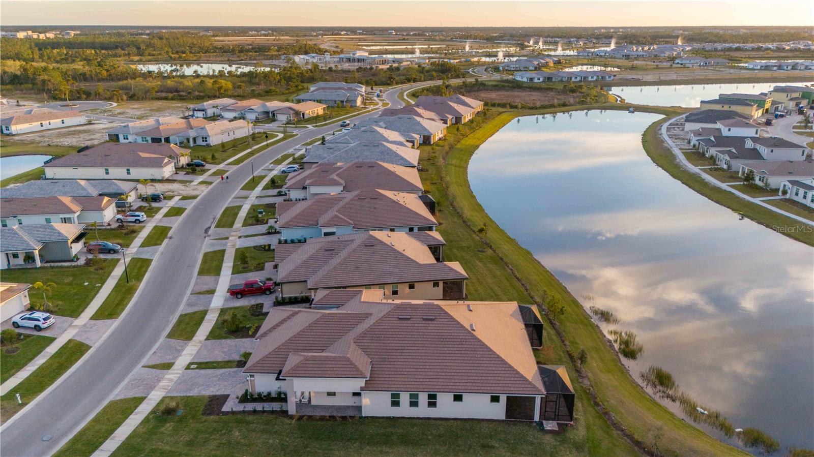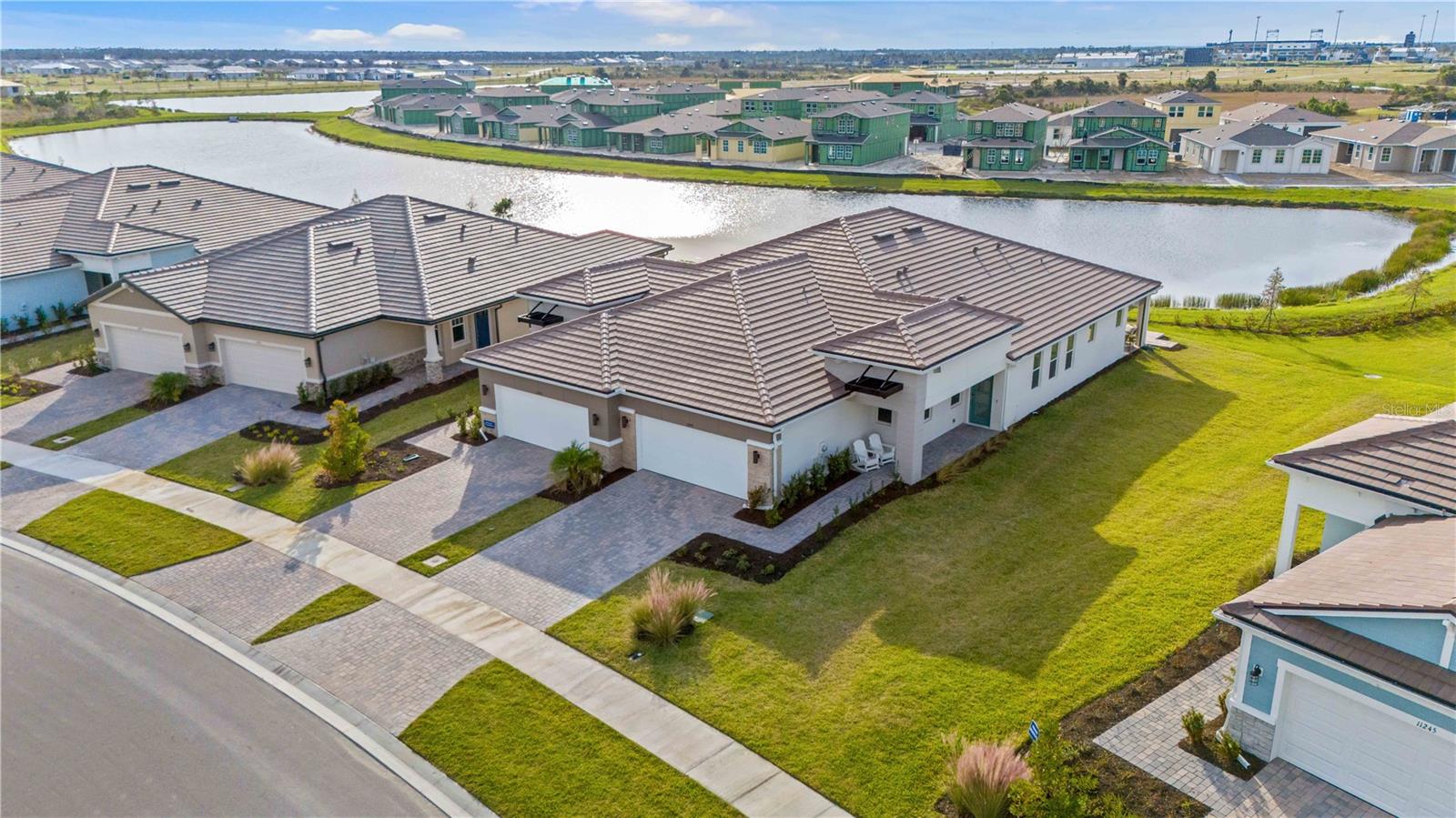 Welcome to your piece of paradise located in the highly sought after community of Brightmore in Wellen Park with countless top destinations nearby including Cool Today Park / Braves Stadium and endless dining options just around the corner. This new community within Wellen Park is a gated 55+ community that is golf cart friendly with many resort style amenities including TWO pools, a dog park, Hot Tub, 8 Pickle Ball Courts, a stadium court, and a Lifestyle Director on staff full time. Skip the wait of building and move right in to this better than new Villa! Upon arriving to your stunning new home you will notice great curb appeal, an attractive tile roof, paver driveway, brick accent walls, and plenty of room away from the next villa thanks to being on an oversized lot. Once inside you will be greeted by a gorgeous waterview and the spacious layout offered by the Champagne model. This home is listed as 2 bedroom but has a flex room that could be utilized as a 3rd bedroom. No expenses were spared on this build including 9ft 4in tall ceilings, 8 foot doors, Hurricane Impact Windows, tall cabinetry, quartz countertops, and a tray ceiling in the Master suite. The dining room and living room are well sized for entertaining guests and the guest wing of the home is completely separated from the master suite. The master suite overlooks the water view, has a walk in closet nearly the size of another bedroom, his & her sinks, and an impressive walk in shower. Other features/upgrades include an oversized walk in pantry, interior laundry room, insulted garage, bump out in garage for golf cart storage, smart home tech package with security camera and keyless lock, and a $12,000 extended lanai paver option. Plus the seller has already added attractive fixtures, fans, and window treatments not included with any builder in the community. Better than new options like this don't come along often, contact your agent today for a private showing!