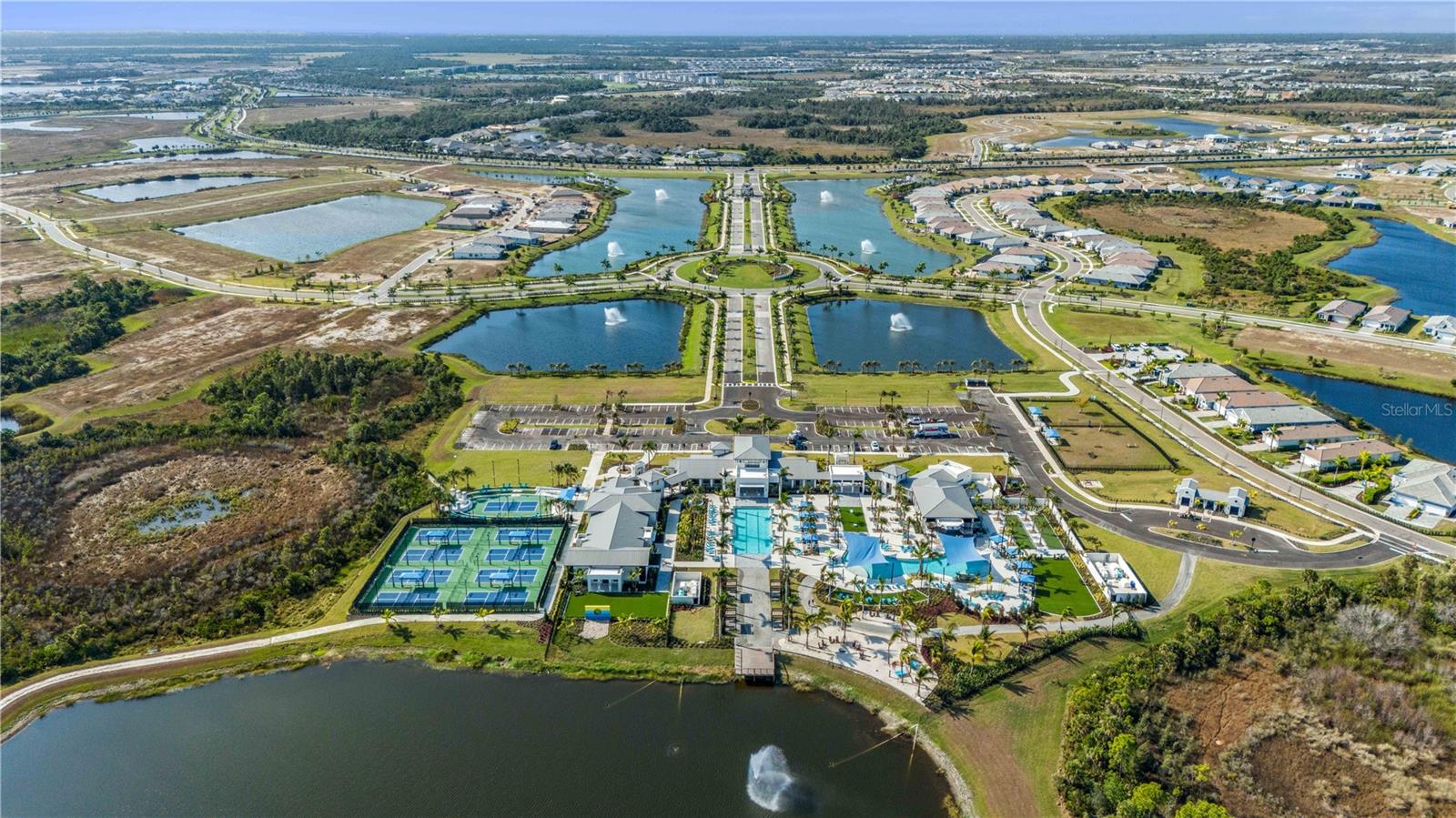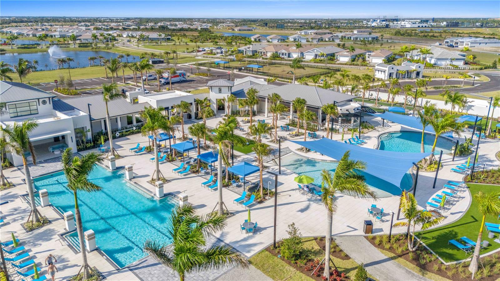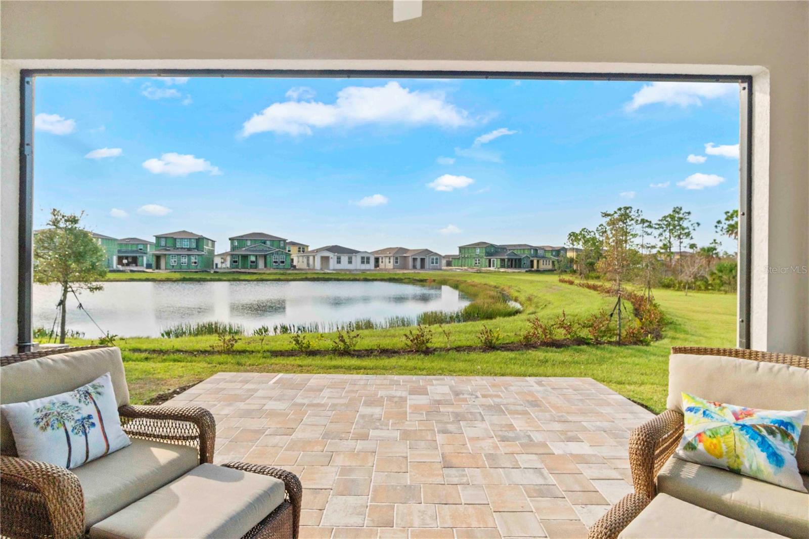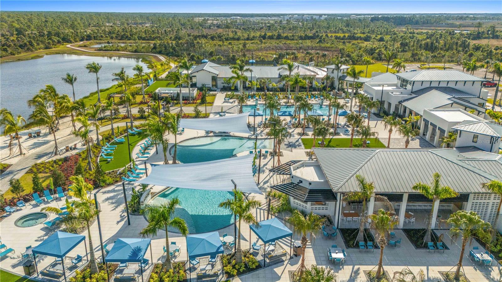 Welcome to your piece of paradise located in the highly sought after community of Brightmore in Wellen Park with countless top destinations nearby including Cool Today Park / Braves Stadium and endless dining options just around the corner. This new community within Wellen Park is a gated 55+ community that is golf cart friendly with many resort style amenities including TWO pools, a dog park, Hot Tub, 8 Pickle Ball Courts, a stadium court, and a Lifestyle Director on staff full time. Skip the wait of building and move right in to this better than new Villa! Upon arriving to your stunning new home you will notice great curb appeal, an attractive tile roof, paver driveway, brick accent walls, and plenty of room away from the next villa thanks to being on an oversized lot. Once inside you will be greeted by a gorgeous waterview and the spacious layout offered by the Champagne model. This home is listed as 2 bedroom but has a flex room that could be utilized as a 3rd bedroom. No expenses were spared on this build including 9ft 4in tall ceilings, 8 foot doors, Hurricane Impact Windows, tall cabinetry, quartz countertops, and a tray ceiling in the Master suite. The dining room and living room are well sized for entertaining guests and the guest wing of the home is completely separated from the master suite. The master suite overlooks the water view, has a walk in closet nearly the size of another bedroom, his & her sinks, and an impressive walk in shower. Other features/upgrades include an oversized walk in pantry, interior laundry room, insulted garage, bump out in garage for golf cart storage, smart home tech package with security camera and keyless lock, and a $12,000 extended lanai paver option. Plus the seller has already added attractive fixtures, fans, and window treatments not included with any builder in the community. Better than new options like this don't come along often, contact your agent today for a private showing!