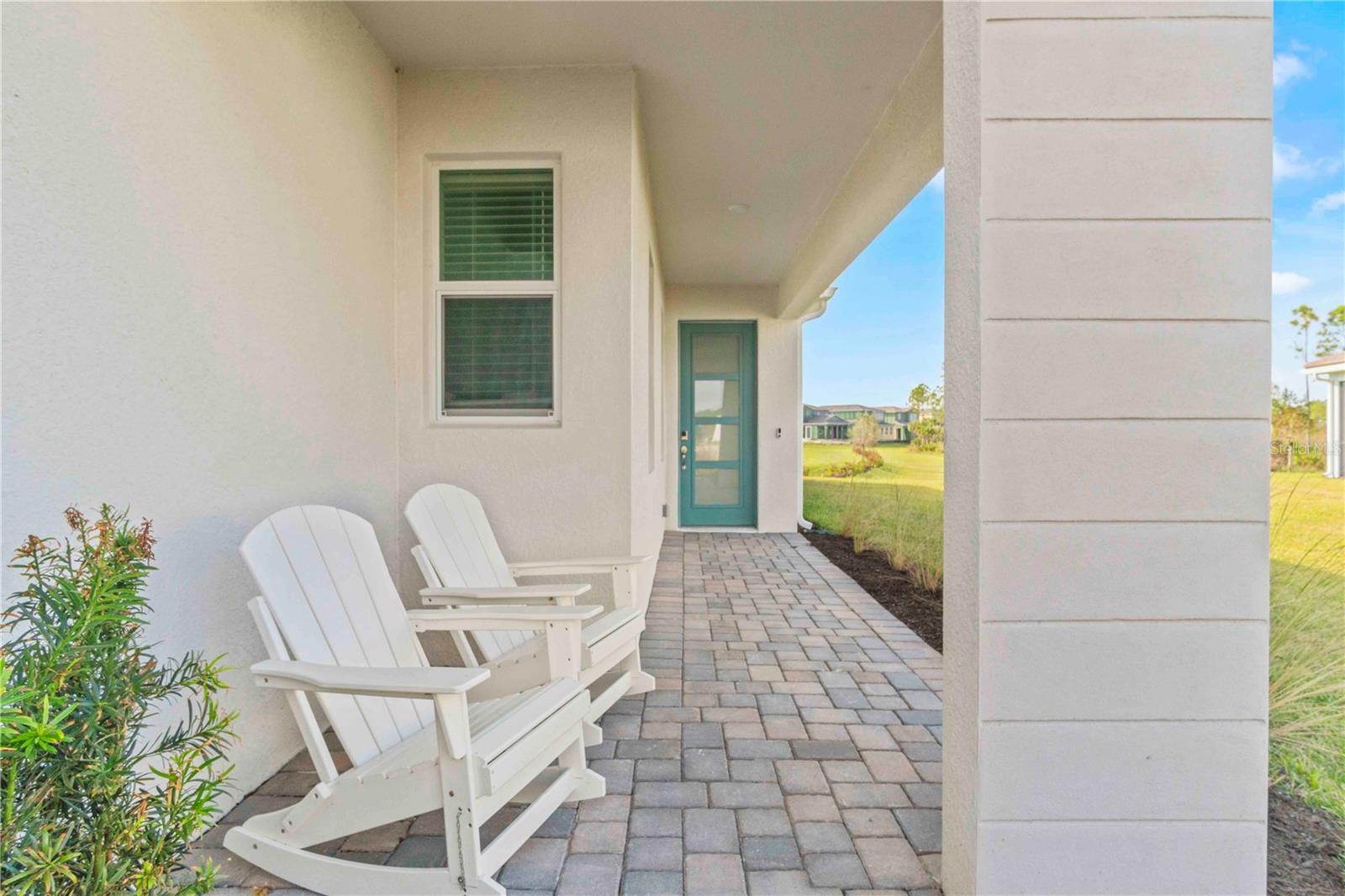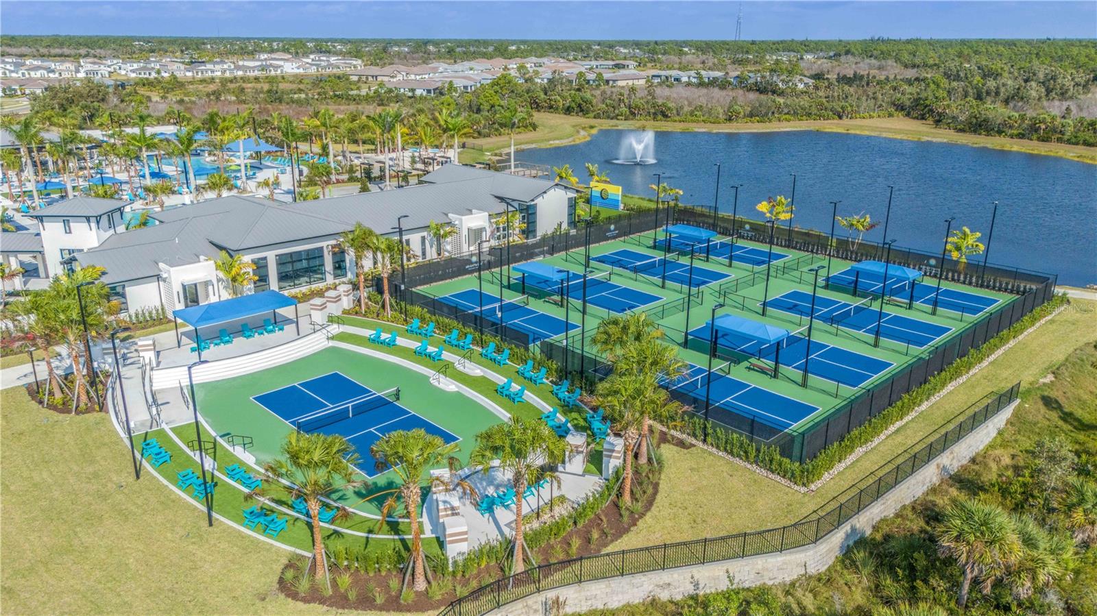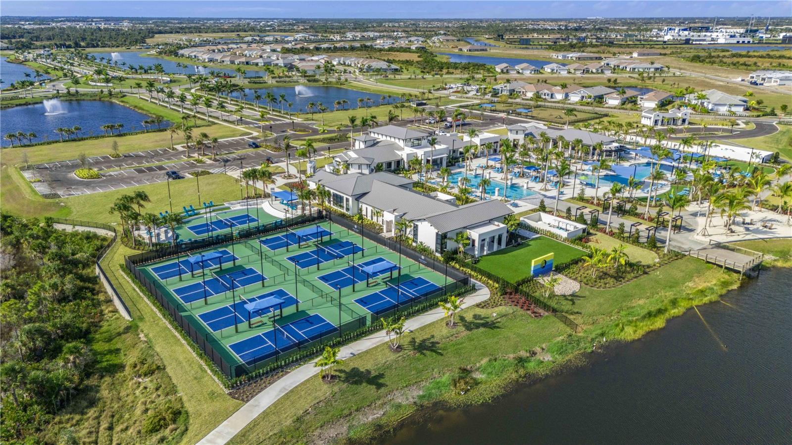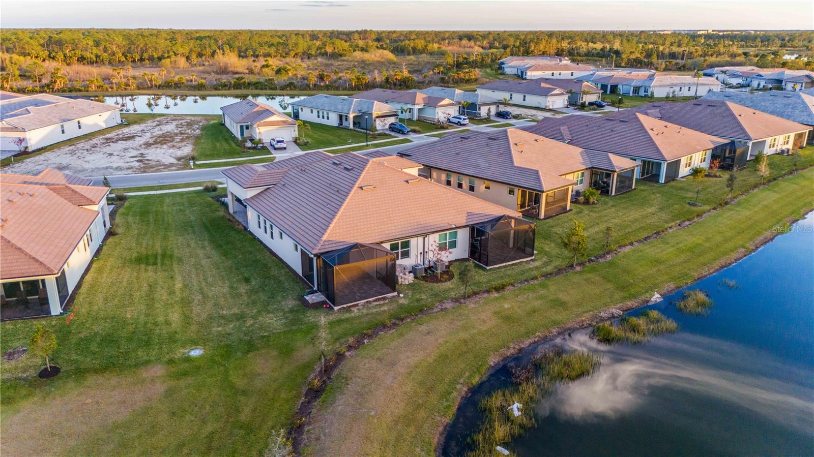 Welcome to your piece of paradise located in the highly sought after community of Brightmore in Wellen Park with countless top destinations nearby including Cool Today Park / Braves Stadium and endless dining options just around the corner. This new community within Wellen Park is a gated 55+ community that is golf cart friendly with many resort style amenities including TWO pools, a dog park, Hot Tub, 8 Pickle Ball Courts, a stadium court, and a Lifestyle Director on staff full time. Skip the wait of building and move right in to this better than new Villa! Upon arriving to your stunning new home you will notice great curb appeal, an attractive tile roof, paver driveway, brick accent walls, and plenty of room away from the next villa thanks to being on an oversized lot. Once inside you will be greeted by a gorgeous waterview and the spacious layout offered by the Champagne model. This home is listed as 2 bedroom but has a flex room that could be utilized as a 3rd bedroom. No expenses were spared on this build including 9ft 4in tall ceilings, 8 foot doors, Hurricane Impact Windows, tall cabinetry, quartz countertops, and a tray ceiling in the Master suite. The dining room and living room are well sized for entertaining guests and the guest wing of the home is completely separated from the master suite. The master suite overlooks the water view, has a walk in closet nearly the size of another bedroom, his & her sinks, and an impressive walk in shower. Other features/upgrades include an oversized walk in pantry, interior laundry room, insulted garage, bump out in garage for golf cart storage, smart home tech package with security camera and keyless lock, and a $12,000 extended lanai paver option. Plus the seller has already added attractive fixtures, fans, and window treatments not included with any builder in the community. Better than new options like this don't come along often, contact your agent today for a private showing!