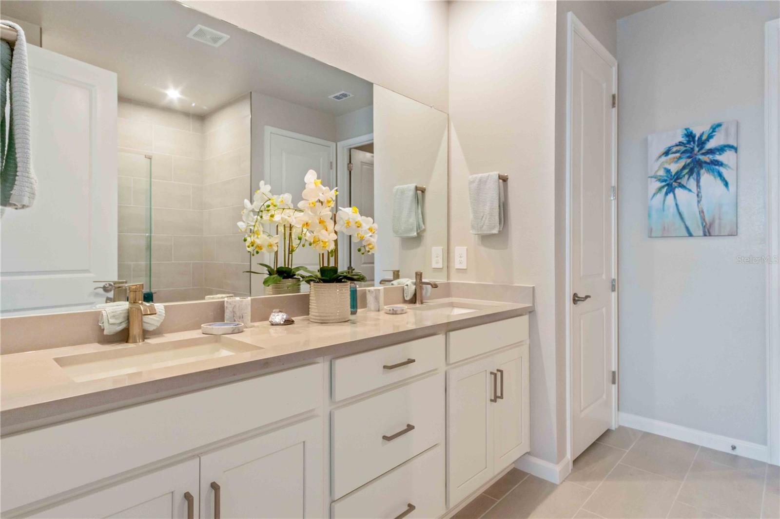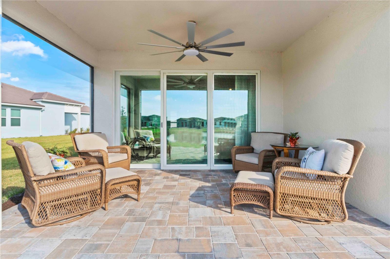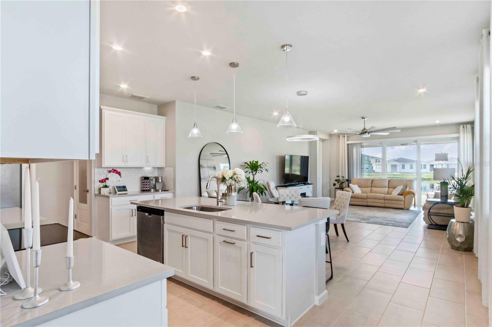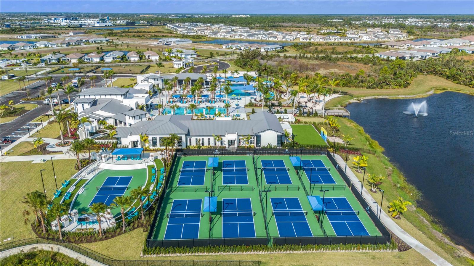 Welcome to your piece of paradise located in the highly sought after community of Brightmore in Wellen Park with countless top destinations nearby including Cool Today Park / Braves Stadium and endless dining options just around the corner. This new community within Wellen Park is a gated 55+ community that is golf cart friendly with many resort style amenities including TWO pools, a dog park, Hot Tub, 8 Pickle Ball Courts, a stadium court, and a Lifestyle Director on staff full time. Skip the wait of building and move right in to this better than new Villa! Upon arriving to your stunning new home you will notice great curb appeal, an attractive tile roof, paver driveway, brick accent walls, and plenty of room away from the next villa thanks to being on an oversized lot. Once inside you will be greeted by a gorgeous waterview and the spacious layout offered by the Champagne model. This home is listed as 2 bedroom but has a flex room that could be utilized as a 3rd bedroom. No expenses were spared on this build including 9ft 4in tall ceilings, 8 foot doors, Hurricane Impact Windows, tall cabinetry, quartz countertops, and a tray ceiling in the Master suite. The dining room and living room are well sized for entertaining guests and the guest wing of the home is completely separated from the master suite. The master suite overlooks the water view, has a walk in closet nearly the size of another bedroom, his & her sinks, and an impressive walk in shower. Other features/upgrades include an oversized walk in pantry, interior laundry room, insulted garage, bump out in garage for golf cart storage, smart home tech package with security camera and keyless lock, and a $12,000 extended lanai paver option. Plus the seller has already added attractive fixtures, fans, and window treatments not included with any builder in the community. Better than new options like this don't come along often, contact your agent today for a private showing!