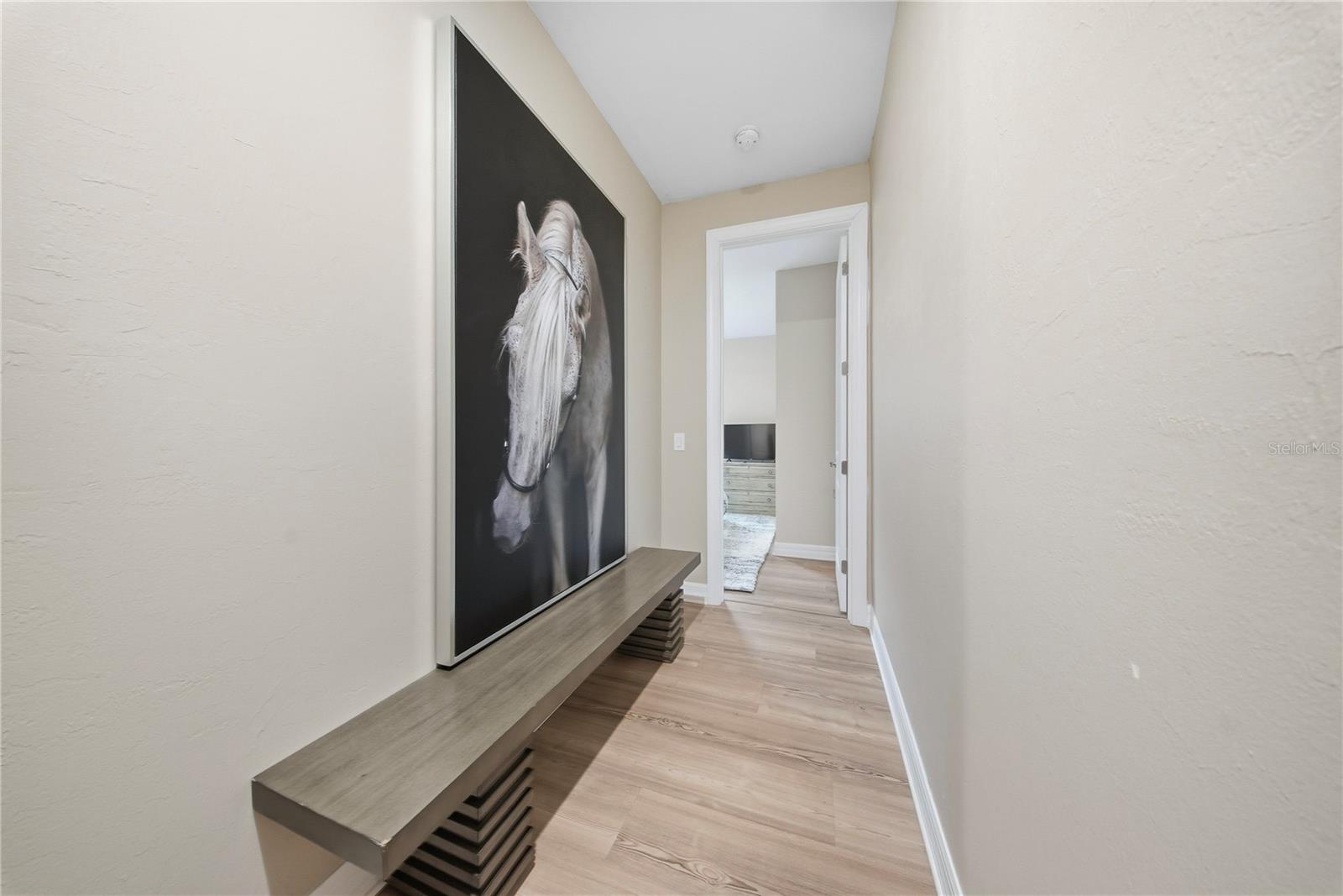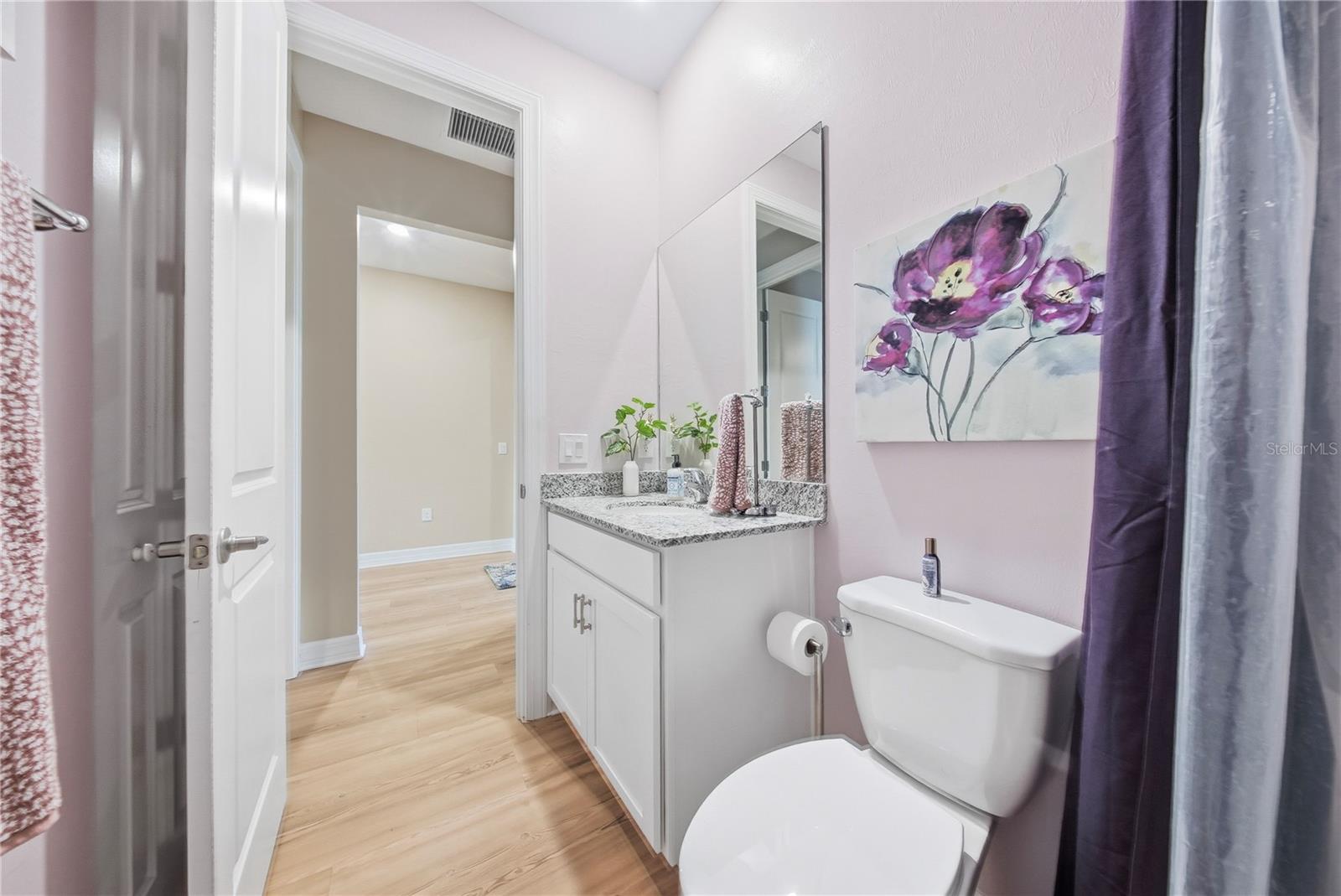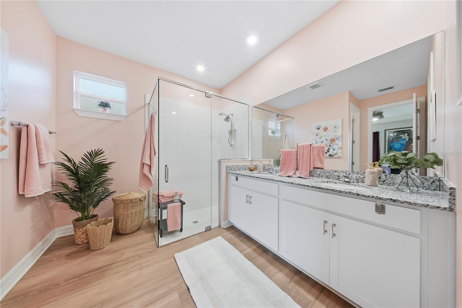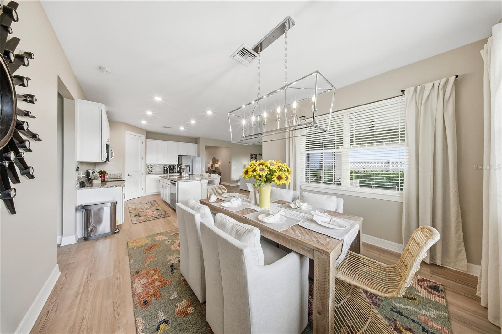 This 4 bedroom, 3 bath home is on a quiet street - close to the Cypress swimming pool and Cypress Lodge. In addition to the great location, this sought after Cardinal model exudes class. As you enter, you will notice the front door high impact art glass plus all new light-wood flooring throughout, installed within this past year. The kitchen features an island, an array of 42" cabinetry, a sizable pantry, granite countertops, art glass backsplash and a refrigerator for the future, with one whole compartment that can be a wine cooler, a freezer. or more refrigeration. Off the kitchen you'll find a separate area delegated to dining. Take in the beautiful chandelier highlighting the ambiance. Next, the living room is spacious and adding to the open concept, it's so inviting for guests to congregate here anytime. A remote controlled rolldown shutter is a safe addition that adds a protective shield in a storm, and when "down", one can still see to the outdoors. The Primary Bedroom is a space where one can lounge and truly relax away from it all. With tray ceiling, and an ensuite bath, it's the cat's meow, touting dual sinks, shower, plus a Master closet with shoe shelving, closet upgrades and space galore. There are three more bedrooms, all tastefully decorated, and of course, any one would make a fine office or flex room. A beautiful screened, paved lanai expands the living space and opens to a pristine yard, beautifully maintained and fully fenced affording total privacy. A laundry room is centrally located for practicality and boasts upgraded washer and dryer. The 3-car garage is a wonder; it's fully finished, including air conditioning, heating, two large hanging storage racks, large industrial lighting, finished garage floor, painted just six months ago, and a 2nd refrigerator. What more could you ask for? This is Babcock Ranch, noted for safety during inclement weather, plus activities no matter what you prefer. There are miles of biking and hiking trails, wellness activities and gym, numerous entertainment options that include free weekly band concerts, markets, shopping and amenities for all ages. Babcock Ranch is America's first solar powered city and has earned accolades for ecologic practices and preserves.