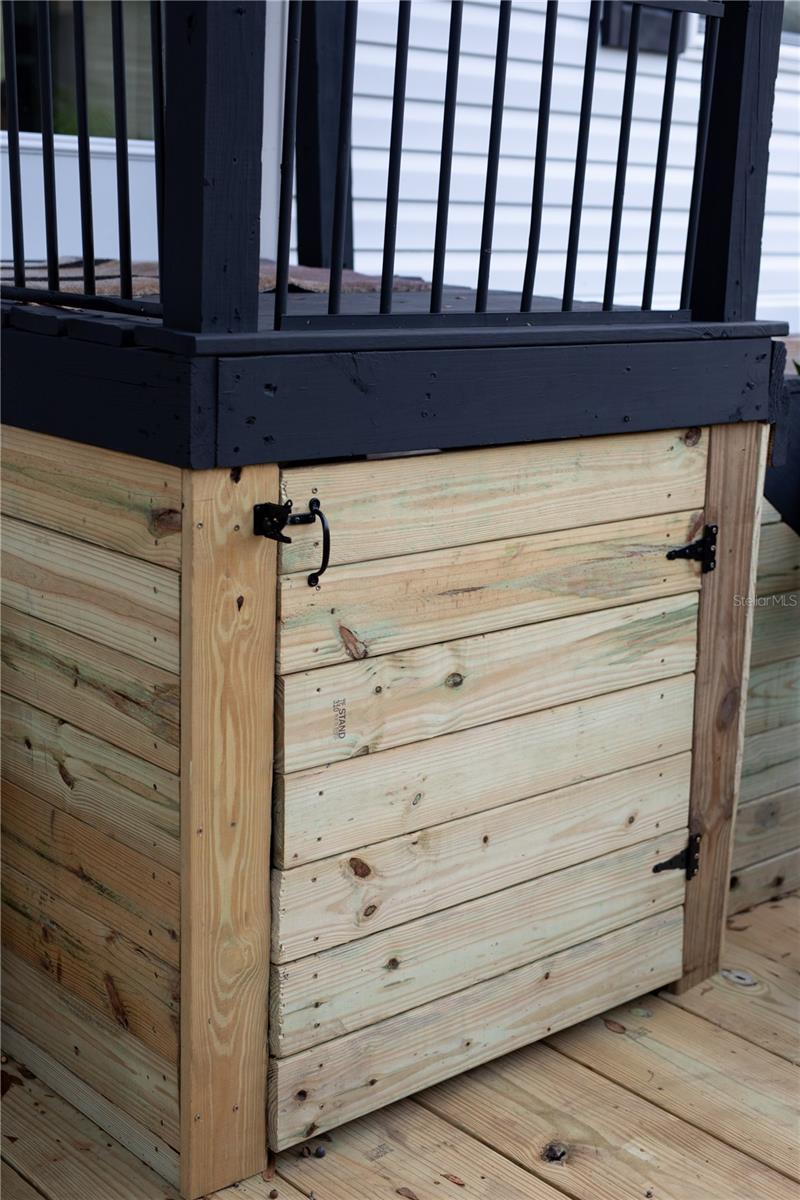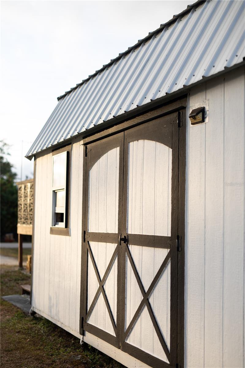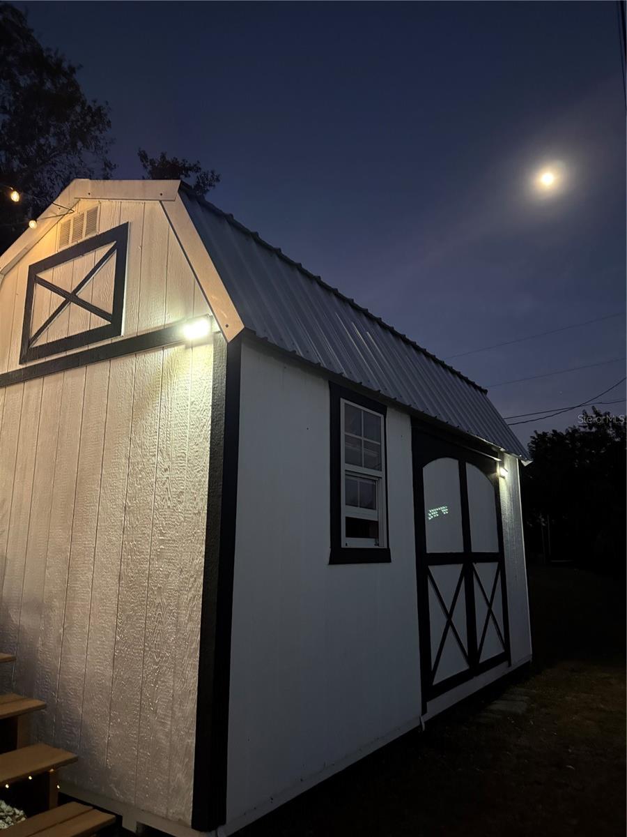 Exterior: Fire Pit, Garden, Lighting, Outdoor Kitchen, Private Mailbox, Sliding Doors, Storage