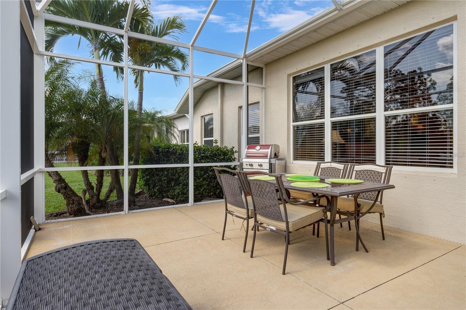 **3D INTERACTIVE VIRTUAL TOUR** This beautifully maintained home has been lovingly cared for and is ready for its new owners. Offered FULLY FURNISHED AND TURN-KEY (or unfurnished if buyer wishes), creating a warm and inviting atmosphere. Simply bring your personal belongings and move right in! This 2 bedroom, 2 bathroom + DEN home is nestled in a private setting with peaceful WATER VIEWS. NEW 2023 ROOF AND NEWER A/C. Kick back, relax and enjoy the warm Florida sunshine right from your own backyard! Pull into the driveway and be met with lush tropical landscaping including green grass, palm trees, pebble rock, curbing and the scent of Hibiscus flowers in bloom as you make your way to the place you'll call "home." Open the front door and be impressed with high ceilings, neutral colors, crown molding, high doorways and arched entryways - ceramic tile floors flow seamlessly throughout your main living areas making cleaning a breeze and pet friendly! Step into the REMODELED KITCHEN, where extended 42" cabinetry with beautiful crown molding (with pull outs in ALL the cabinets), granite countertops, Lighted China Cabinet, ornate backsplash, and a large 48" x 48" island with extra storage, deep drawers and electric outlets create the perfect space for cooking and entertaining. What more could you ask for? How about under cabinet lighting, an abundance of counter space, custom built-in pantry with pull out drawers, soft-close feature, and a king style sink! This home features one of the most sought-after floor plans with a spacious Great Room that offers an open, airy feel, aligned by triple windows where unparalleled views of the water greet you - this is a great spot for entertaining family and friends! The quaint dinette is the picture perfect spot to sit & drink your morning coffee while getting ready to start your day or grab the family & enjoy a home cooked meal in your formal dining room. Retreat to your master suite that is large in size complete with an en-suite bath that features double sinks, dual walk-in-closets, tiled shower and private water closet. Across the home you will find bedroom #2 and a well appointed guest bathroom. The bedroom is equipped with a ceiling fan, window & private closet. French doors lead you into a large sized den, a space that would make an excellent office, craft room or 3rd bedroom - use your imagination - the possibilities are endless! The expansive screened in EXTENDED LANAI (with covered area) is perfect to entertain & BBQ, not to mention the FANTASTIC view overlooking the pond & wooded preserve, which brings a refreshing breeze & piece of serenity - so grab a good book & unwind in your own private summertime oasis. Situated outside of a flood zone, this community offers low HOA fees of just $290 per quarter, which includes lawn care. Located in the beautiful Lakeside Plantation community, you'll be less than 30 miles from award-winning Gulf of Mexico beaches and just a few miles from I-75, local shopping, golf courses, and entertainment. Downtown Wellen Park and the new Atlanta Braves Stadium are only 20 minutes away. This community offers a wealth of amenities, including an Olympic-sized swimming pool and hot tub, tennis courts, basketball & pickleball courts, a fitness center, playground, library, and a large clubhouse with Wi-Fi. Monthly social activities are planned for all ages, fostering a vibrant and engaging community atmosphere. Be prepared to fall in love! Schedule a showing today!