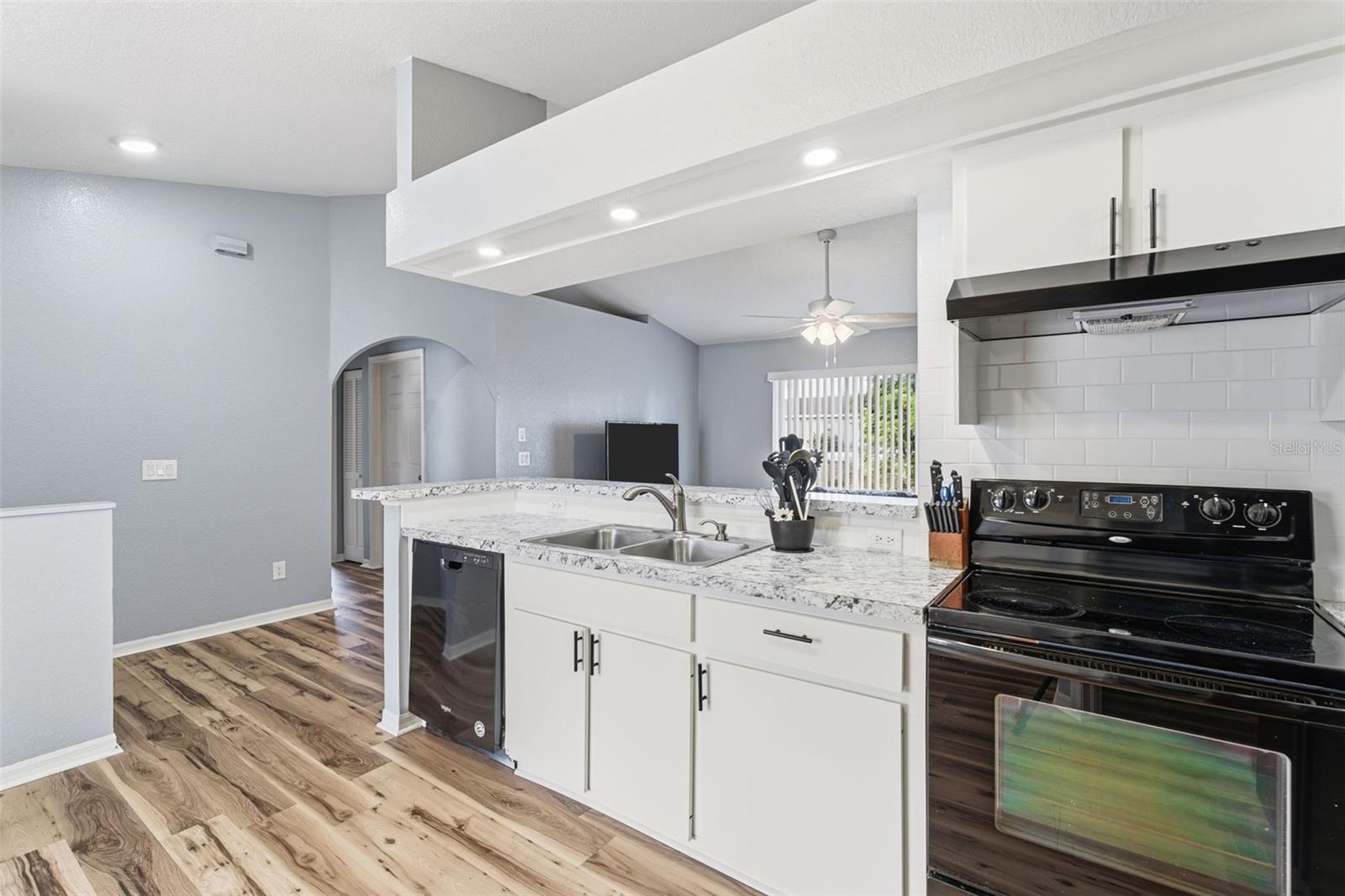 Welcome to this well-appointed 3-bedroom, 2-bathroom Port Charlotte home offering an open floor plan ideal for both everyday living and entertaining. Vaulted ceilings and ceiling fans throughout enhance the light and airy feel, while the kitchen features an eat-in space, subway tile backsplash, pantry, and seamless flow into the main living areas. The guest bedrooms share a convenient Jack-and-Jill bathroom with a walk-in closet, and the primary suite offers its own walk-in closet. Both bathrooms are finished with tiled showers and glass doors. Additional highlights include an indoor laundry room and a 2-car garage. Ideally located near beautiful Gulf beaches, boating and fishing opportunities, pickleball courts, golf courses, dining, entertainment, and excellent medical facilities--this home offers the best of the Southwest Florida lifestyle.