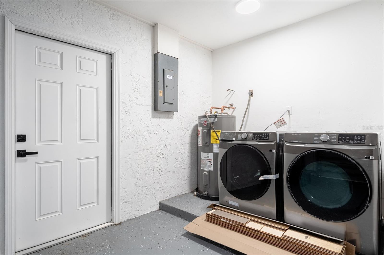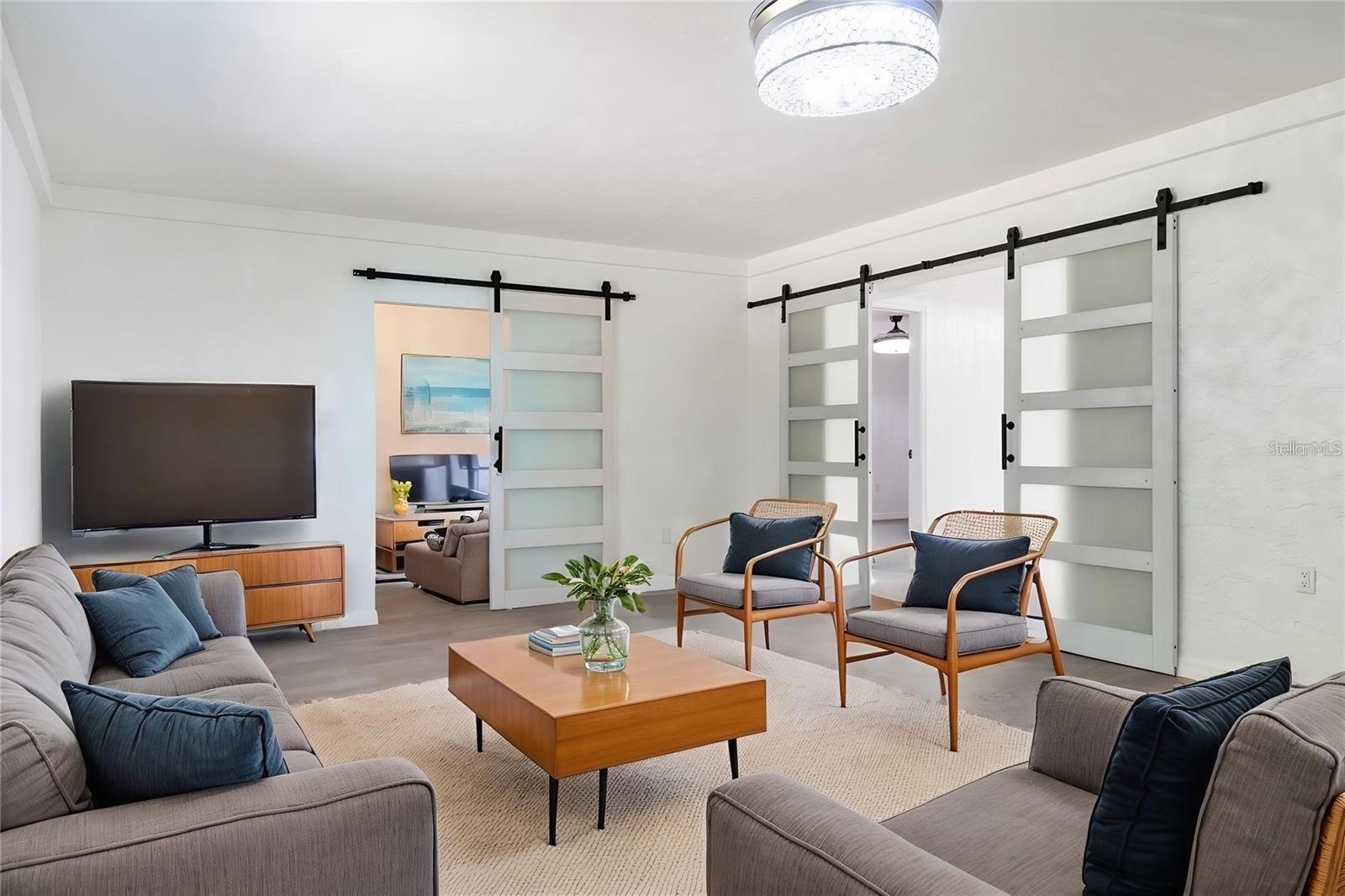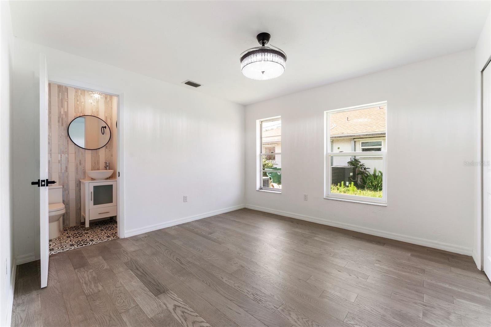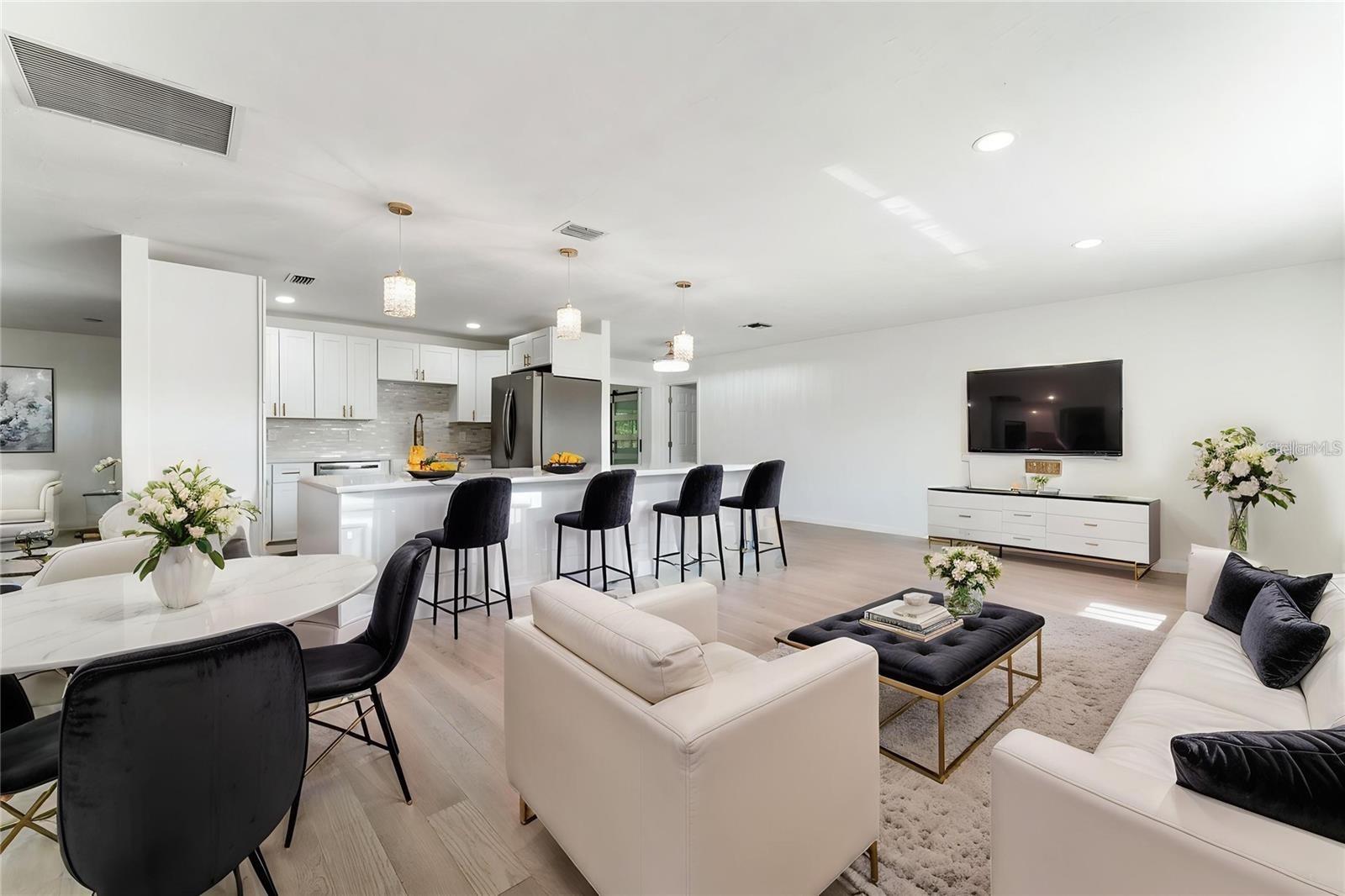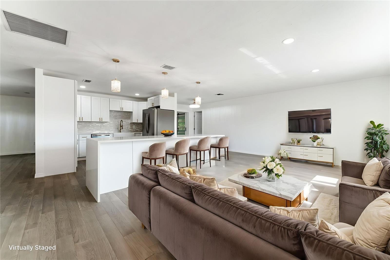 One or more photo(s) has been virtually staged. This exceptional 3-bedroom, 2.5-bathroom home, plus a bonus room, is located in one of Port Charlotte's most desirable areas. Completely renovated from top to bottom, this home features brand-new finishes throughout, including engineered hardwood floors, modern light fixtures, and state-of-the-art ceiling fans. The chef's kitchen is a dream, with a large 10-foot island, quartz countertops with a waterfall, stainless steel appliances, and plenty of cabinet space for storage. All bathrooms have been updated with quartz and granite vanities, new tiling, and luxurious finishes. The home is equipped with a new roof, newer septic system (installed in 2021), a newer water heater (2020), central AC (2014), and a new wall AC unit, ensuring peace of mind for years to come. The spacious layout includes three bedrooms, three bathrooms (two full and one half), and a versatile bonus room that can serve as an office, nursery, or any space you need. Outside, the property offers a private patio pad with a new fire pit and stunning canal views, making it the perfect spot for relaxation. Beautiful landscaping with ambient lighting adds to the charm, allowing you to enjoy the backyard day or night. New fiberglass exterior doors, updated windows (some), and interior doors, including modern barn doors, contribute to the home's sleek, contemporary aesthetic. Both the interior and exterior have been freshly painted, providing a bright and welcoming atmosphere throughout. The newly painted two-car garage is equipped with a new garage door opener for added convenience. Additional upgrades include all-new appliances, including a washer and dryer, new light fixtures, and so much more. Located in an extremely desirable area, this home is not in a flood zone and offers easy access shopping, restaurants, and I-75. Whether you're looking to relax by the water, shop, or explore all that Port Charlotte and the surrounding areas has for you and your family, this home is ideally situated for your lifestyle. Don't miss the opportunity to own this beautifully remodeled home with water views - schedule your private showing today! Some pictures are digitally staged for your viewing.