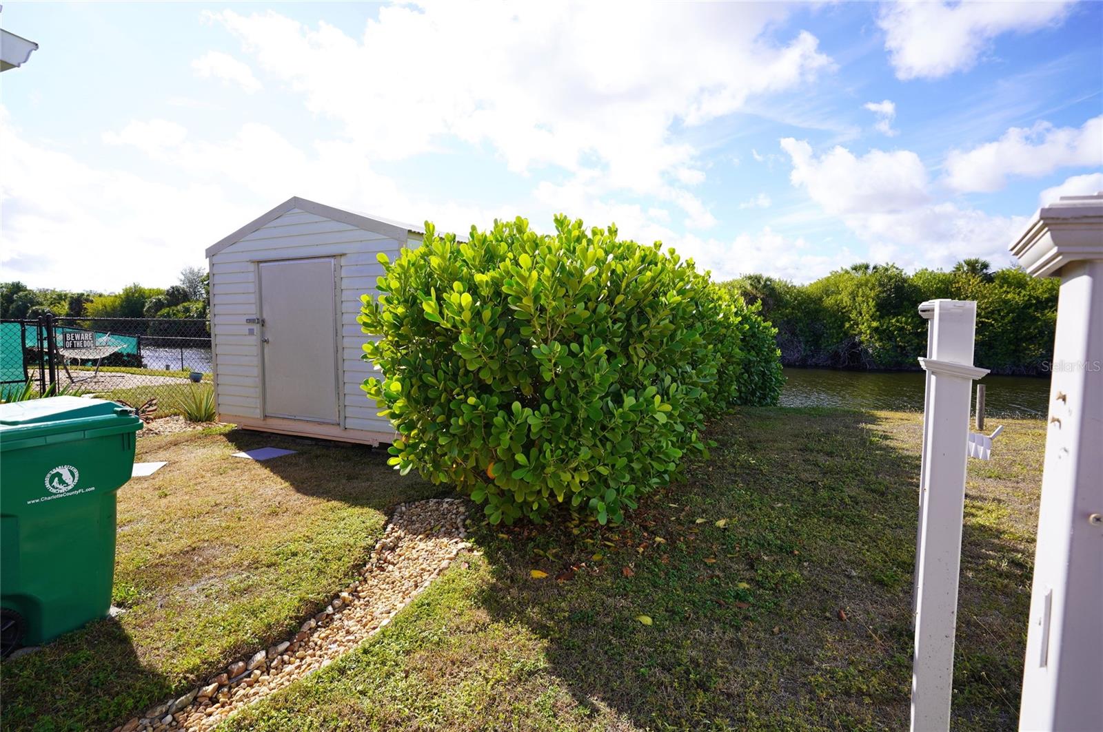 2/2-1 / Carport. Pristine property. Waterfront with NO Flood Zone (X-500).Located near Port Charlotte Hospitals or quick access to Englewood Beach (25 minutes).Fresh water canal feeding into the Peace River to the Harbor.Canal is 117 feet (39 yards) wide with ownership of 75 feet connecting to the fresh water canal. However your water visibility is over 250 feet either way.House has been all updated: New hurricane windows and sliding doors to a metal roof, gutters (Jan 2023), newer paint inside and outside. A New double wide concrete driveway. Newer appliances, washer, dryer, water heater, AC, duct work comes through the floor, and so much more. This house is so clean you could eat off the floors. Shed measurements: 10 x 12 with hurricane tie downs. Half of your yard is fenced in the back yard if you have pets, (48 feet x 54 feet). Many Fruit trees in the yard. Kumquat out front, mango in the back with a Cherry tree and a Lofty Fig tree.Property has multiple security cameras (7) surrounding the property and can be used by your phone to an inside house monitor. Fish off your 4 x 8 dock. The owner has caught large mouth bass from 6 to 9 lbs on the property. Personal circular putting green for chipping or practicing putting. No HOA fees. Conveniently located close to local amenities, beaches, and Tiki Bars and Live entertainment. The best game fishing in the world with off speed boat racing to spring training baseball teams as The Atlanta Braves and Tampa Rays. Just want to go to the beach or go fishing for the day. Great to do it all with whatever you can dream or do as a hobby. Local International Airports: Fort Myers, Sarasota and local Punta Gorda with Allegiant airlines direct. Many outdoor concert venues weekly. Local parks, state parks, tennis or pickle ball, to amazing golf courses. You deserve to view this property and make it your home or investment.