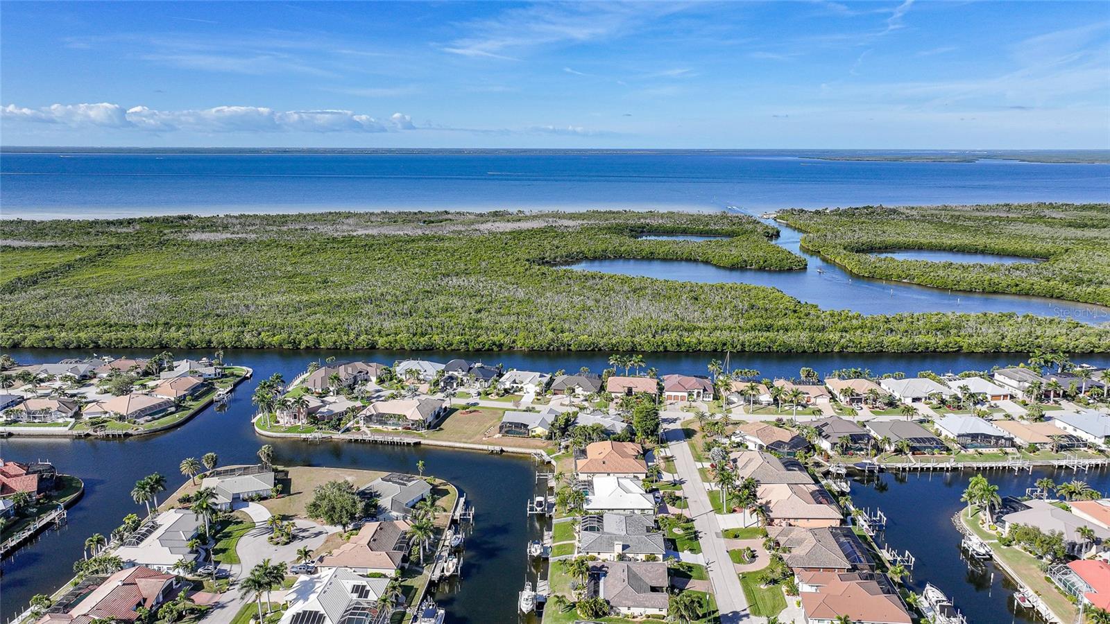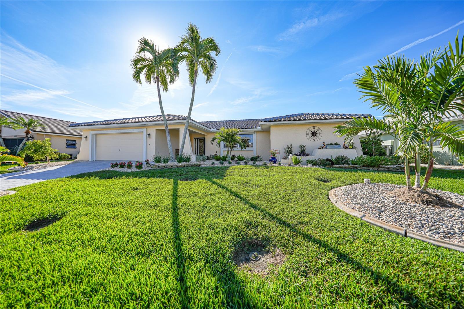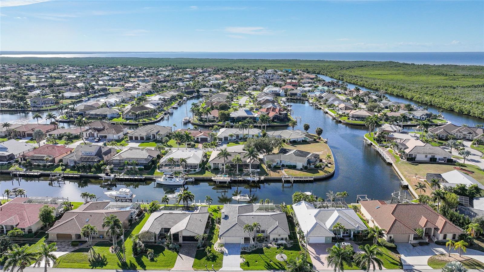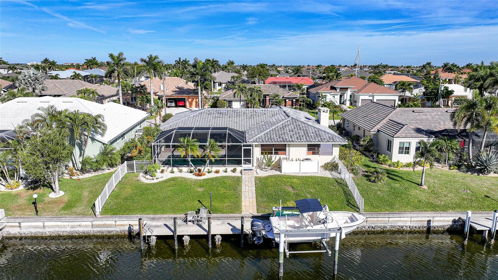 Punta Gorda Isles sailboat water at its best with quick access to open water. From the moment you arrive, this almost 2300 sqft furnished home welcomes you with a sense of warmth, elegance, and quiet sophistication. Tucked away on a peaceful street, this freshly painted three-bedroom, two-bath sailboat waterfront residence with pool and southern exposure has been lovingly maintained and thoughtfully reimagined to celebrate both comfort and coastal waterfront living living.A beautifully composed floor plan draws your eye outward, with tranquil pool and intersecting canal views with 45 foot dock and 10k lift showcased from nearly every room. The family room serves as an inviting centerpiece, anchored by a stunning cut-stone gas fireplace and mirrored wet bar--an ideal setting for intimate gatherings or relaxed evenings at home. It flows effortlessly into the remodeled kitchen, stainless steel appliances, rich wood cabinetry, gleaming granite countertops, and tumbled stone backsplashes create a space as functional as it is refined.Throughout the home, bamboo wood flooring and artfully placed recessed lighting enhance the natural textures and timeless finishes. Coordinating granite and cabinetry extend through the guest bath, laundry room, and wet bar, while the primary bath offers a private spa-like retreat, complete with antique-glazed cabinetry, granite countertops, and a jetted soaking tub--perfect for unwinding as the day fades into evening.Walls of pocketing sliding glass doors dissolve the boundary between indoors and out, opening the primary bedroom and living areas to a generous covered lanai and pool terrace. Here, expansive canal views provide a breathtaking backdrop for sunrise coffees, sunset gatherings, and endless moments of waterfront serenity.Thoughtful enhancements include crown molding, a brick-paver pool deck, a pass-through kitchen window with hand-painted outdoor cabinetry and refrigerator, hurricane shutters, a propane-powered whole house generator was added in 2021, ensuring both beauty and peace of mind. New roof and a/c in 2025. Tastefully remodeled yet offering the opportunity to add your own signature touches, this exceptional waterfront home is a rare opportunity where elegance, comfort, and value converge--waterfront living at its most attainable and inspiring. This house has never had flooding.