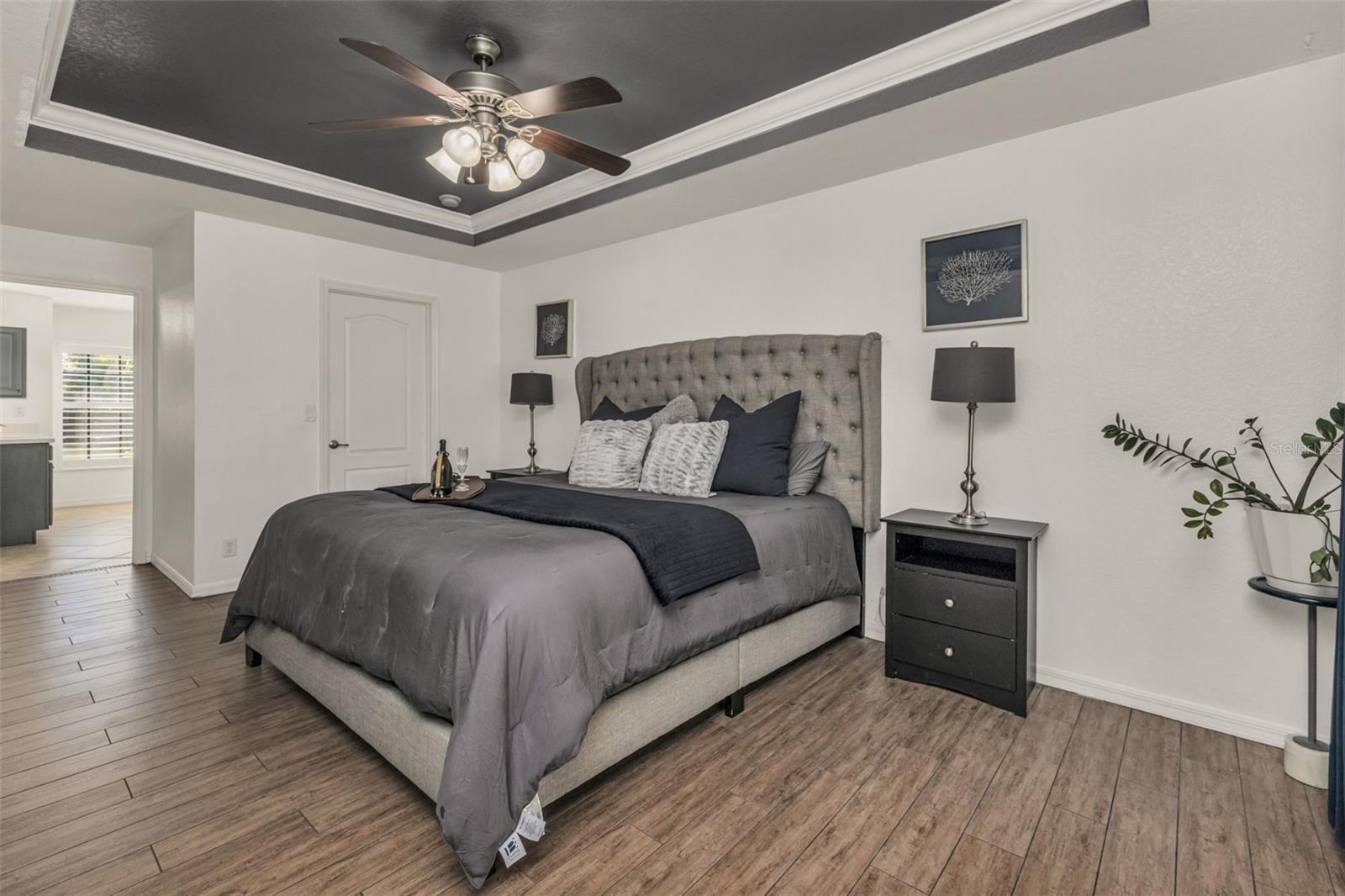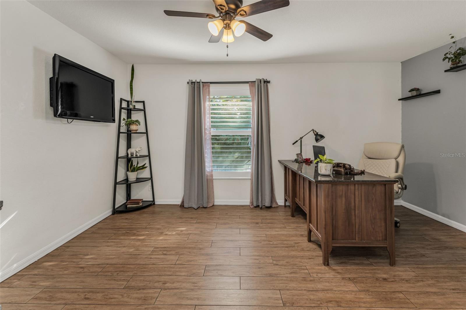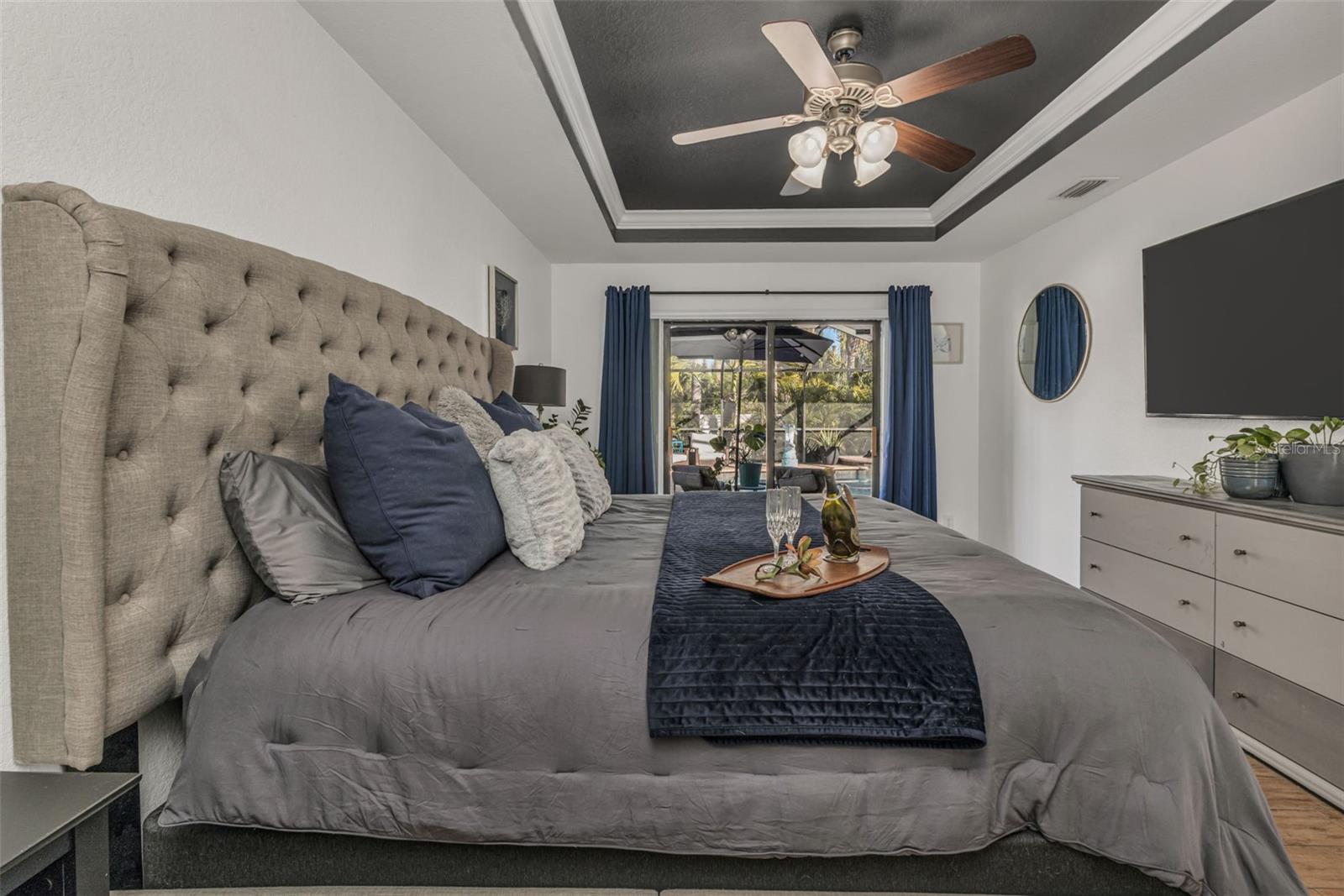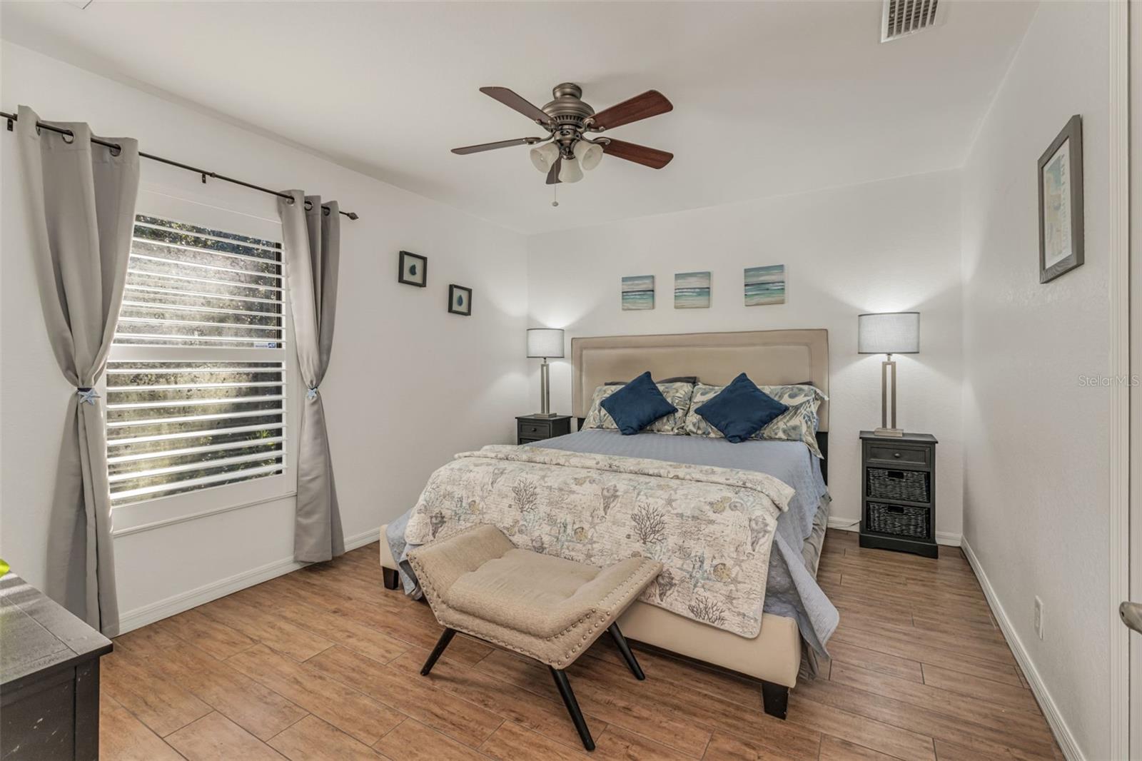 Welcome to Your Private Tropical Oasis! Perfectly situated on a rare double lot, this beautifully maintained 3-bedroom, 2-bath, 2-car garage HEATED pool home is surrounded by lush, mature landscaping that offers exceptional privacy and curb appeal. From the moment you arrive, you'll be impressed by the stamped concrete driveway and walkway and the inviting screened entryway. Inside, the home opens to soaring cathedral ceilings, porcelain and ceramic tile flooring throughout, plantation shutters, and tasteful architectural details including decorative planter shelves. With 2,276 sq ft under air, the layout offers both elegance and functionality, featuring a formal living and dining room plus a spacious family room with Bluetooth surround sound and French doors that seamlessly connect indoor and outdoor living. The kitchen is designed to impress, offering granite countertops, stylish backsplash, stainless steel appliances, a breakfast bar, pantry closet, and an abundance of cabinetry and counter space--perfect for entertaining or everyday living. The laundry room is thoughtfully designed with a washer and dryer, and cabinetry for everyday convenience. The primary suite is a true retreat with tray ceilings, a walk-in closet, and sliding glass doors leading to the lanai. The en-suite bathroom features dual sinks, a walk-in shower, jetted garden tub, and a linen closet. A desirable split-floor plan provides privacy for guests and includes two guest bedrooms, a bonus room perfect for an office/or den, and a guest bath with pool access. Step outside to your resort-style backyard featuring a sparkling heated pool with a tranquil waterfall and a screened brick-paver lanai--ideal for both relaxing and entertaining. An additional brick-paver patio beyond the lanai is ideal for grilling or gathering around a fire pit. The fully fenced backyard and tropical landscaping complete this serene outdoor oasis. Bonus SHED for extra storage. Updates include: Hot Water Heater & Pool Filter 2025, Roof 2024, Pool Heater & Leach Field replaced 2022, Shed 2019, and AC 2017. NO HOA or DEED RESTRICTIONS! This home is conveniently located in a nice neighborhood but close to restaurants, shopping, beaches and much more, this home is a must-see! Schedule your appointment today and make it yours!