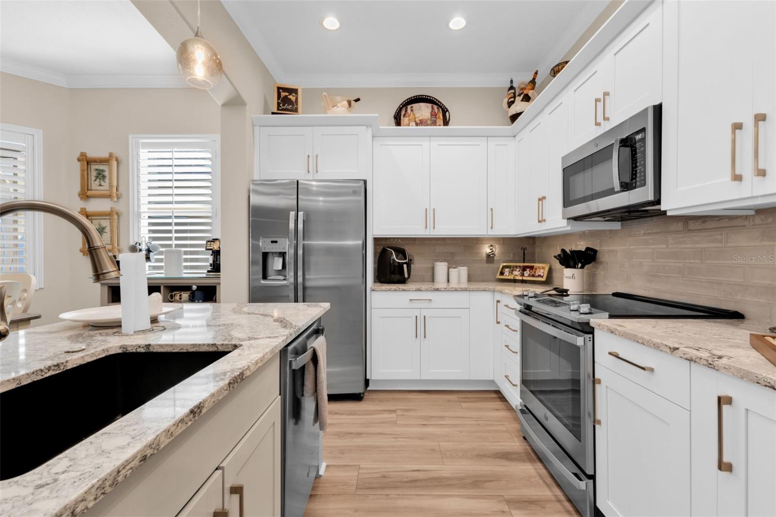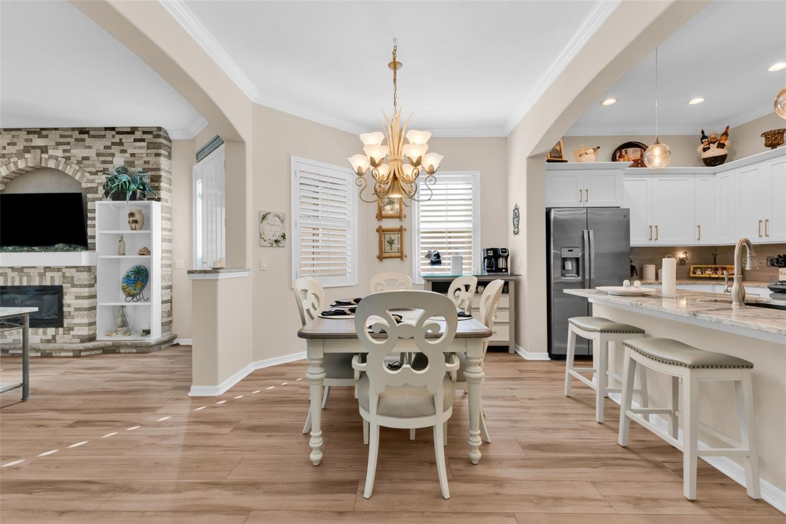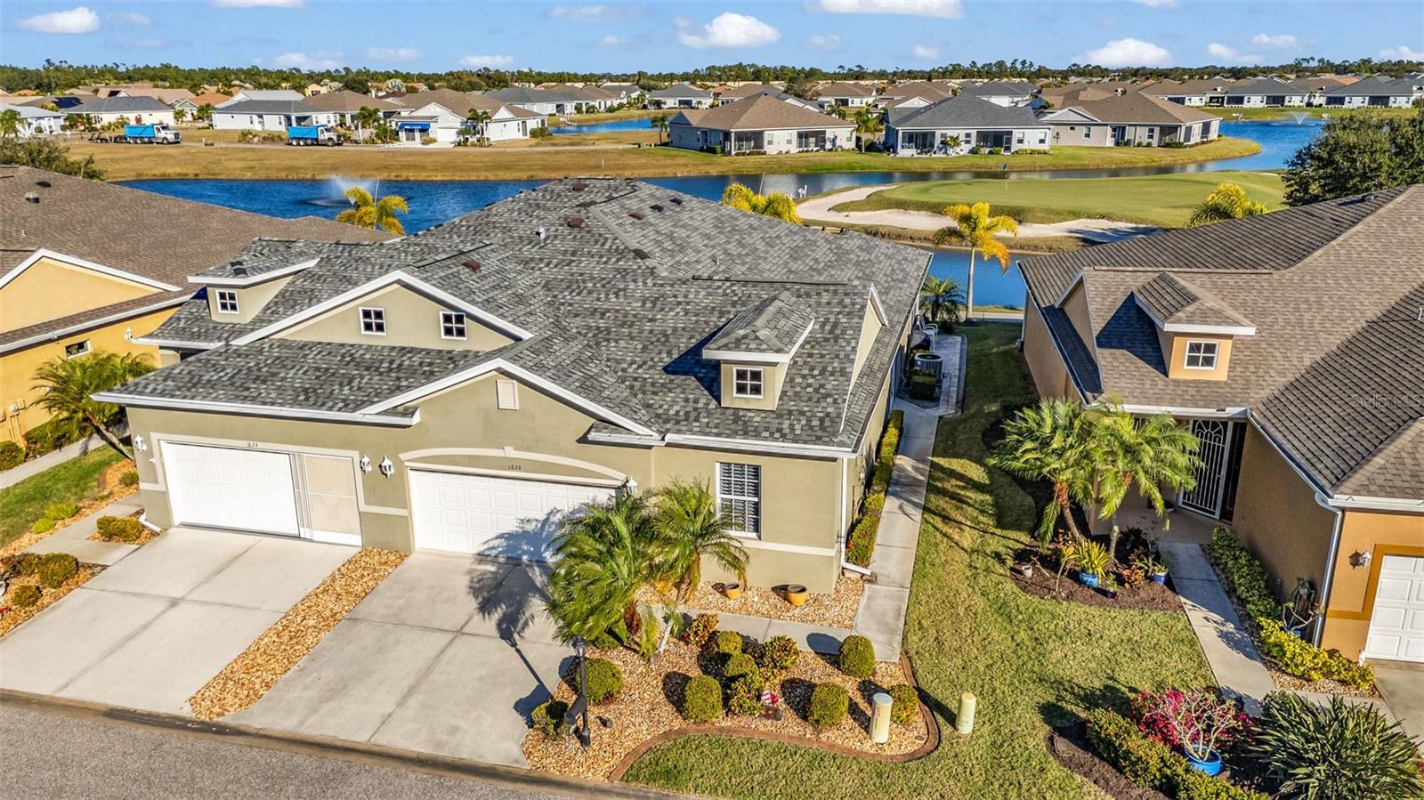 STUNNING Venetian villa with A+ view of water/pond and first hole in the gated golf course/active resort of highly desirable Kings Gate, a 55+ community that is NOT in a flood zone and does NOT require flood insurance. Lots of updated/upgraded features in this FULLY FURNISHED villa featuring 2022 roof, 2017 AC, 2021 HWW, Impact windows - LVP flooring throughout - tiled and enclosed lanai and custom built stone faade fireplace walls (one in living room and one in lanai) add that extra touch to go along with that sensational view. The open concept seamlessly connects the kitchen to the dining room, living room, and lanai. Large den provides opportunity for a work area, 3rd bedroom, 2nd TV room - whatever fits your lifestyle. And with large master bedroom in the back left of the villa and the guest bedroom in the front right of the villa both you and your guests will have plenty of privacy. And with the extra 1/2 bath - your guests can have their own private bathroom. Good size laundry room and additional cabinets. Plenty of places to relax and/or entertain in this villa - and no question you're going to love having your morning cup of coffee and/or your favorite after dinner drink in the lanai over looking the water/pond and the serenity it provides. And if you haven't been to Kings Gate before - you're going to love the options for activity (Olympic size heated swimming pool and spa, tennis courts, pickle ball, lawn bowling, shuffle board, bocce, horseshoes, gym, billiards, library, euchre, bingo, bridge, Texas hold em, poker, mahjong and more). The onsite AND NEWLY REMODELED Lions Den restaurant and bar is super convenient and also offers Tuesday night Karaoke and monthly trivia contests. Many residents love the fact that they are just a golf cart ride away from the shopping plaza that provides you access to grocery store (ALDI), drug store, bank, restaurants and shopping. Want to explore outside of Kings Gate - you are minutes away from the restaurants and shops of downtown Punta Gorda and Fisherman's village. And if you want to explore more of Florida's fun spots you're near I75 to quickly head north or south. An AWESOME villa with one of the very best views in all of Kings Gates to go along with custom stone fireplace walls in a PREMIER gated community needs to be seen in person to be appreciated/understood. Call today for a private showing and a golf cart tour of the community/amenities.