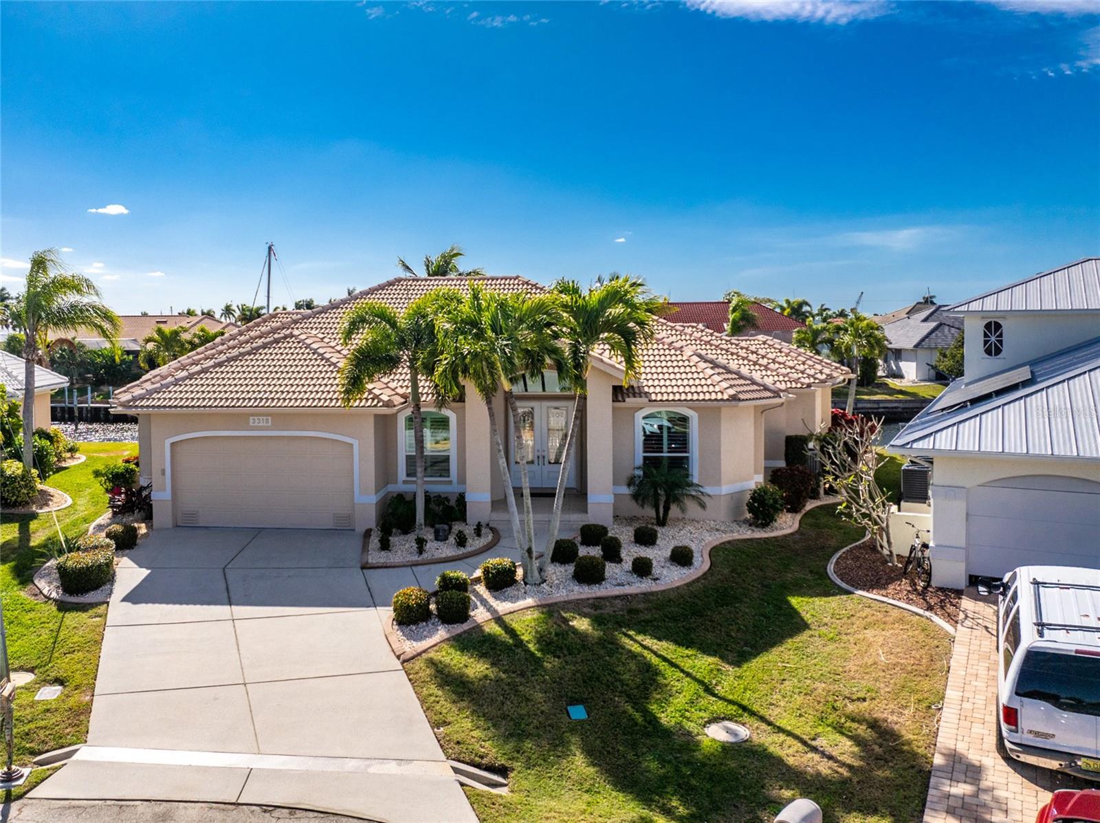 Welcome to 3318 Nevis Court--a stunning custom waterfront home in the heart of Section 12 of Punta Gorda Isles, where luxury meets laid-back Florida living.This beautifully designed residence offers 3 spacious bedrooms, 3.5 baths, and an oversized 2-car garage, thoughtfully laid out for comfort, privacy, and entertaining. Step outside to your own private oasis featuring a heated pool and spa, plus a convenient pool bath with outdoor shower--perfect for enjoying the Florida sunshine year-round.Boaters will fall in love with the exceptional waterfront setup: 140 feet of city-owned, maintained concrete seawall, a 70-foot private concrete dock (under contract to replace the current 90' dock), and a 16,000-lb boat lift, all providing quick access to Charlotte Harbor and the Gulf.Inside, the kitchen and laundry room have been tastefully partially remodeled in recent years, showcasing high-end Thermador, Sub-Zero, and Bosch stainless steel appliances. The kitchen features elegant Quartzite countertops and a large stainless-steel farmhouse sink, making it as functional as it is beautiful.Each of the three bedrooms includes their own ensuite bath(s), offering comfort and privacy for family and guests alike.Located on a quiet cul-de-sac in one of Punta Gorda's most desirable waterfront communities, this home delivers the best of coastal living--luxury finishes, exceptional boating amenities, and a prime location. A rare opportunity you won't want to miss.