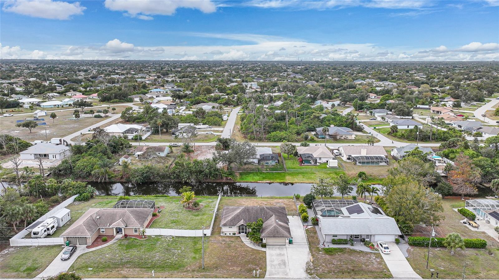 Canal frontage and NO HOA fees! This well-maintained 3-bedroom, 2-bath single-family home with an attached oversized 2-car garage is situated on a generously sized lot and offers 1,636 square feet of thoughtfully designed living space. The garage provides ample room for vehicles, extra storage, and workspace, while the dedicated laundry room includes a convenient utility sink, adding everyday practicality. The open, split-bedroom floor plan creates a warm and inviting atmosphere, highlighted by a spacious living and dining area ideal for both entertaining and everyday relaxation. Bright and airy with soaring ceilings, the home features tile flooring throughout the main living areas and modern fixtures throughout. Sliding glass doors from the living room open to a 28x9 screened lanai, seamlessly blending indoor and outdoor living. Beyond the lanai, an outdoor patio overlooks the long, fully fenced backyard and tranquil freshwater canal, providing the perfect setting for outdoor enjoyment and relaxation. The bright, functional kitchen is designed for both daily living and entertaining, showcasing light cabinetry with brushed hardware, warm countertops, and a stylish herringbone-pattern tile backsplash for a timeless yet updated look. Ample cabinet and counter space provide excellent storage and prep areas, complemented by a full suite of appliances and a pantry closet. The kitchen opens to a cozy dinette featuring sliding glass doors to the lanai and windows that capture peaceful waterfront views--ideal for casual meals with a view. The spacious primary suite serves as a private retreat, offering plush carpeting, direct access to the lanai, and two closets, including a generous walk-in. The en-suite bath is thoughtfully designed with a walk-in shower and an extended vanity with ample storage. The remaining bedrooms are comfortably sized, also featuring carpeted flooring, and share a well-appointed full-guest bathroom, providing both comfort and functionality for family or guests. Additional peace-of-mind features include a shingle roof approximately 8 years old, a newer A/C system just 2 years old, and a hot water heater approximately 6 years old, making this home an excellent choice for full-time living or seasonal enjoyment. Located near Rotonda West which features five golf courses, scenic walking and biking trails, boating and fishing opportunities, and is conveniently located near pristine Gulf beaches, shopping, and dining, offering the best of Florida lifestyle living.**PLEASE ENJOY THE 3D INTERACTIVE VIRTUAL TOUR ASSOCIATED WITH THIS LISTING**