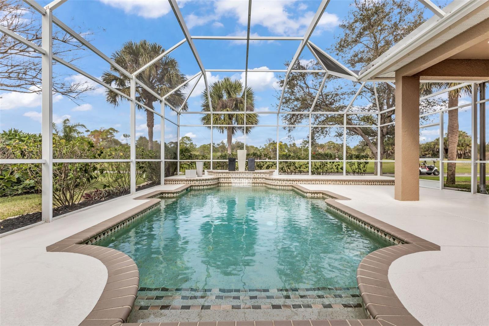Don't miss this beautifully updated 4-bedroom, 3-bath pool home with a 2-car garage, ideally positioned on the 3rd green of the stunning Riverwood Golf Course. This spacious residence blends modern upgrades with classic Florida indoor-outdoor living and picturesque golf course views. Inside, vaulted ceilings and a desirable split floor plan create an open, airy feel. The home features a tasteful mix of tile, hardwood, and brand-new carpet, along with elegant plantation shutters and abundant natural light throughout. The kitchen is appointed with granite countertops and all-new appliances, including a dishwasher, microwave, refrigerator, range, and a double oven with convection and air-fryer capabilities--perfect for both everyday living and entertaining.The expansive owner's suite offers a walk-in closet and a well-appointed en-suite bath featuring dual sinks, a walk-in shower, and a relaxing garden tub. One of the three bathrooms provides convenient direct pool access, ideal for guests and outdoor gatherings.Step outside through three large sliding glass doors to a generous wraparound screened lanai overlooking the sparkling pool, complete with a soothing water fountain and child safety gates. Plumbing is already in place for a potential outdoor kitchen, making this space perfect for entertaining. Enjoy year-round comfort with six indoor ceiling fans and three outdoor ceiling fans. Major improvements include a new roof installed February 2025 with transferable warranty, hurricane-impact windows, a 2-year-old air conditioning system, and new carpet. Additional features include an irrigation system using community water and a Ring doorbell for added convenience and security.A truly rare offering, this home is eligible for immediate transfer of the Riverwood Beach Club membership. The Beach Club is limited to approximately 400 households, resulting in a long-standing waiting list. However, when purchasing a home from an eligible, paid Beach Club member--such as this property--the buyer may immediately assume the membership, bypassing the waiting list entirely (subject to club approval and transfer requirements). The Riverwood Beach Club at Manasota Key is a private, gated beachfront retreat exclusively for members, featuring private parking, cabanas, picnic areas, restrooms, outdoor showers, and Wi-Fi--providing effortless, exclusive access to one of Southwest Florida's most desirable beaches.Riverwood Community Amenities include the Riverwood Amenity Center with a resort-style pool and hot tub, tiki bar, library, and 24-hour fitness center, as well as pickleball and tennis courts and a community dog park. Riverwood Golf Club offers championship golf within this beautifully maintained community.This move-in-ready home combines modern upgrades, golf course living, and resort-style amenities--Florida living at its best.