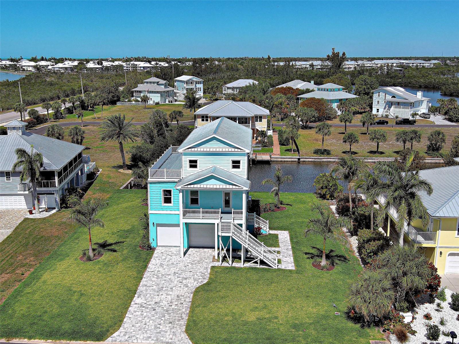 One or more photo(s) has been virtually staged. Experience refined Waterfront Living at Placida Pointe. Located near world-famous Boca Grande, this extraordinary property showcases Breathtaking Panoramic Views of the Intracoastal Waterway & Gulf of Mexico and provides access to resort-style amenities. Come experience this NEW, Custom-Built, Waterfront residence where strength, innovation & luxury design come together. Built with Steel Structural Insulated Panels (SIPs), Steel Beams/Supports, Reinforced Steel Framing, AdvanTech Engineered Subfloors & durable METAL PBR Panel Roof, this home is thoughtfully designed for lasting durability and peace of mind in coastal environments. It's equipped with Hurricane-Impact Insulated Windows/Doors & Insulated HAAS Steel Garage Doors. The garage is finished with a durable Epoxy-Coated floor. Inside, architectural details shine with a stylish staircase featuring Poplar L.J. Smith Stairs and a private 3-story Traction ELEVATOR. The home features a GAS/PROPANE Range, Dryer & Tankless Water Heater. 2 Mitsubishi Electric Mini Split Ductless Heat Pumps/22 SEER with 6 zones provides efficient, quiet climate control throughout the home. The 1st floor offers a PRIVATE living space/In-Law Suite with SEPARATE ENTRY & KITCHENETTE. A conveniently located Laundry Closet, Bathroom, Bedroom and Bonus Room provide added living space. Step outside to the 1st of 3 spacious decks overlooking the canal-perfect for enjoying the coastal breeze while relaxing or entertaining. The expansive 2nd Floor Kitchen is designed to be the heart of the home, featuring a large Center Island. QUARTZ countertops & premium Schuler Cabinetry provide both durability & a sleek modern look, complemented by Stainless Steel Appliances from Whirlpool. An Apron-Front Sink adds style while the large Walk-In Pantry offers abundant storage. Nuvelle Luxury Vinyl Plank Flooring is featured in all living areas. Custom touches include a Built-In Entertainment Center & soaring ceilings. The 3rd floor showcases a luxurious Primary Suite that offers privacy & space, creating a peaceful sanctuary where you can enjoy Scenic Harbor and SUNSET VIEWS from your PRIVATE BALCONY! The Primary Bath includes a large Walk-In Shower and Double Vanity. The MB has 2 ample Walk-In Closets. Spa-Inspired Bathrooms include Walk-In Showers/Waterproof Surrounds, Delta Fixtures, Rain Showerheads with relaxing Shower Jets. Just steps from the bedroom is a private BONUS ROOM, ideal for a home office, den or quiet lounge. The curb appeal is unmatched with a Flagstone Paver Driveway, Professional Landscaping, 4 Royal Palms and Florastsan Sod. A Rainbird & Hunter Sprinkler System ensures proper hydration. A WaveArmor Floating Dock & Concrete Seawall grants canal access for kayaks/shallow draft boats to Coral Creek. Just mile away is the newly renovated Placida Harbour Clubhouse and Private Marina that can accommodate larger boat access. There are 2 other Clubhouses, Heated Pools, Fitness Center, Tennis Courts, Pickleball, and much more! Residents and guests can enjoy the PRIVATE FERRY to Placida Beach/Little Gasparilla Isle with a 10-minute boat ride! Members have access to Placida Beach Clubhouse complete with Pool/Kitchen & 7 miles of Pristine Beaches accessible ONLY by boat. Just minutes from Boca Grande, Beaches, Shops, Dining, Coral Creek Golf Club & Coral Creek Private Airport, this gated waterfront community offers privacy & the tranquil luxury of waterfront living. Don't Wait~Make this piece of paradise yours today!