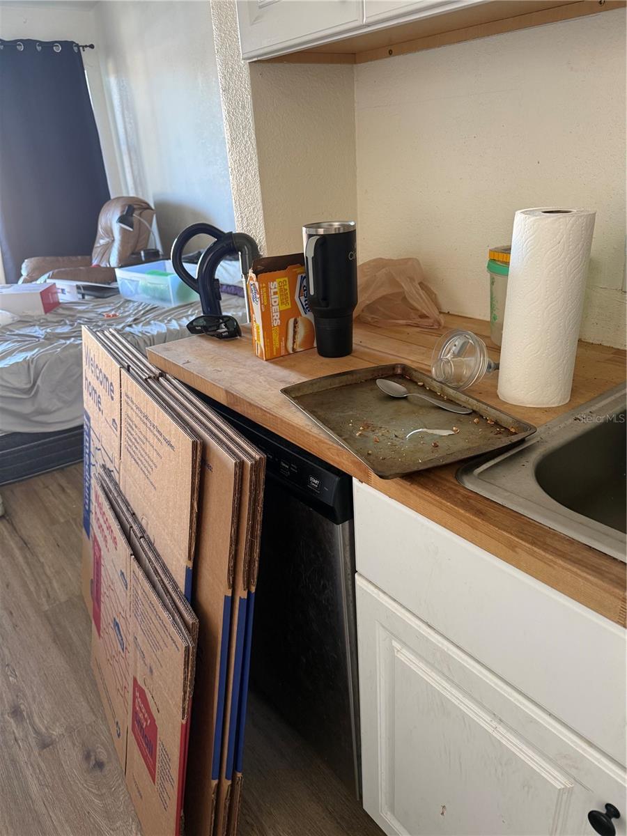 Short Sale. Third-party approval required. This property boasts an inviting open floor plan with modern updates. Enjoy the convenience of cosmetic upgrades throughout, a fenced-in backyard offering both privacy and security, and a primary bedroom complete with an ensuite bathroom. The upgraded kitchen features sleek butcher block countertops, adding a touch of elegance to your culinary experience. Plus, the flexible room with built-in closet and sliding barn doors can easily serve as an additional bedroom or versatile space to suit your needs. Step outside to the small patio and embrace the Florida sunshine in your own tranquil oasis. Close to hospitals, shopping, entertainment, and more. Great Investment or first home.
