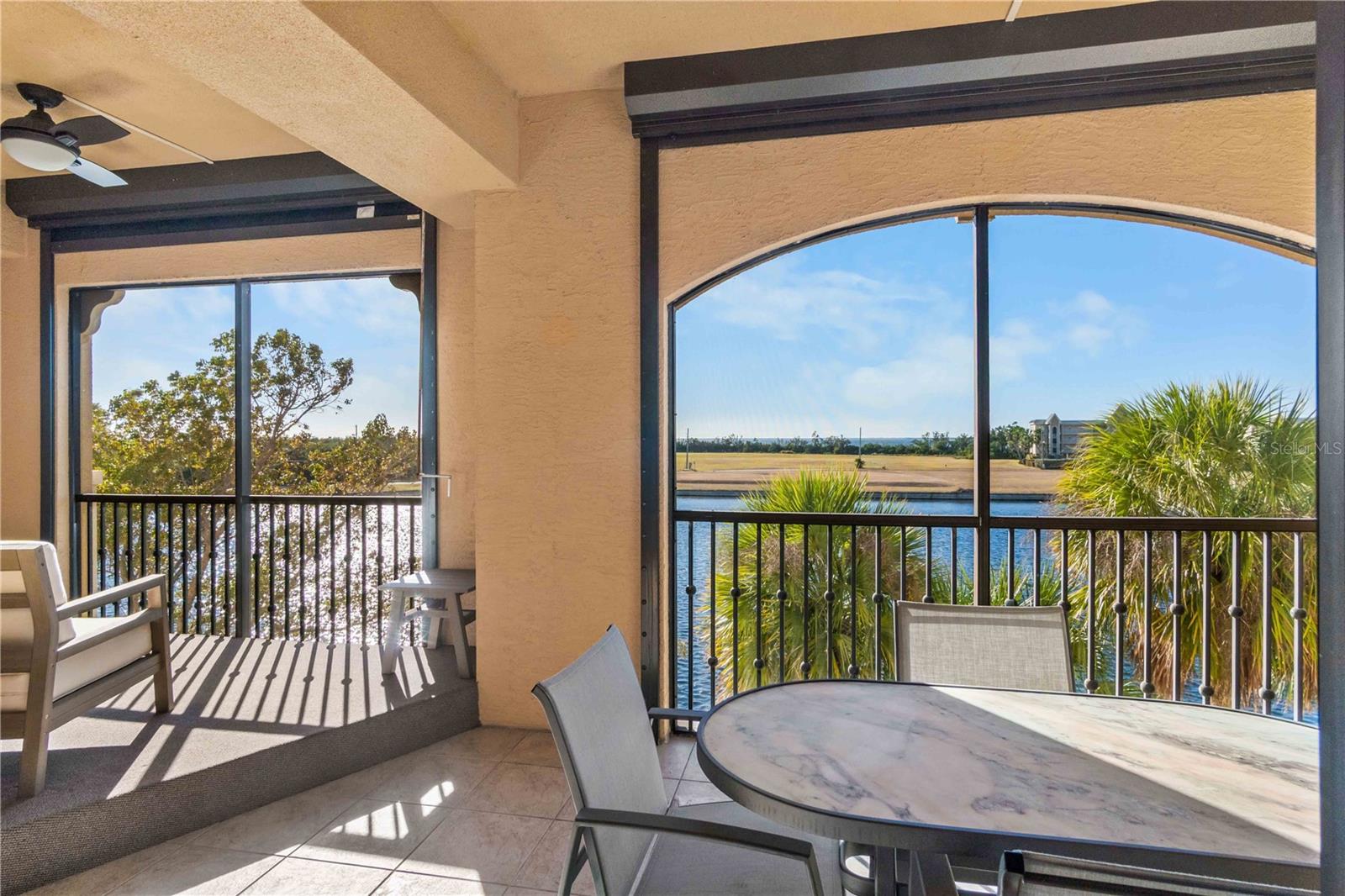 Welcome to your piece of paradise in the highly sought-after gated community of Vivante! This stunning community offers countless resort style amenities including its luxury appeal from the moment you arrive to the front gate. This unit offers something you likely won't find anywhere else... Two separate garages are deeded with the sale of this unit along with an attached storage room! Enclosed parking for at least 3 vehicles, possibly 4 depending on vehicle size! From the moment you walk inside your new home, you will be greeted by an open layout with waterfront views of the nearby lake and the charlotte harbor in the distance. There is an oversized kitchen with slate appliances, Reverse Osmosis system, and an additional countertop bar area as well. Both bedrooms are spacious with walk-in closets and their own private bathroom with a 3rd (half) bathroom for guests. There is even an enclosed office that could be used as a 3rd bedroom if desired and a large interior laundry room. This property is also protected by impact windows and automatic roll down hurricane screens giving you easy peace of mind year round and Bahama shutters on the windows along with built in closet storage. Absolutely perfect for full time and seasonal residents with the PG airport just down the road along with top destinations such as the sunseeker resort, fisherman's village, and downtown Punta Gorda just minutes away. This property is also protected by impact windows and automatic roll down hurricane screens giving you easy peace of mind year round. Ask your agent to show you the attached fully interactive 3D tour and prepare to fall in love!