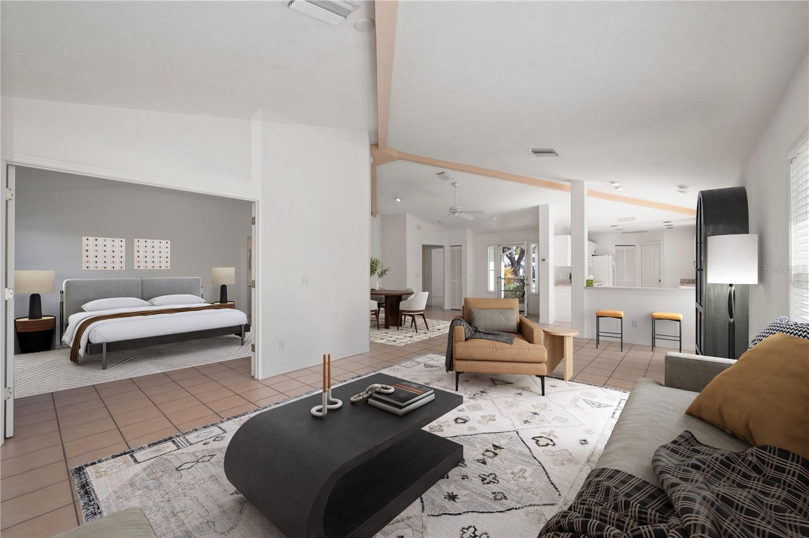 One or more photo(s) has been virtually staged. At the end of a quiet cul-de-sac in the sought-after Patio Homes of Chestnut Creek, there is a home that seems to understand the art of exhale. Morning arrives gently here. Sunlight drifts through soaring ceilings that rise nearly twelve feet high, filling the spacious living room with a warm, golden glow. The air feels lighter, the rooms feel larger, and the open floor plan unfolds effortlessly, offering generous space to gather, entertain, or simply stretch out and savor the quiet rhythm of the day. With 1,500+ square feet, two bedrooms, and two baths, this thoughtfully designed one-story home offers comfort without excess and ease without compromise. The kitchen is ready for conversation and creativity, with abundant counter space and a pantry that keeps everything tucked neatly away. Behind double doors, the primary suite becomes a retreat of its own. A spacious walk-in closet offers room for everything, while the private en suite bath provides a calm space to begin and end each day. The second bedroom and bath welcome guests with comfort and privacy. Step outside and the world softens even further. The spacious backyard is framed by mature landscaping, creating a natural sense of privacy. It is the kind of setting where morning coffee lingers a little longer and evening breezes feel like a quiet reward. Life in Venice carries its own gentle charm. Just minutes away, you will find the soft sands of Venice Beach, waterfront restaurants, boutique shopping, and the vibrant yet welcoming downtown filled with parks and year-round events. Within the community itself, residents enjoy tennis, pickleball, shuffleboard, a clubhouse, a refreshing pool, and tree-canopied streets perfect for walking or biking beneath Florida's blue skies. This home is ideal for those ready to retire into tranquility, downsize without sacrifice, or secure a winter escape at an affordable price. It is not just a property. It is a slower morning, a calmer afternoon, and a sunset you never have to rush to catch.