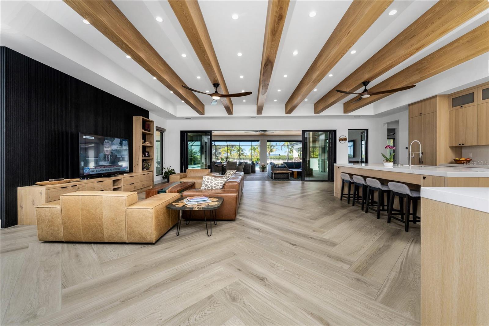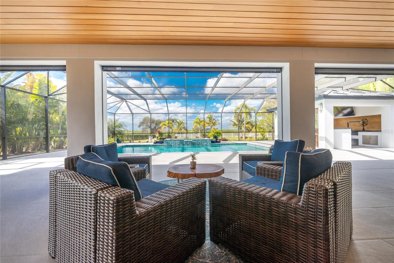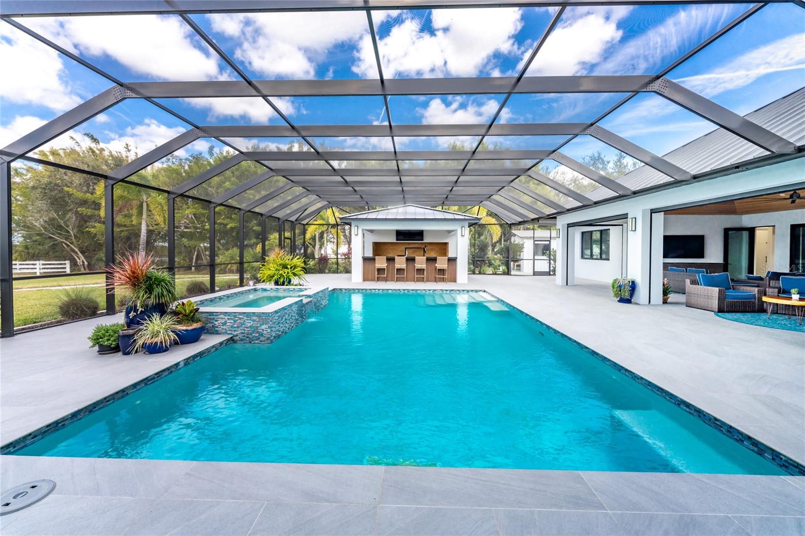 Experience the Pinnacle of Luxury in this Waterfront Estate Home Located in the "Estates on Peace River" gated neighborhood. Offering four bedrooms, three baths, and 3,619 square feet of refined living space, this residence is positioned on over an acre of land, where there is an incredible sense of space and privacy rarely found. Extensively built in 2022, this architectural masterpiece blends contemporary design with warm natural elements, creating a home that is as striking as it is inviting.Designed for both day to day living and effortless entertaining, the home showcases an open concept kitchen, dining, and living area with sweeping waterfront views filling the home with natural light and creating a seamless connection between indoors and out. The gourmet kitchen includes high end appliances, generous counter space, and a large Butler's pantry, perfect for the culinary enthusiast. The thoughtful interior layout ensures exceptional owner privacy, even when hosting guests. The expansive Primary Suite serves as a serene retreat, featuring breathtaking sunset views over the Peace River. The oversized guest bedrooms include a double vanity bathroom, providing both comfort and luxury for family and friends. A spacious bonus room offers remarkable flexibility and can easily transform into a fourth bedroom, office, media, or fitness room. Enhanced with standing seam metal roof, hurricane impact windows and doors, the property offers both beauty and peace of mind with materials selected for durability, resilience, and low maintenance. The outdoor living space emulates the interior space with uninterrupted water views and multiple lounging areas for relaxing with kevlar roll down hurricane protection. The pool and spa are complemented by a fully equipped outdoor kitchen, the ultimate setting for sunset gatherings and weekend entertaining.For boating enthusiasts, this property boats a private dock and covered 13,000 lift, offering direct access to the Peace River and beyond -- making fishing, cruising, and waterfront adventures part of your everyday lifestyle.Additional features include an oversized three car garage designed to accommodate vehicles and a golf cart, complete with EV charger, storage cabinets and workbench. A convenient shed located just off the side of the home provides additional storage for tools and equipment.