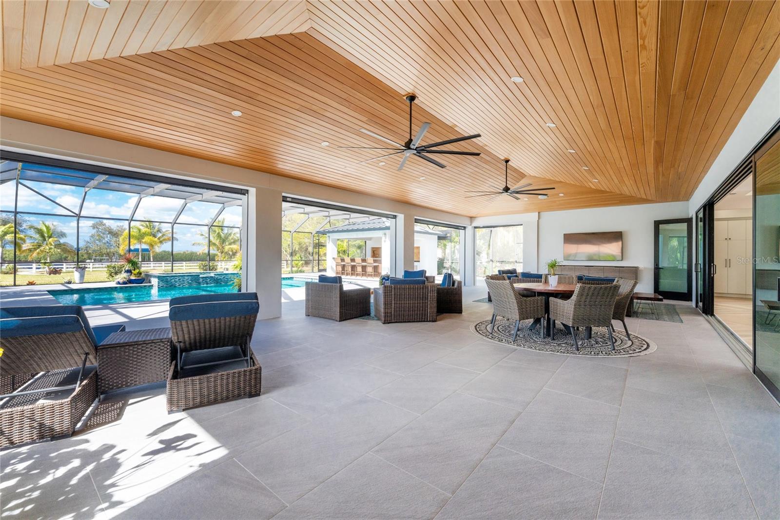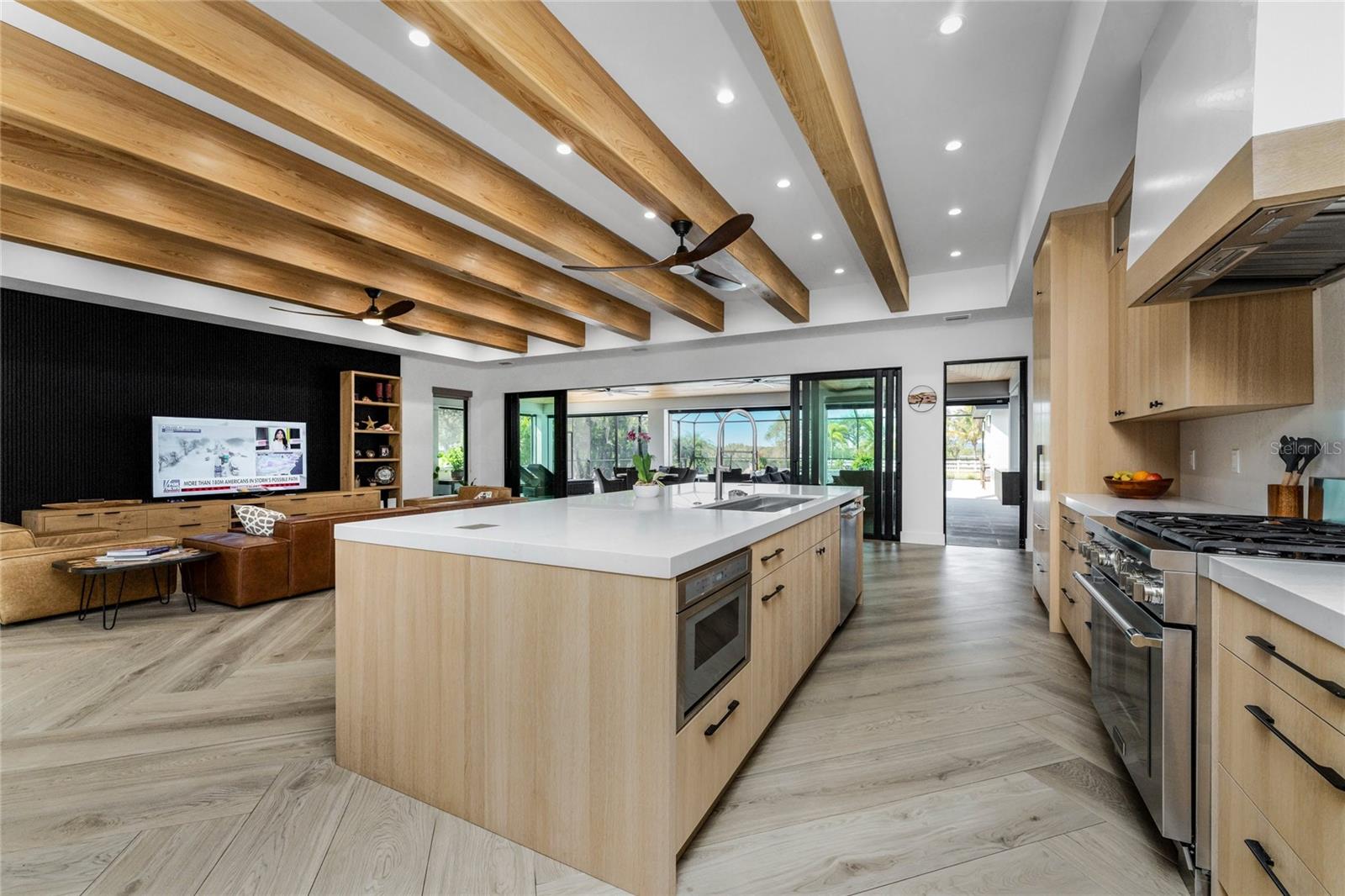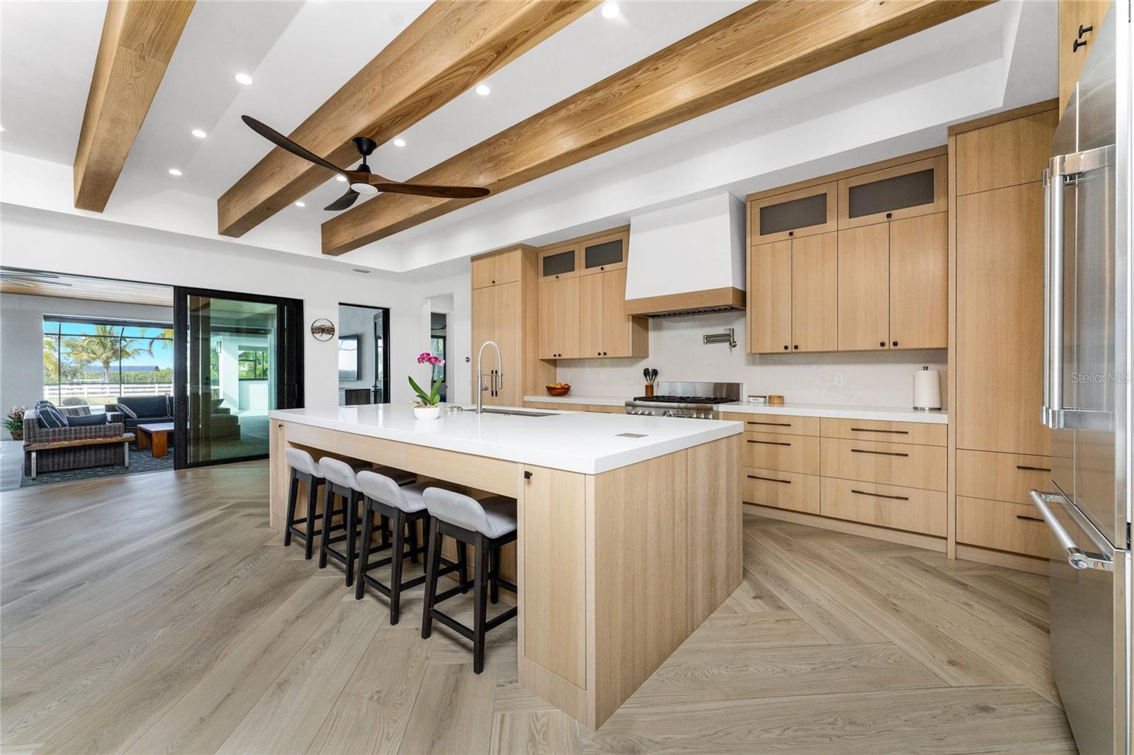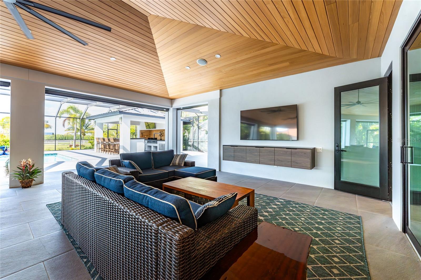 Experience the Pinnacle of Luxury in this Waterfront Estate Home Located in the "Estates on Peace River" gated neighborhood. Offering four bedrooms, three baths, and 3,619 square feet of refined living space, this residence is positioned on over an acre of land, where there is an incredible sense of space and privacy rarely found. Extensively built in 2022, this architectural masterpiece blends contemporary design with warm natural elements, creating a home that is as striking as it is inviting.Designed for both day to day living and effortless entertaining, the home showcases an open concept kitchen, dining, and living area with sweeping waterfront views filling the home with natural light and creating a seamless connection between indoors and out. The gourmet kitchen includes high end appliances, generous counter space, and a large Butler's pantry, perfect for the culinary enthusiast. The thoughtful interior layout ensures exceptional owner privacy, even when hosting guests. The expansive Primary Suite serves as a serene retreat, featuring breathtaking sunset views over the Peace River. The oversized guest bedrooms include a double vanity bathroom, providing both comfort and luxury for family and friends. A spacious bonus room offers remarkable flexibility and can easily transform into a fourth bedroom, office, media, or fitness room. Enhanced with standing seam metal roof, hurricane impact windows and doors, the property offers both beauty and peace of mind with materials selected for durability, resilience, and low maintenance. The outdoor living space emulates the interior space with uninterrupted water views and multiple lounging areas for relaxing with kevlar roll down hurricane protection. The pool and spa are complemented by a fully equipped outdoor kitchen, the ultimate setting for sunset gatherings and weekend entertaining.For boating enthusiasts, this property boats a private dock and covered 13,000 lift, offering direct access to the Peace River and beyond -- making fishing, cruising, and waterfront adventures part of your everyday lifestyle.Additional features include an oversized three car garage designed to accommodate vehicles and a golf cart, complete with EV charger, storage cabinets and workbench. A convenient shed located just off the side of the home provides additional storage for tools and equipment.
