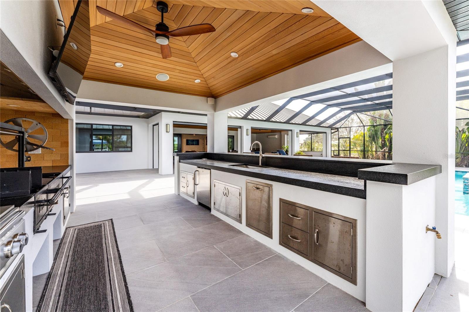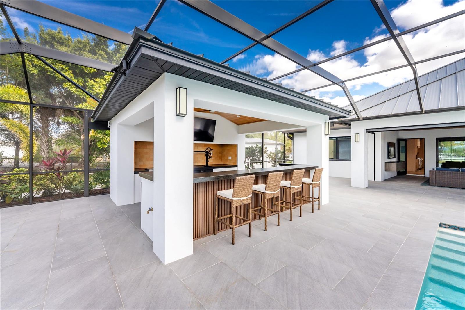 Exterior: Hurricane Shutters, Lighting, Outdoor Kitchen, Private Mailbox, Rain Gutters, Sliding Doors