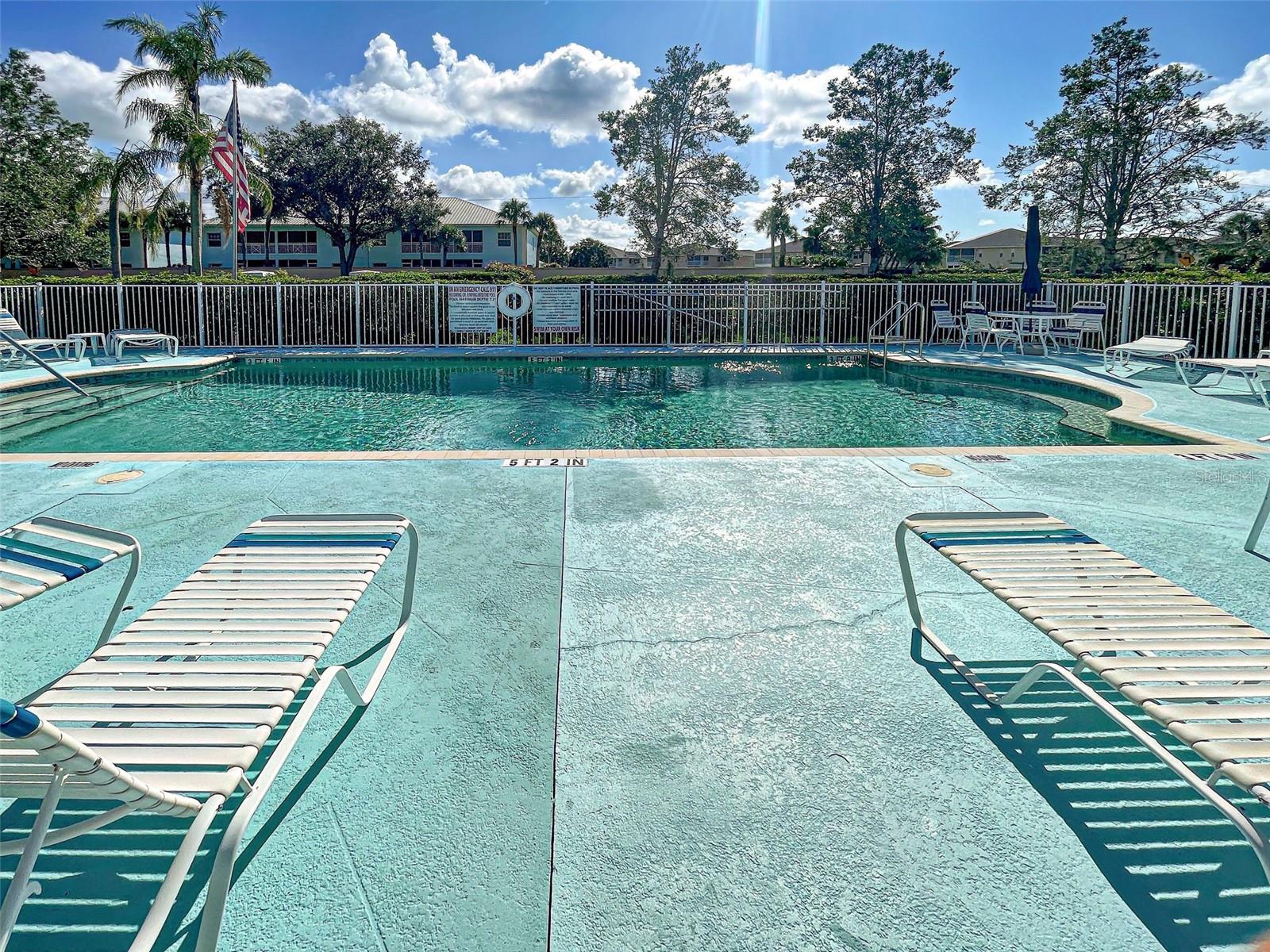 KICK BACK, RELAX, AND TRULY ENJOY THE FLORIDA LIFESTYLE in this perfect-in-every-way, maintenance-free 1153 SF 2-bedroom, 2-bath ground floor condo in an attractive, well-kept, friendly and caring 55+ community in the heart of North Port. The open concept floor plan provides a light, bright sundrenched home, with warmth, style and character throughout. Rear lanai, with new screens, vinyl sliders and Collaroo 50 exterior shades assures year-round comfort, and faces west to enjoy our beautiful Florida sunsets over a serene view of Dallas Park. Dallas Park provides public access to tennis and volleyball courts, picnic areas, playground and kayak/canoe launch for endless outdoor activities practically at your doorstep. The front window faces east, so you can enjoy your breakfast sunny side. Gorgeous Marazzi glazed tile throughout, with new luxury vinyl in primary bedroom (no carpet!). PGT 500 series hurricane impact windows, Bali custom double cell corded blinds and ceiling fans in living area, master suite and guest bedroom/office/den. Fabulous kitchen/breakfast nook area! Custom Quartz countertops and sink! Two (2!) large pantries/storage closets! Reverse osmosis system for drinking water! Large breakfast bar overlooks the living/dining combination providing the ideal space for entertaining guests or enjoying intimate family dinners with friends and family. The sumptuous primary suite features a sliding door that opens out to the private lanai, with a huge walk-in closet and separate linen closet as well. The ensuite bath has an expansive countertop and large step-in shower with grab bar. The guest quarters/office/den deliver privacy when guests visit, featuring a pocket door to the private suite accommodations. The guest bath has new Koehler hi-rise commode as well as grab bars. The laundry area is enclosed with doors and affords additional storage. Beautiful in-ground heated community pool (updated 2023) and outdoor barbecue grill, perfect for gathering with friends and neighbors. NEW ROOF AND CARPORT - 2023. BUILDING REPAINTED - 2024. AC has been regularly maintained, with a new dual purpose capacitor with a 5-year warranty in 2025. NO CDD. LOW HOA FEES! CITY WATER & SEWER (included in HOA fee, as well as maintenance of building exterior and grounds). Pride of ownership shows ... ALL UNITS RESIDENT-OWNED - NO RENTERS! The City of North Port offers endless opportunities for recreation and entertainment, such as world-famous Warm Mineral Springs, nearby golf courses, some of the world's most beautiful beaches, and world-class fishing and boating just a short drive away. The North Port Aquatic Park is close by. The CoCoPlum Village Shoppes provide a variety of restaurants and retails shops that are sure to meet your needs. LOVELIEST AND BEST CARED FOR CONDO AVAILABLE IN THIS PRICE RANGE. THE PERFECT BLEND OF COMFORTABLE LIVING, CHOICE LOCATION AND AFFORDABLE PRICE! CALL NOW; IT'S TOO NICE TO LAST!