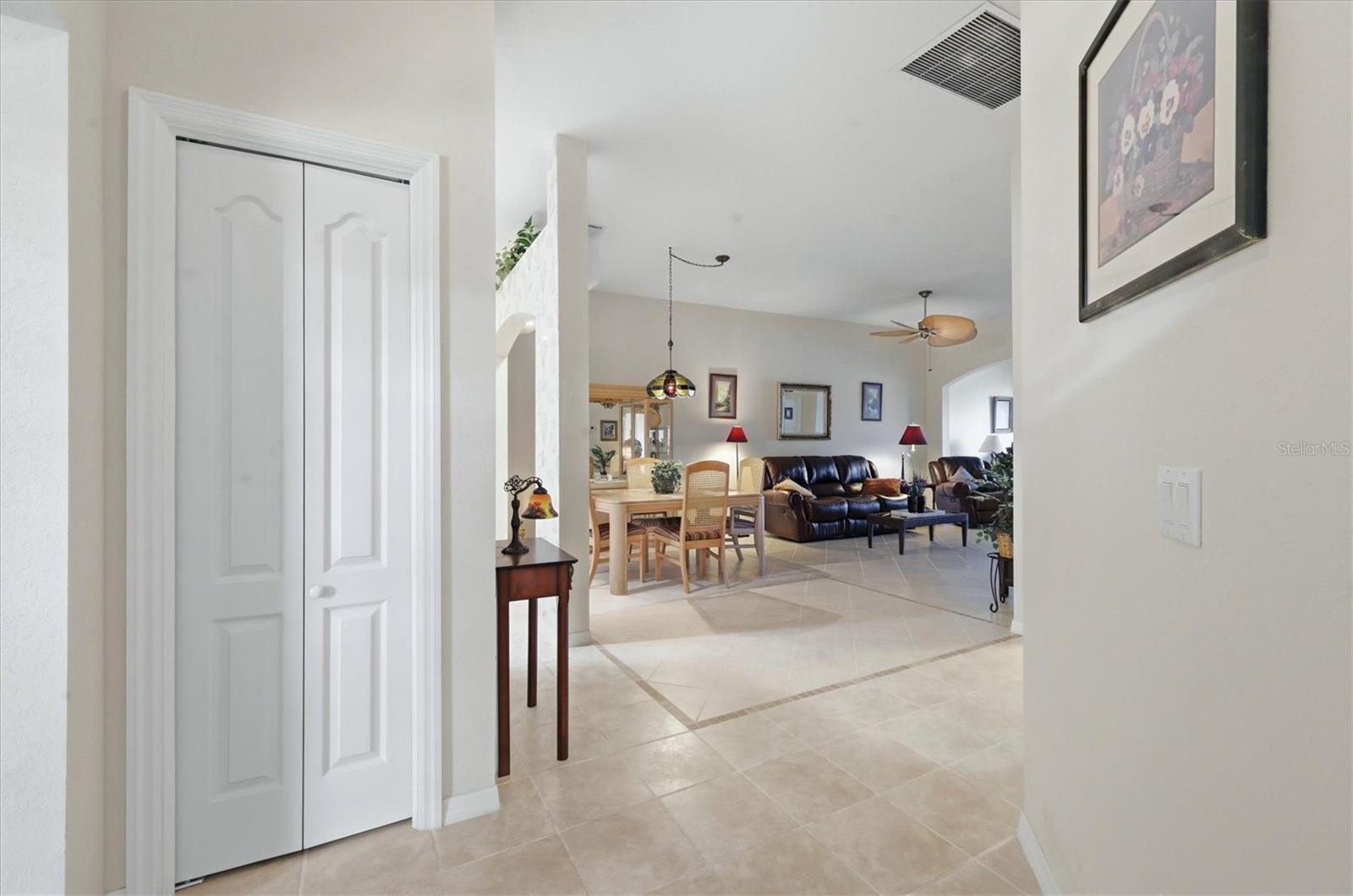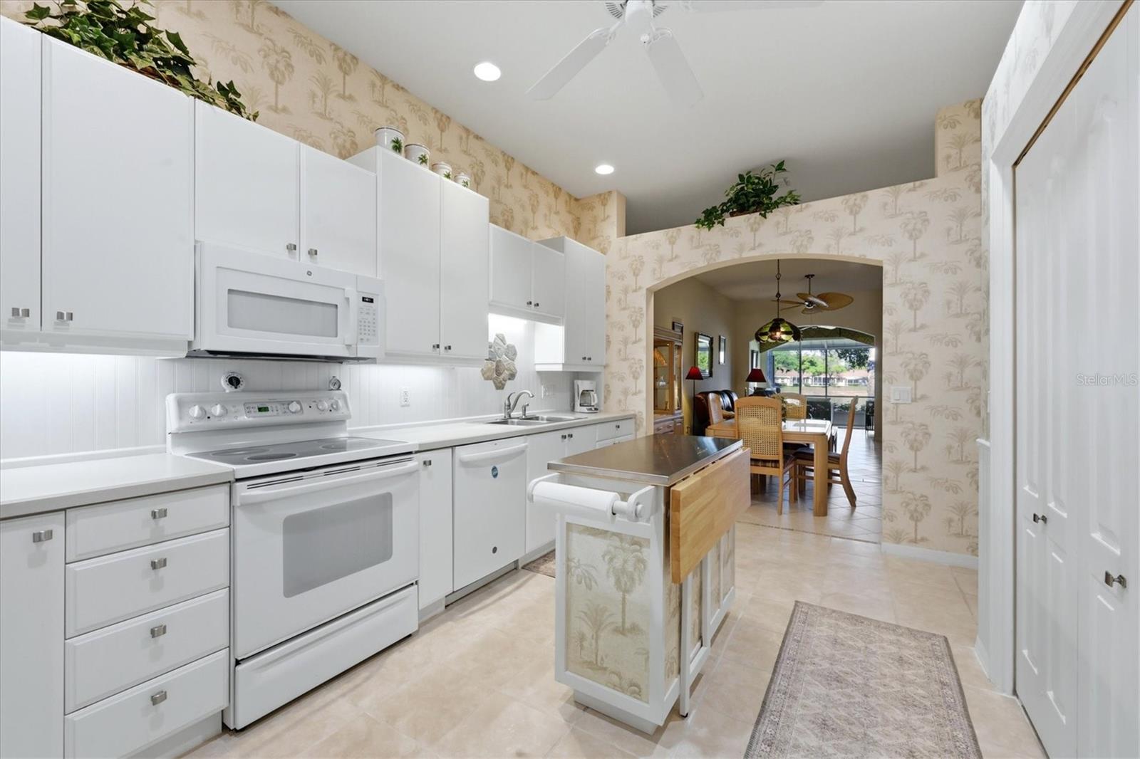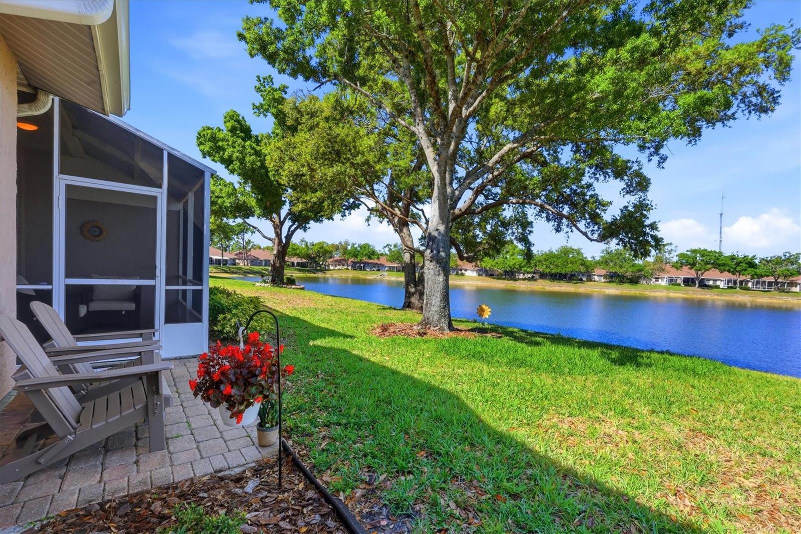 You will love the soaring ceilings and relaxing LAKE VIEW of this FULLY FURNISHED, TURN-KEY, MAINTENANCE FREE VILLA! Flexible floor plan includes a large kitchen and GREAT ROOM to use as you wish. The eat in, oversized kitchen has newer appliances, an array of cabinets, some 42", with counter top lighting and extra storage. There are three bedrooms; one used as a DEN/OFFICE with a full wall built in book case and closet, PLUS a BONUS ROOM/FLORIDA ROOM with sun/privacy shades. Private master suite features include a bump out for extra space, a huge walk in closet and deluxe master bath with dual vanities and large walk in shower. Guest room features double doors and a walk in closet. Plenty of windows throughout all with blinds and custom window treatments. Comfy covered lanai has a brick floor, a ceiling fan, shady tree and is perfect for outside drinks, reading or relaxing! Extra paver patio for grilling or sunbathing. Oversize garage with more storage. Short walking distance to the villas pool and clubhouse that you can use for your events with a catering kitchen or you can also use the master community pool, clubhouse with another catering kitchen, fitness center, tennis and pickleball courts. Scheduled activities are available at both. Golf course is privately owned and closed. The CDD fee is included in the taxes and is not in addition to. Roofs are the responsibility of the Association. Sarasota Emergency Medical Center is right across Toledo Blade along with a fire station, car services, dental, shopping, a new Aldis and Wawa and restaurants. About 3 miles to I75 and Shannon Staub Library or straight down Toledo Blade to US41 and plenty more shops, restaurants, Home Depot, WalMart, Port Charlotte Mall, world class Tarpon fishing and beaches!. Beautiful area beaches are in both directions along with the Legacy Trail Bicycle Path, golf and two major league spring training baseball stadiums. Easy access to I75 about 5 miles away and both Ft Myers Intl and Sarasota airports are about a 35 minute drive. NEW TILE ROOF 10/25 and newly painted exterior! Make this villa your home or winter home today!