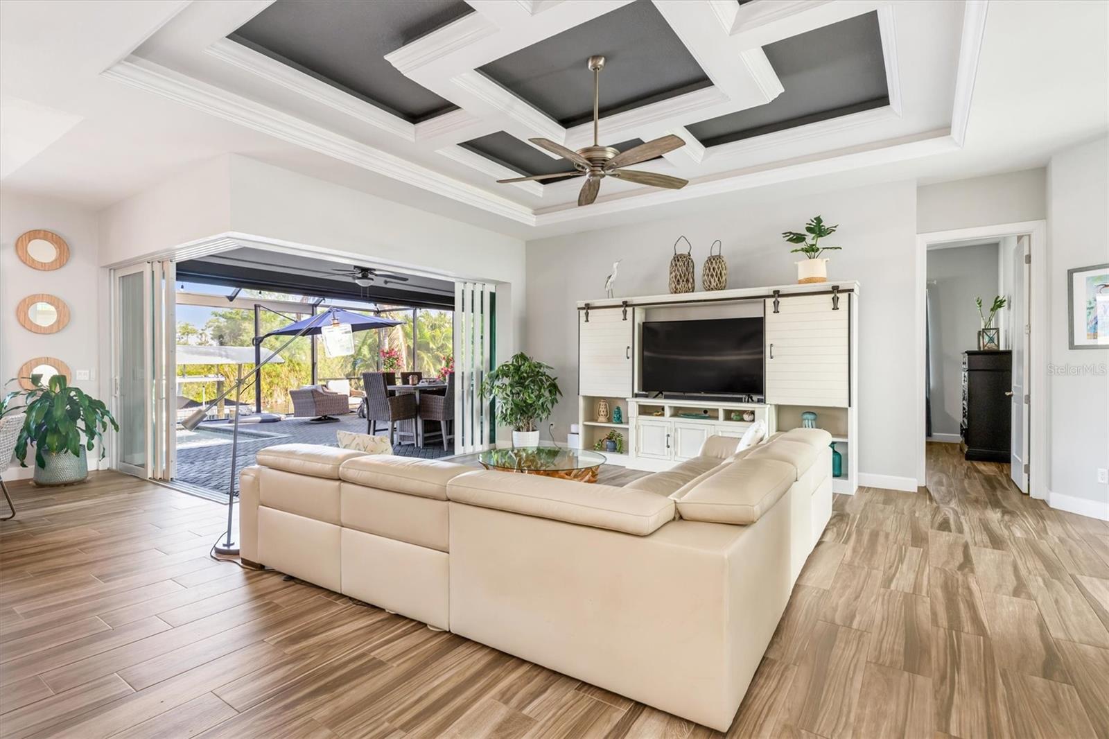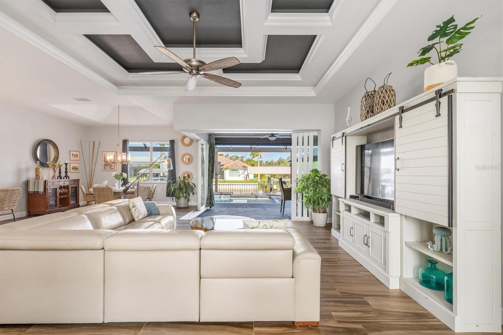 SIZE DOES MATTER! Get ready to fall in love with this amazing 2,443 SF waterfront home in the highly sought-after South Gulf Cove boating community, featuring 3 large bedrooms, 2 full bathrooms and office. A metal roof, Bahama shutters and automatic roll down shutters will give you convenience and peace of mind year-round. The kitchen is equipped with quartz countertops, double-stack cabinetry, a huge hidden pantry, and SS appliances. The open concept living area features a beautiful, coffered ceiling and zero-degree pocket sliders. The spacious owner's suite has direct lanai access and split walk-in closets. The master bath features a spa-like wet room design with a 3-head shower and freestanding tub enclosed behind sleek glass barn doors. Each of the large guest rooms has a walk-in closet. The full guest bath also acts as a convenient pool bath when entertaining. The laundry room is thoughtfully designed with a storage closet, utility sink, and additional cabinetry. The heated saltwater pool is surrounded by a generous paver lanai. There is a built-in outdoor kitchen and plenty of room for seating. Beyond the lanai is an irrigated and fully fenced St Augustine back yard that leads to the canal. There you will find a 30' dock, a 10K LB boat lift with canopy, newly wrapped pilings, an 80 ft. concrete seawall, and electric and water lines. The oversized three-car garage gives you plenty of space for vehicles, tools, toys, and storage. The garage also includes overhead storage, and the home is equipped with 50-amp power for generators. Beautifully maintained and full of sunny Florida charm, this move-in-ready home is also close to pristine beaches, world-class fishing, championship golf courses, wonderful restaurants, and great shopping. This beauty won't last long--call me today for a private showing!