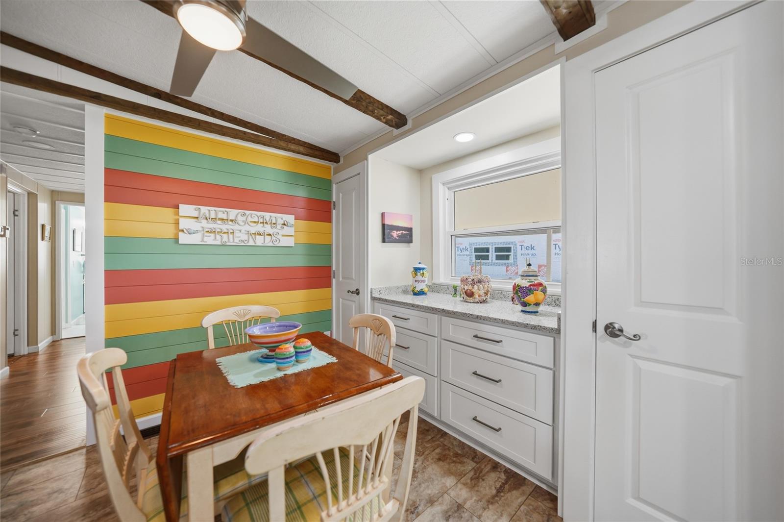 WATERFRONT LIVING AT ITS FINEST!This uniqueTURNKEY FURNISHEDhome is ideally situated at the end of a quiet cul-de-sac on the Myakka River.Extensive upgrades have been completed: Roof, Carport, Shed 2023, HVAC 2020,new water lines, subflooring, tie-downs, ductwork, an updated electrical panel,Bahama Shutters on all windows, metal roll-down shutters on Florida room windows,and an accordion shutter on lanai sliding door. Public water/sewer. This home features vaulted ceilings with real wood beams in the living, dining, and breakfast areas, creating a warm and inviting coastal feel.The kitchen hasbeen completely remodeled in 2020with high-quality white shaker cabinetry, including a spacious 36" pantry with 4 pull-out shelving, a cabinet for storing larger countertop appliances, and ample storage throughout. Granite countertops extend to a large (approx) 4' x 8' peninsula with seating for four and additional storage. Additional highlights include a deep double stainless sink with instant hot water, stainless steel appliances, andrecessed lighting that create a bright, inviting space.The dining room features a dry bar with matching kitchen cabinetry and granite countertops. A painted shiplap accent wall in the breakfast room adds a pop of color with dual closets providing additional storage.Primary bedroom remodeled in 2023; features new insulation, ceiling, waterproof vinyl plank flooring, fresh paint, ceiling fan, and two walls of windows for natural light. Remodeledspa-like primary bath with a custom tiled walk-in shower with bench and niche, dual granite vanity that complements thetile flooring,and an extra-largewalk-in closet.The guest bedroom features anupdated ceiling, a new fan, and fresh paint. The guest bath was updated in 2020 with a marble-top vanity and waterproof vinyl flooring.Designed for gatherings, this home offers multiple seating areas for relaxing or entertaining, with space for dining, game nights, or watching the big game. The enclosed lanai with Tiki barprovides the perfect setup for outdoor entertaining and barbecues.A long, extended driveway,professionally sealed and coated,offers ample parking. Exceptional privacy with lush natural vegetation and no rear neighbors across the canal.Enjoy peaceful waterfront views of the river, where dolphins, manatees, and a variety of birds are frequent visitors, along with stunning Southwest Floridasunset skies each evening. The Myakka River flows into Charlotte Harbor, which opens to the Gulf of Mexico. Approximately a 1-hour boat ride from Harbor Cove to the Gulf, depending on speed and conditions.Experience the best of Florida's retirement lifestyle; Harbor Cove, a sought-after 55+ waterfront community along the scenic Myakka River, filled with resort-style amenities. NO LOT rent. Monthly HOA fee is $175 per month; includes lawn care and access to Resort-style amenities with two sparkling heated pools, a relaxing spa, a well-equipped fitness center, a clubhouse overlooking the stunning 90-slip Marina, shuffleboard, horseshoes, pickleball, tennis, and bocce courts. Socialize and stay active with dances, parties, water aerobics, fitness classes, art classes, woodworking, golf cart parades, bingo, dances, and more. Boat clubs, a craft room, picnics on the patio, golf clubs, and much more. Conveniently located within minutes of Downtown Wellen Park and a short drive to beautiful Gulf Beaches.