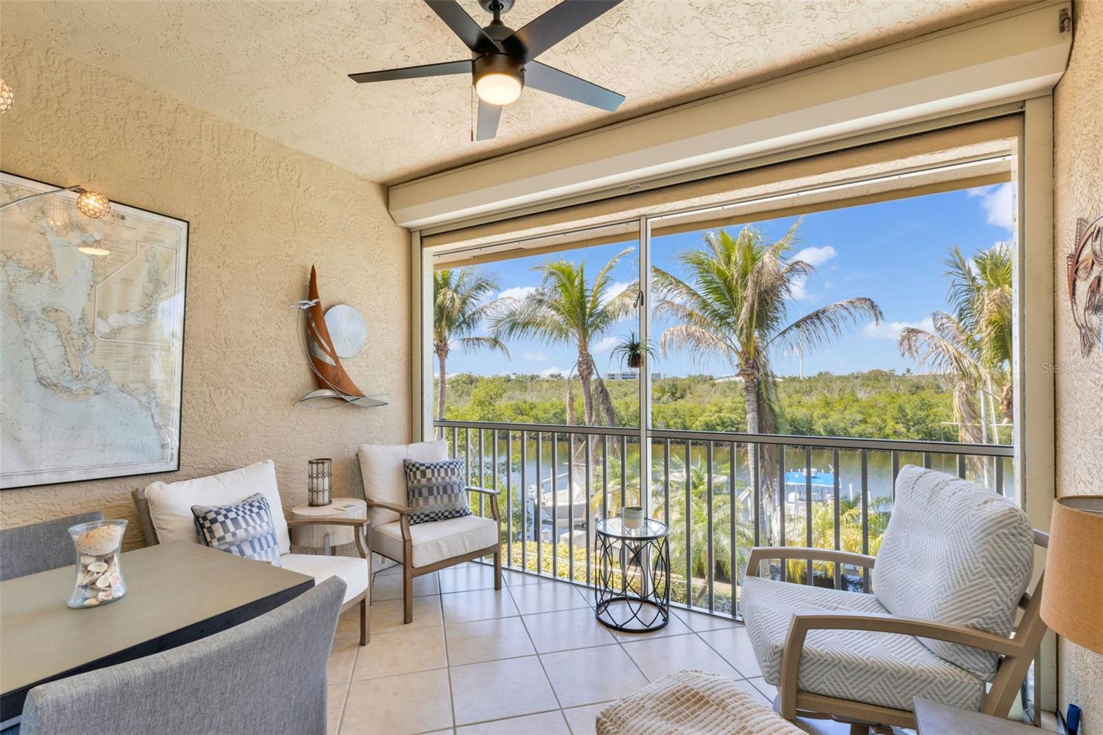 JUST REDUCED - EXCEPTIONAL VALUE! Waterfront condo with garage and boat lift in Punta Gorda Isles with low HOA fees! If you've been dreaming about having your boat right outside your door, this one makes it easy! This 2nd-floor, 2-bedroom, 2-bath + flex room condo includes a deeded dock with a 10,000 lb lift, giving you access to Charlotte Harbor through Buckley's Pass. Whether it's a morning cruise or a sunset ride, you're ready to go. Inside, an open layout, freshly painted neutral tones, and natural light create a comfortable, inviting feel. Granite countertops, solid wood cabinetry, stainless steel appliances, and a breakfast bar make the kitchen both functional and easy to enjoy. Just beyond, the dining area connects to the family room, where a coffered ceiling adds a touch of character. A split-bedroom design gives everyone their own space, while a flexible bonus room, currently set up as a third bedroom, works well for guests, a home office, or whatever you need. In the primary suite, you'll find a tray ceiling with crown detail, dual sinks, a walk-in tiled shower, and two closets, one built-in and one walk-in. The guest bedroom and bath are well-sized and thoughtfully placed. Open the sliding doors to the lanai and take in the peaceful water views. Western exposure brings in beautiful sunsets, and with a nature preserve across the water, the setting stays peaceful and private. Hurricane protection is already in place with accordion shutters and an electric shutter on the lanai, and a one-car garage adds extra convenience. HVAC & Hot Water Heater were replaced in 2017. The complex also features a new roof (2025), and the pool was resurfaced in 2026. This is a SMOKE-FREE community that allows one small pet. Set within Punta Gorda Isles, known for its winding canals and easy boating access, you'll enjoy that laid-back coastal feel the area is loved for. Spend the day on the water, then head just minutes away to waterfront dining, Fishermen's Village, local shops, or the weekly farmer's market. Easy access to I-75 makes getting to Sarasota or Fort Myers simple when you need it. Morning coffee on the lanai, and sunsets that never get old, this is the kind of place that makes it feel like you're on vacation every day!