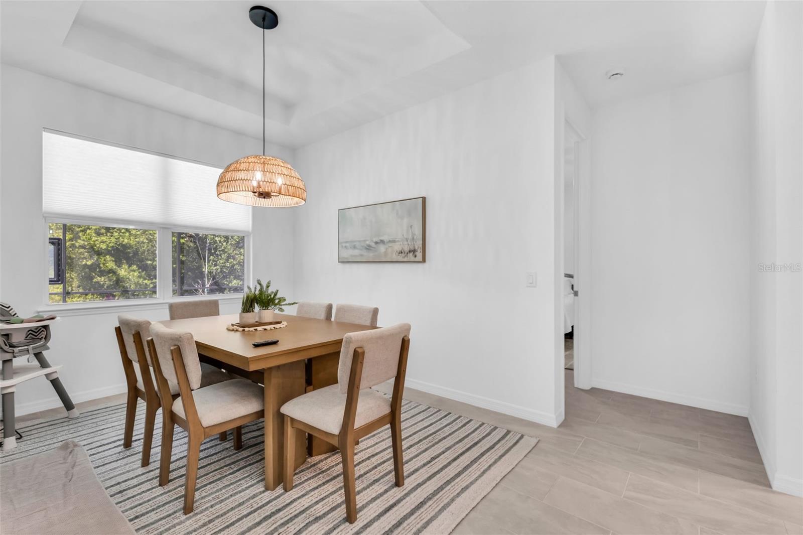 This stunning 4-bedroom, 3-bathroom pool home is situated in the highly desirable Deep Creek neighborhood. Constructed in 2024, the home features a modern open floor plan that is both functional and inviting. Upon entering, you are welcomed by high ceilings and tile flooring throughout, which enhance the spacious feel of the home. The carefully selected color palette creates a bright and inviting atmosphere. The kitchen is designed to be the heart of the home, seamlessly flowing into the family room and dining area, making it ideal for entertaining. Modern cabinetry, stainless-steel appliances, a large pantry, and a substantial island provide both style and practicality, perfect for family meals or gatherings with friends. The primary suite offers ample space. It features two walk-in closets and a master bathroom with dual sinks and a linen closet for added convenience. The split floor plan ensures privacy for guests or family members, while the additional spacious bedrooms can easily accommodate guests, serve as a home office, or meet the needs of a growing family. Hurricane impact windows and doors provide peace of mind, and the property is not located in a flood zone, offering additional security and comfort. The exterior of the home is perfect for entertaining, with a large lanai and a private spa. This area is ideal for socializing, relaxing, or simply enjoying your favorite beverage while lounging beside the heated, sparkling saltwater pool. The backyard offers plenty of space to play with your fur babies or barbecue and entertain family and friends.The three-car garage features epoxy flooring and provides ample space for cars, recreational equipment, storage, and tools. The driveway is finished with pavers and offers plenty of parking space for multiple vehicles. Residents can enjoy convenient access to local attractions such as golf courses, pickleball courts, beaches, restaurants, shopping centers, Fisherman's Village, and the Sun Seekers Resort.