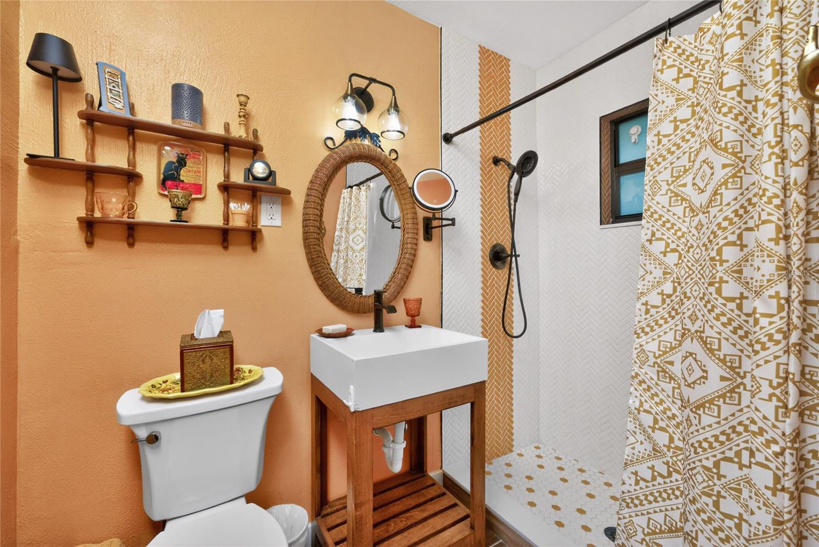 This charming cottage is nestled in the alluring Historic District of Punta Gorda, which offers the kind of walkable, coastal lifestyle that defines Southwest Florida living. Just a short stroll or bike ride takes you to downtown or Fishermans village, where you will discover great local restaurants, boutiques, vibrant farmers markets, and the scenic waterfront at Gilchrist Park. Here you can enjoy pickleball, tennis, fishing, playgrounds, and sunset walks along the harborfront esplanade. From the moment you arrive you will be embraced by the pleasing mature landscape that envelopes the home and the thoughtfully designed eco-friendly landscape, complete with decorative rock and curbing for low-maintenance appeal. Located on an oversized corner lot with nearly a quarter acre of land, there is plenty of space to create your outdoor sanctuary. This block home boasts a freshly painted exterior, newer impact glass windows, new entry doors, A/C, water heater, new electrical & complete pex repipe throughout ( 2023- including main line to meter). Inside, the home feels warm and cohesive with handsome wood-look plank tile flooring throughout. Abundant windows help fill the space with natural light, enhancing the bright, airy feel in every room. The kitchen is both functional and inviting, featuring stone countertops and complimentary backsplash, newer appliances, white cabinetry, and a window overlooking the private backyard. A breakfast bar opens seamlessly to the dining area, creating an easy flow for everyday living or casual entertaining. The primary suite features a stylish barn door leading to an updated ensuite bath with a freestanding vanity and a walk-in shower finished with striking herringbone tile. The second bedroom is filled with natural light from an expansive window overlooking the majestic tree in the front yard, while the guest bathroom continues the home's updated aesthetic with its own freestanding vanity and beautifully tiled tub. Out back, the fenced yard provides a private retreat with plenty of room to relax or entertain. The carport has been screened-in and transformed into a comfortable sitting area, offering flexible living space and can be converted back to a car port. An expansive storage room provides great storage and space for the tinkerer, and the utility area is conveniently located just beyond. A transferable group insurance flood policy is available through the end of 2027, with coverage of $87,200.