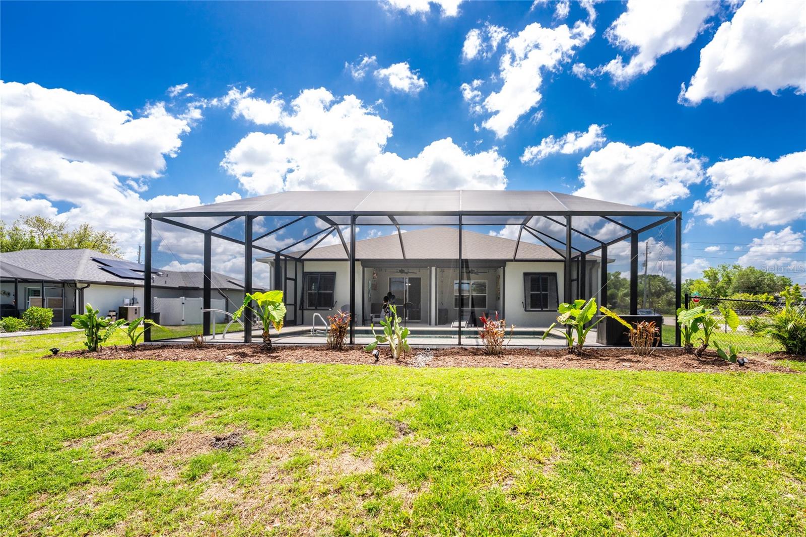 Live the Florida dream in this nearly new 4 bedroom 2 bath home built by Maronda homes in 2021. This home was definitely built for Florida living. Relax or entertain in your heated pool and spa completed in 2023. Enjoy peace of mind knowing that you have Bahama hurricane shutters for protection and a generator transfer switch already installed, as well as the balance of the builder's warranty. There is even space for your furry friend, as the backyard includes a fenced dog run. Conveniently located at the quieter end of Deep Creek Blvd, and minutes away from golf, dining, shopping, schools and all that the area has to offer. Looking for move in ready? This is it! Even the beautiful furnishings are available under a separate contract. Priced to sell! Call Donna Huxstep 941-815-7179, for your private showing.