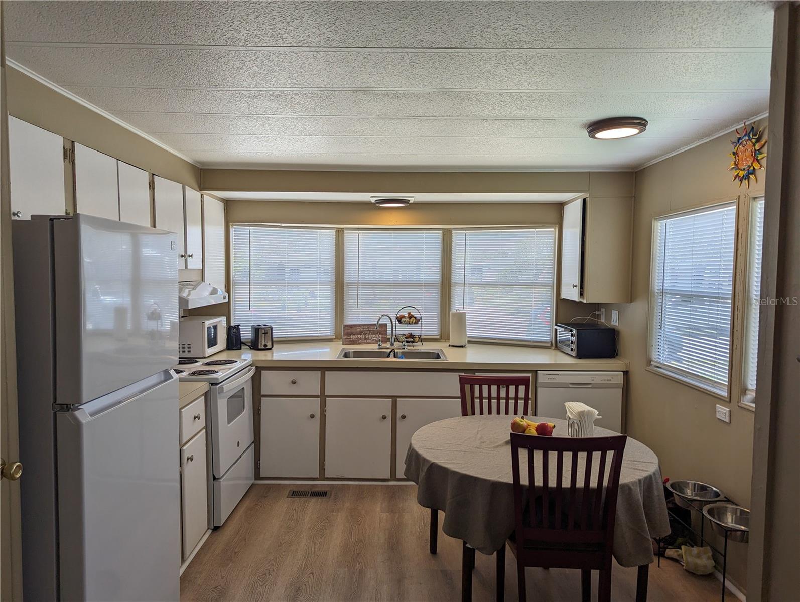 Completely TURN KEY mobile home. Looking for a new home? Vacation home? Look no further. Mobile home that withstood Hurricane Ian with very little damage. You own the land!! Siding will be done by the end of May. 3 brand new windows where the couch is sitting. Roof was sealed and has new vents. Roof did not leak during Ian, only broken windows. New subflooring and flooring in kitchen. AC 2016 and currently has a maintenance plan in place. New lights, ceiling fans and paint. All new electrical outlet and light switches. New blinds. New fire detectors. New stove. New refrigerator. Complete turn key except for beds and person items. Carport and outside lanai were taken by Ian, but still a great place to sit and relax. Large fenced in side and back yard. Washer and dryer off the carport in the shed. 2 sets of sliders with new tint. Laminate flooring. You own the land in Holiday Estates. Optional $50 year HOA allows access to the clubhouse and to the boat ramp with saltwater access.
