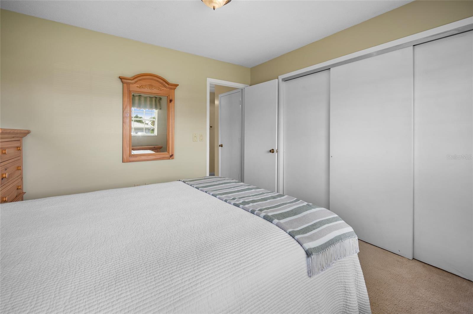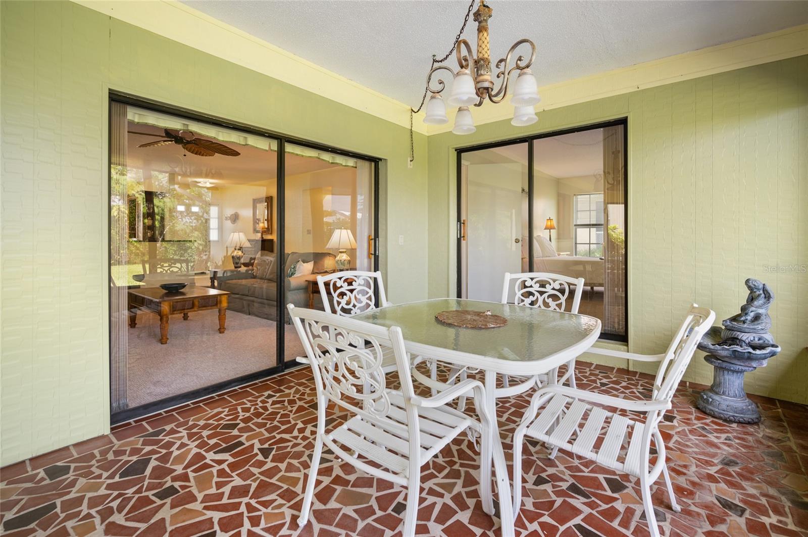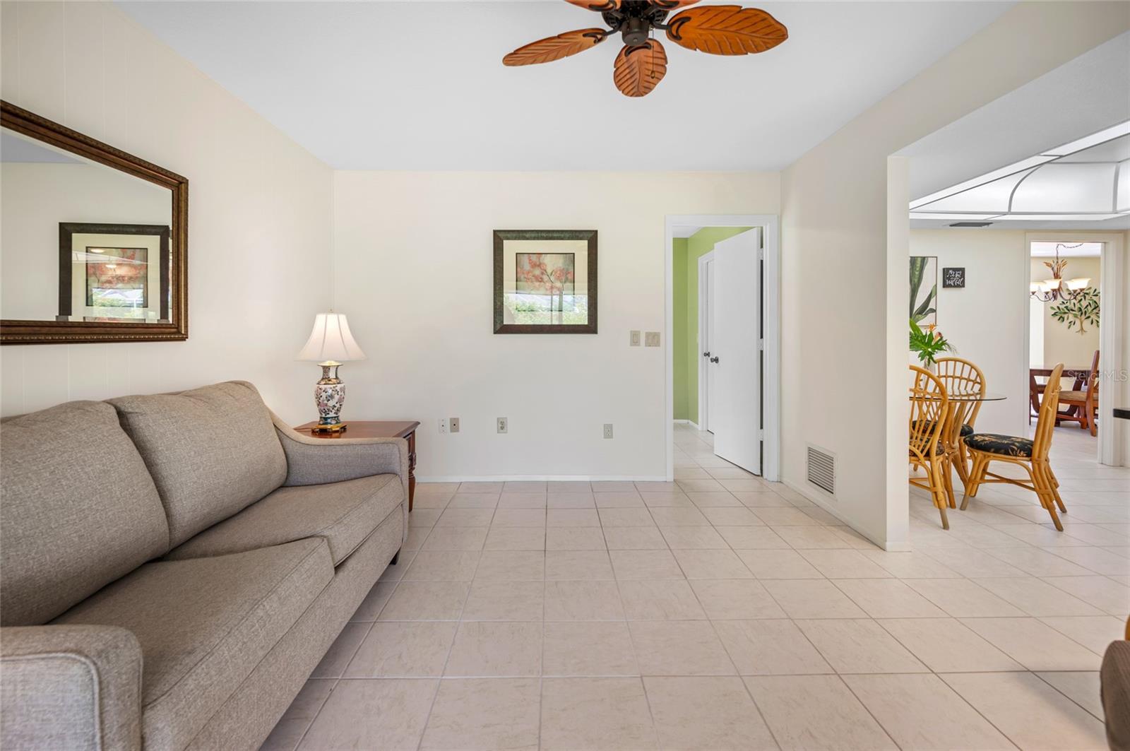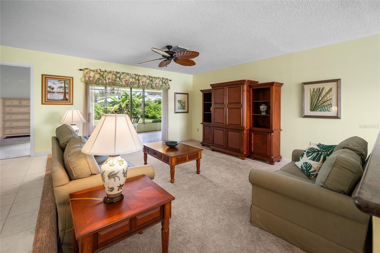Invite your friends and family inside to your spacious living room for plenty of games and gatherings. Enjoy the seamless connection between indoor and outdoor living with POCKETING SLIDING GLASS DOORS that lead to your back lanai and creating natural sunlight to brighten your main space! The dining room is conveniently close to the entertainment area, so you won't miss a moment of the fun. Accommodating your guests is a breeze in the two charming guest bedrooms of your new home. Each guest room features BUILT-IN SHELVING in the closets, offering generous storage space to keep everything neatly organized. The vibrant guest bath adds a splash of color and a welcoming touch. Unwind from the bustle of life in your serene primary bedroom, where you can enjoy your own private retreat. The spacious room includes an EN-SUITE BATHROOM, a LARGE WALK-IN CLOSET for all your necessities, and more pocketing sliding glass doors that open directly onto your lanai!