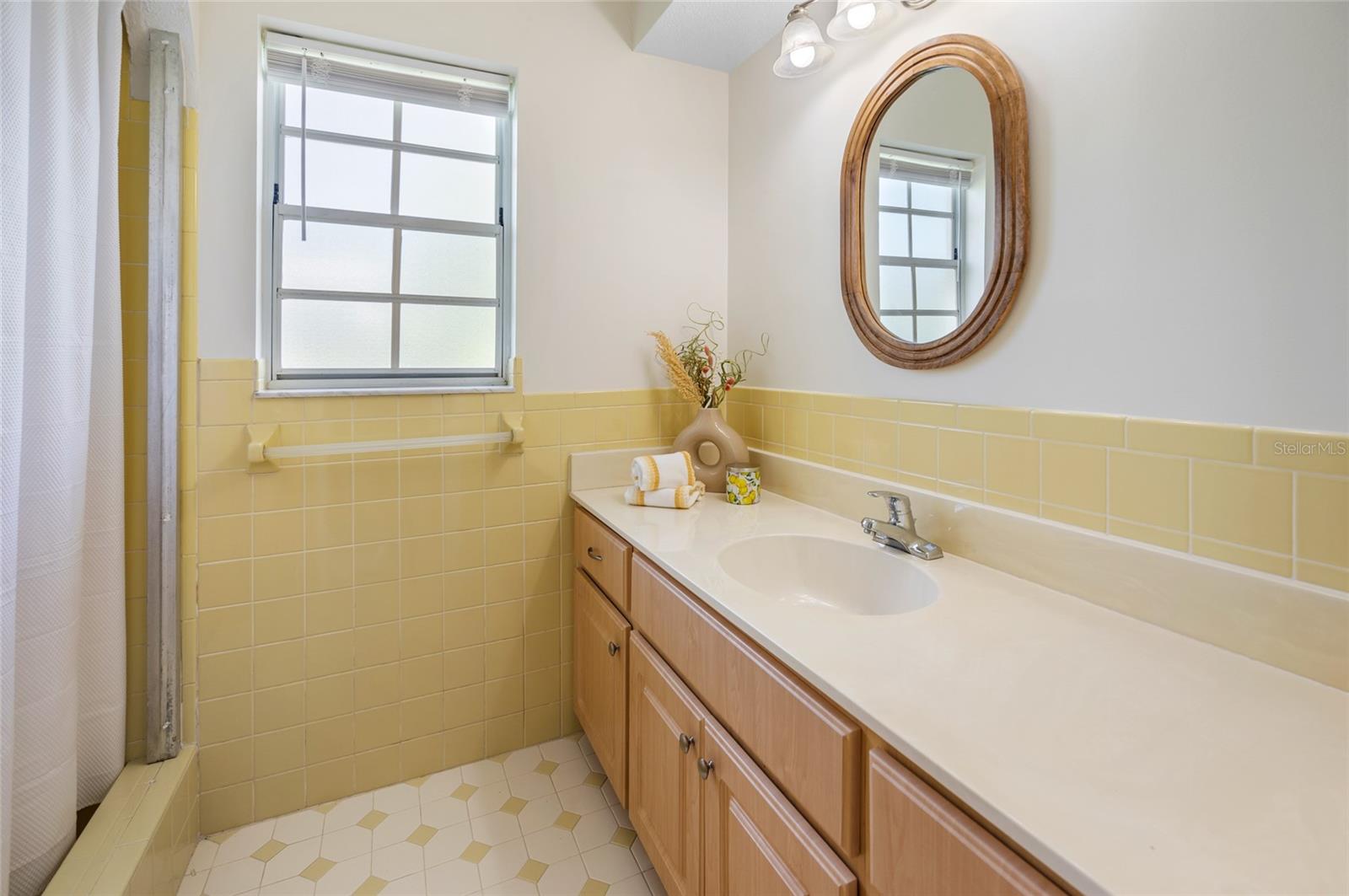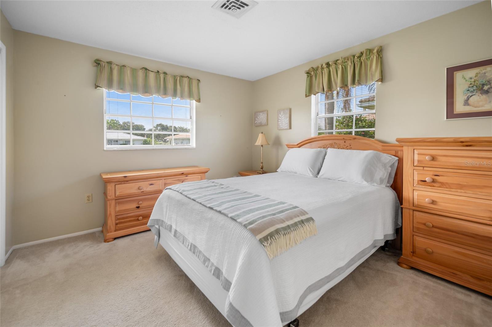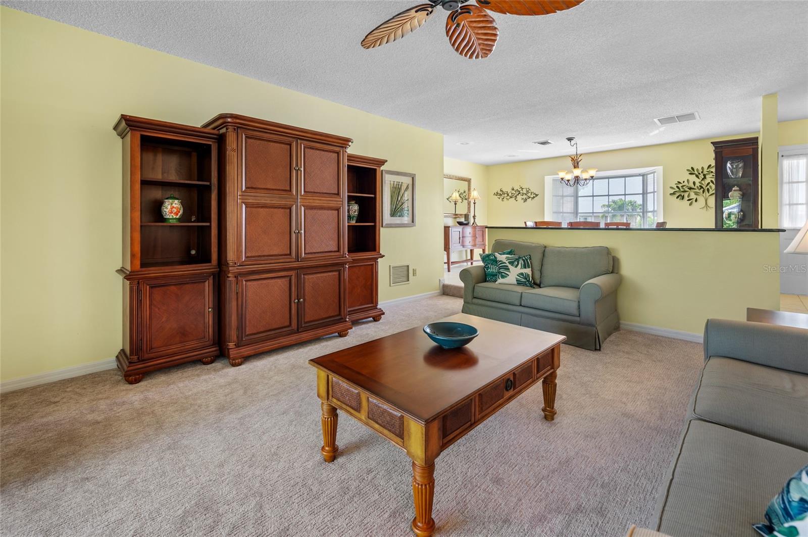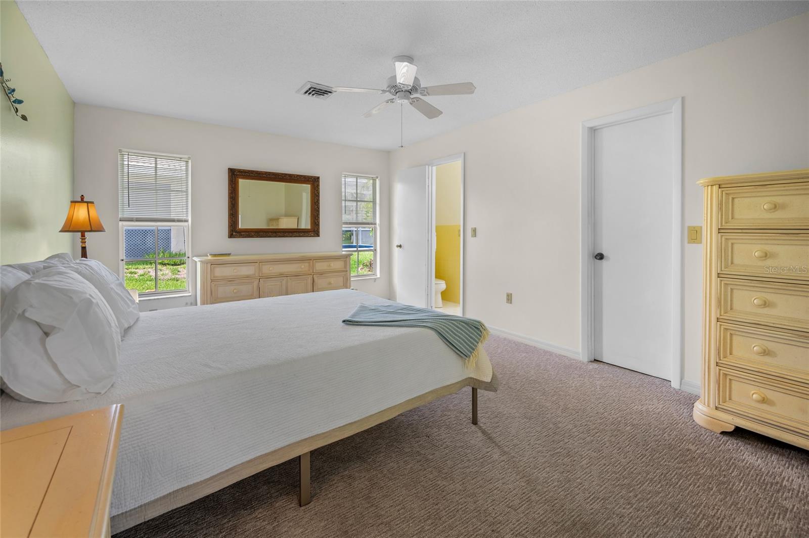 Invite your friends and family inside to your spacious living room for plenty of games and gatherings. Enjoy the seamless connection between indoor and outdoor living with POCKETING SLIDING GLASS DOORS that lead to your back lanai and creating natural sunlight to brighten your main space! The dining room is conveniently close to the entertainment area, so you won't miss a moment of the fun. Accommodating your guests is a breeze in the two charming guest bedrooms of your new home. Each guest room features BUILT-IN SHELVING in the closets, offering generous storage space to keep everything neatly organized. The vibrant guest bath adds a splash of color and a welcoming touch. Unwind from the bustle of life in your serene primary bedroom, where you can enjoy your own private retreat. The spacious room includes an EN-SUITE BATHROOM, a LARGE WALK-IN CLOSET for all your necessities, and more pocketing sliding glass doors that open directly onto your lanai!