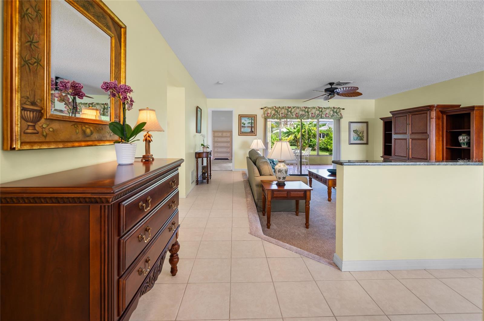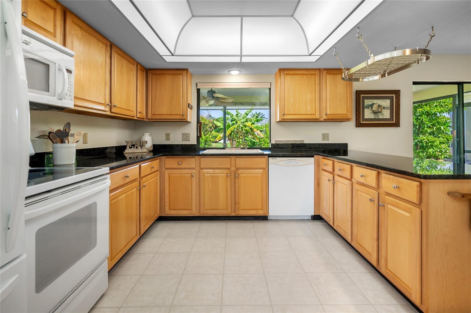 The chef of the family will delight in crafting homemade meals in your kitchen with GRANITE COUNTERTOPS, AMPLE CABINET SPACE, and a beautiful view of your back yard and lanai as you cook! Serve your guests in the inviting family room, where the entertainment seamlessly continues. Manage your chores easier with a LAUNDRY ROOM, complemented by a HALF BATH allowing for easier access to the facilities from any side of your home.