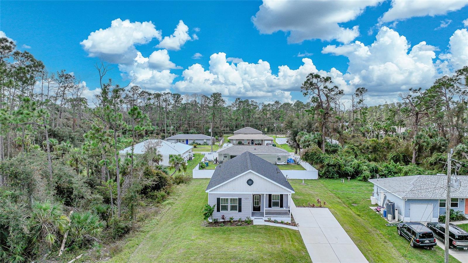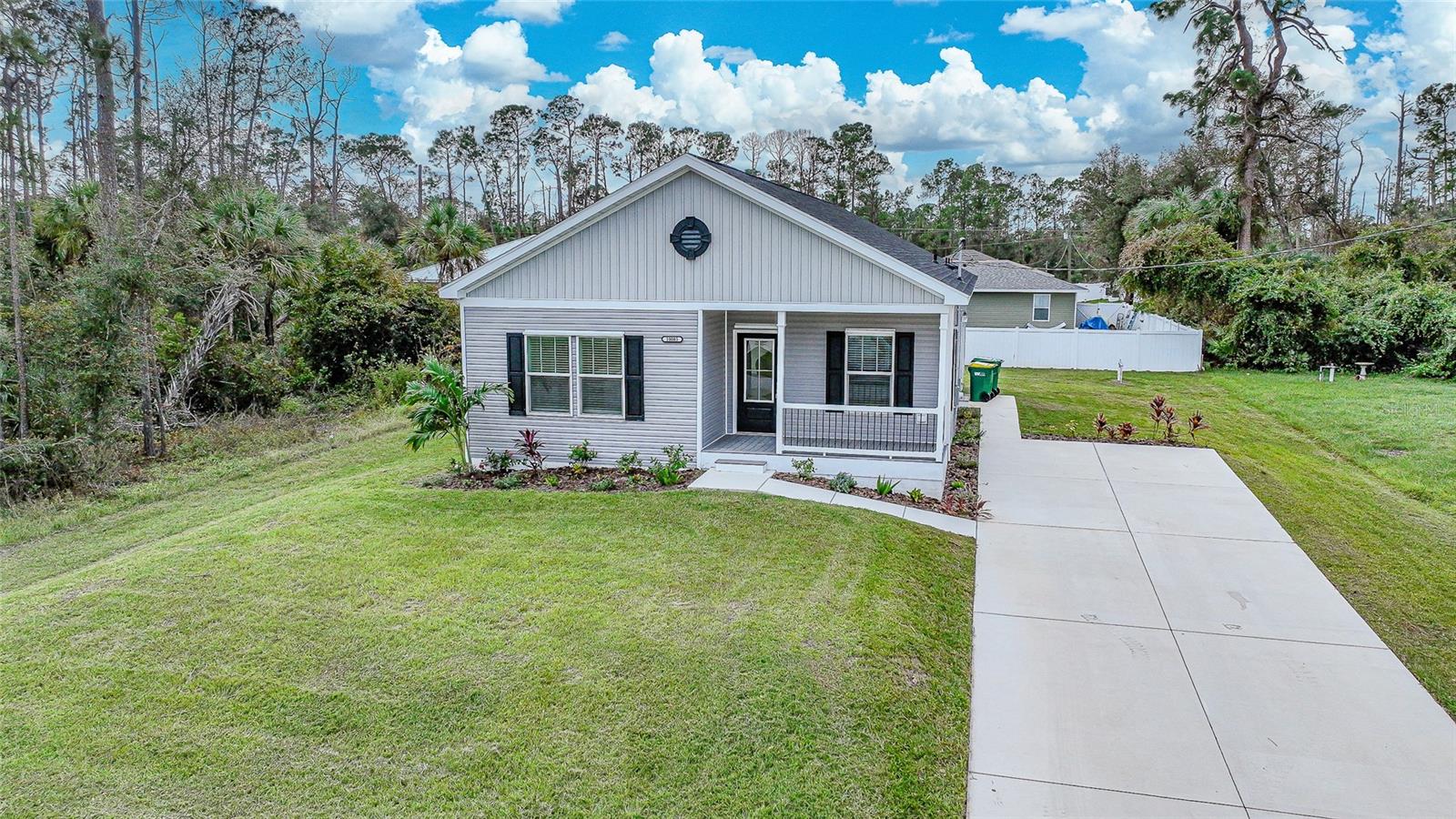 SURVIVED HURRICANE DEBBIE, HELENE AND MILTON with barely a scratch. Cute as a button!!! This brand new home not in flood zone and comes with a home warranty. Sit on your front porch with your coffee and enjoy nature. As you enter this home you are greeted with light, bright decor and white washed wood plank wall. The kitchen is a dream with ALL upper end stainless steel appliances, center island, butcher block counter tops and gorgeous back splash. The master bedroom is a dream as it has a large closet and a gorgeous en suite equipped with a large walk in shower with a bench and dual sinks for that extra space. Another great feature of this home is the luxury vinyl through out that brings a rich warm feeling to this home. Laundry is not a problem in this home as it has its own laundry/ mudroom with bench and coat rack for ample storage. Also included in this gorgeous home is an irrigation system to help keep the lawn lush and green and storm panels for that added protection. The location of this home is perfect too. It is close to route 41 and I-75 for easy commuting. There are restaurants, shopping, golf courses and beaches near by and this home is also not far from the Rays and Braves spring training complex. You can easily travel down to Punta Gorda's cute down town or drive 30 minutes to beautiful Boca Grande. Make this cute as a button home yours today. It truly is a gem. Be sure to see the 3D tour that is attached to this listing.