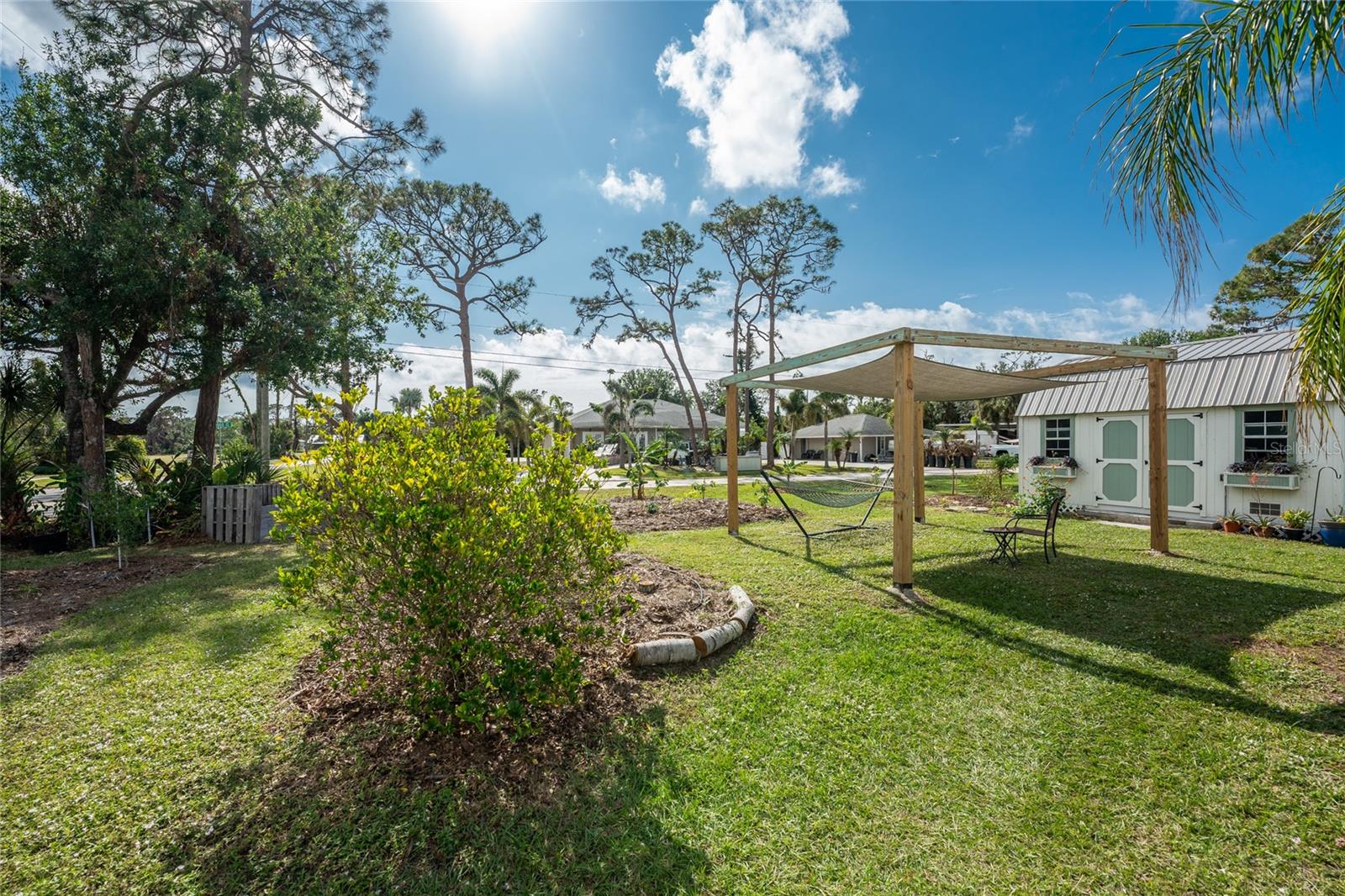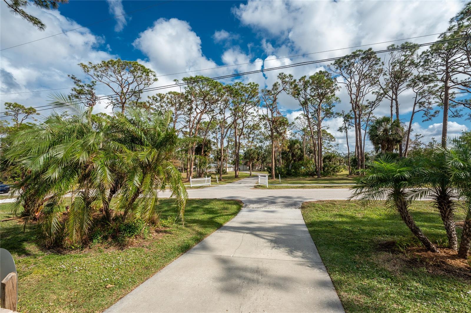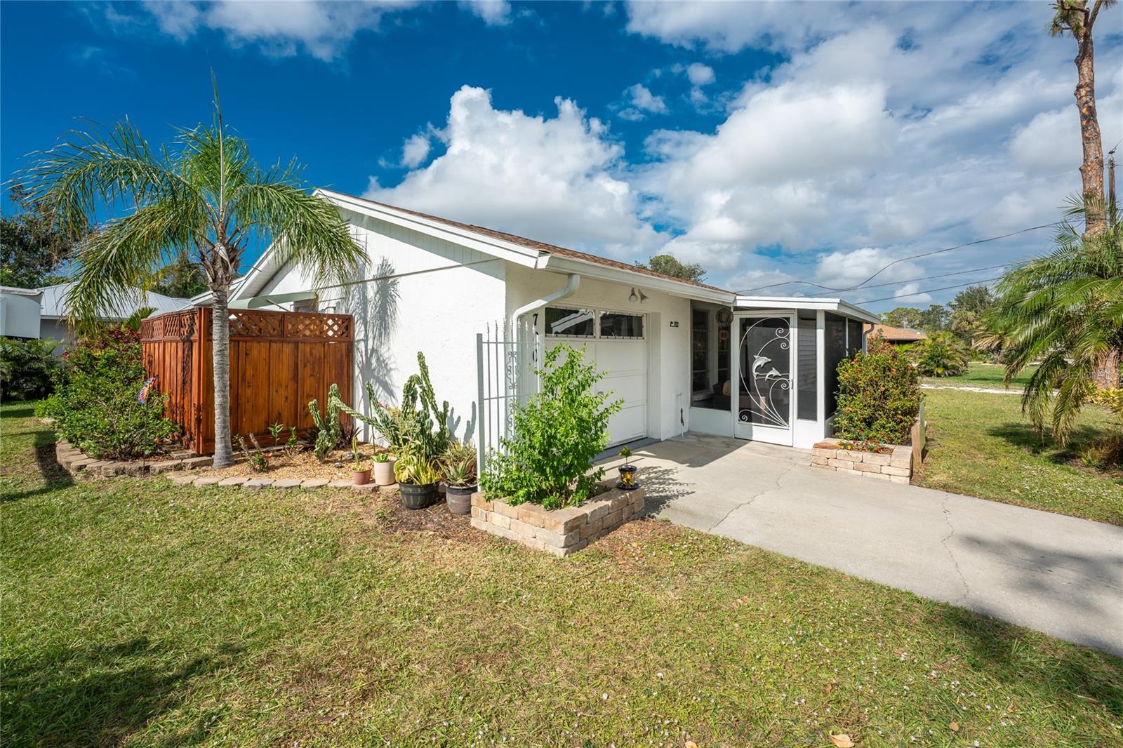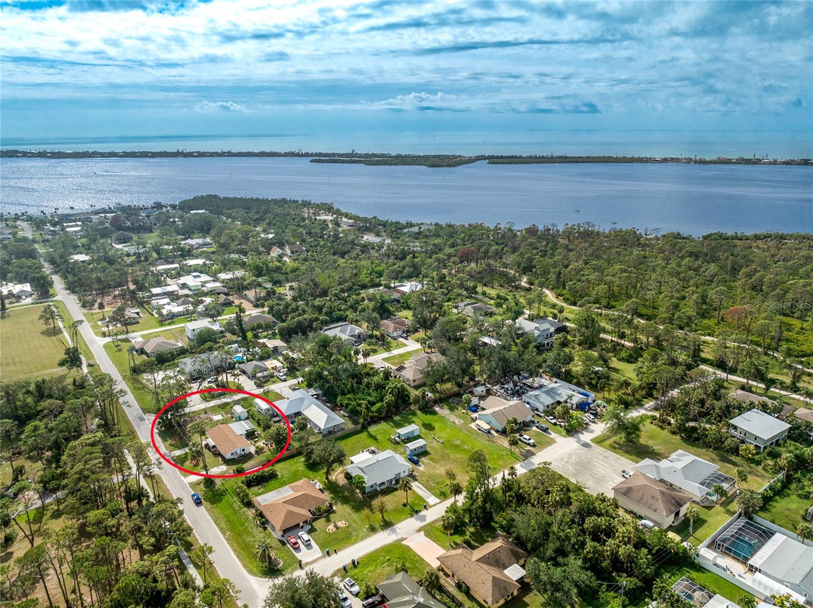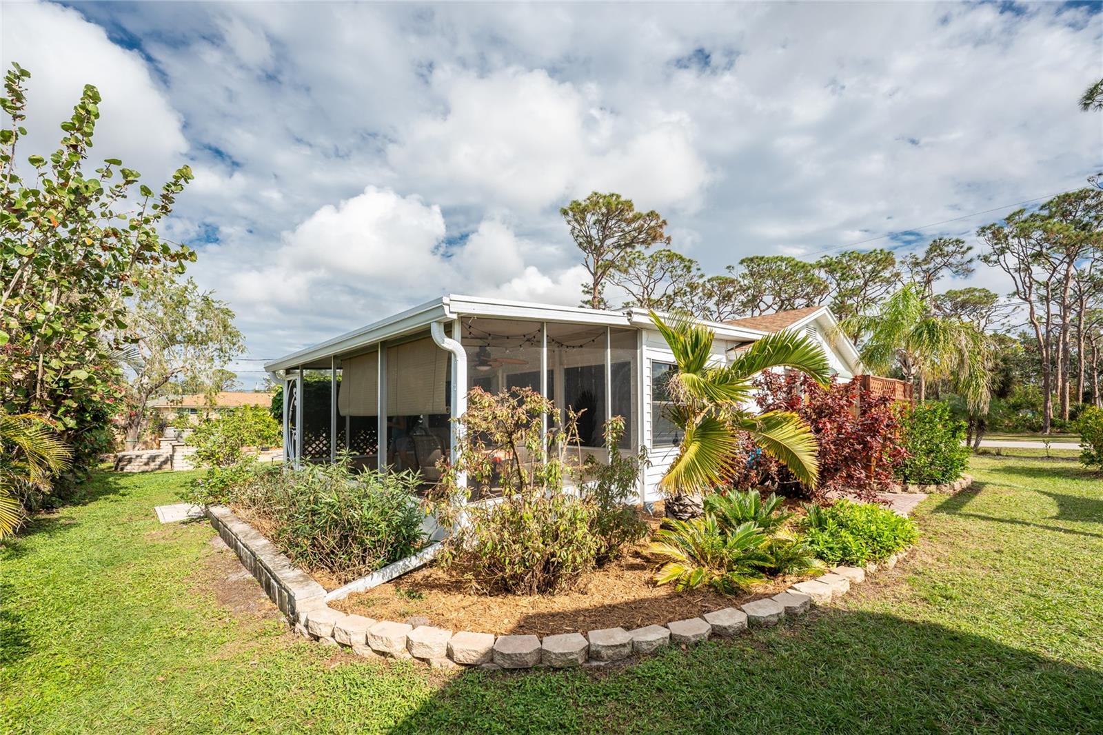 TROPICAL OASIS! Nature lover's paradise, in a quiet, coveted neighborhood neartown. Charming 3-bedroom/2 full-baths, fully renovated and well built ranch style block home!Peace-of-mind Flood Zone X, the highest and safest zone with a very low risk of flooding, and no mandatory flood insurance is required. From the front screened porch, enjoy the sunrise and a peaceful view of wooded acreage across the street. Many recentrenovations include high quality luxury vinyl tile flooring, ceramic tiled lanais and baths, a beautifulkitchen with solid wood cherry cabinets, stainless deluxe appliances, granite counters, andupdated bathrooms. The home feels very spacious with its large light-filled Florida Room and twolanais, front and back. Stay comfortable with ceiling fans in every room but the bathrooms! Theprimary bedroom is a welcoming retreat space, with walk-in closet, private bath, and French doorsopening out to the secluded patio with hot tub (optional), butterfly garden, deluxe fire-pit, and largelaundry line. Attached garage includes laundry area with a second kitchen sink, and optional fullinformal kitchen set-up for guests. THERE ARE TWO DRIVEWAYS TO ENTER THIS HOME, one withconvenient RV and EV electrical hookups. A variety of young fruit trees and shrubs are wateredwith a separate well-water automatic irrigation system. Over-sized lot has a large south-lawn shadestructure for a hammock and seating, looking over a delightful and creative yard. Enjoy amplestorage space in the 12' x 18' sturdy new shed with window-boxes for a cottage-feel, and a privateoutdoor shower with available propane heat for the cool days. The AC system has been equippedwith a 'soft start' unit, affording less energy to start the unit, and allowing generator use. NEWHURRICANE IMPACT WINDOWS throughout the main home, a newer roof, and many electrical,plumbing, and ductwork upgrades. Home is located near a trailhead to the beautiful Lemon BayEnvironmental Park, with miles of wooded hiking trails and a kayak launch, all within a short walk.Quaint Downtown Dearborn Street is a leisurely 1-1/2 mile bike ride away via quiet neighborhoodstreets, and features outdoor cafes, a weekly Farmers Market, and lively public events. You won'tfind a more delightful, welcoming, and updated home at this price! Some furnishings will be offeredseparately. There has been zero flooding incurred in this home from hurricanes!