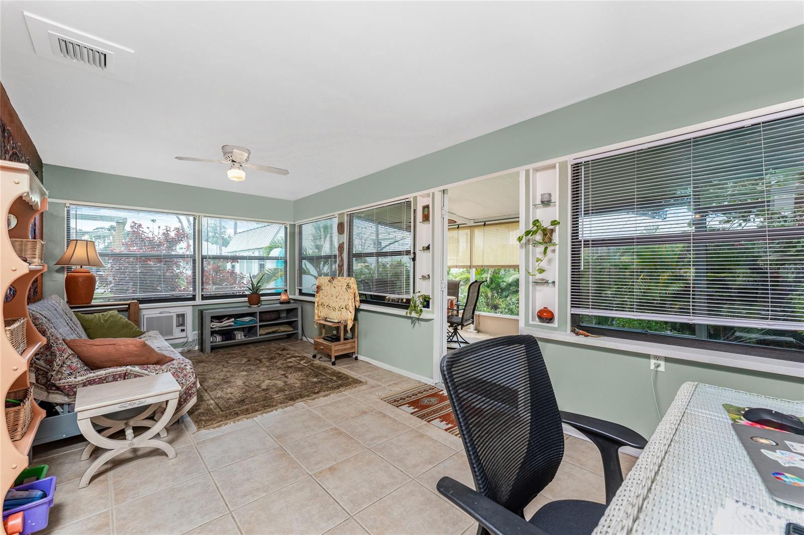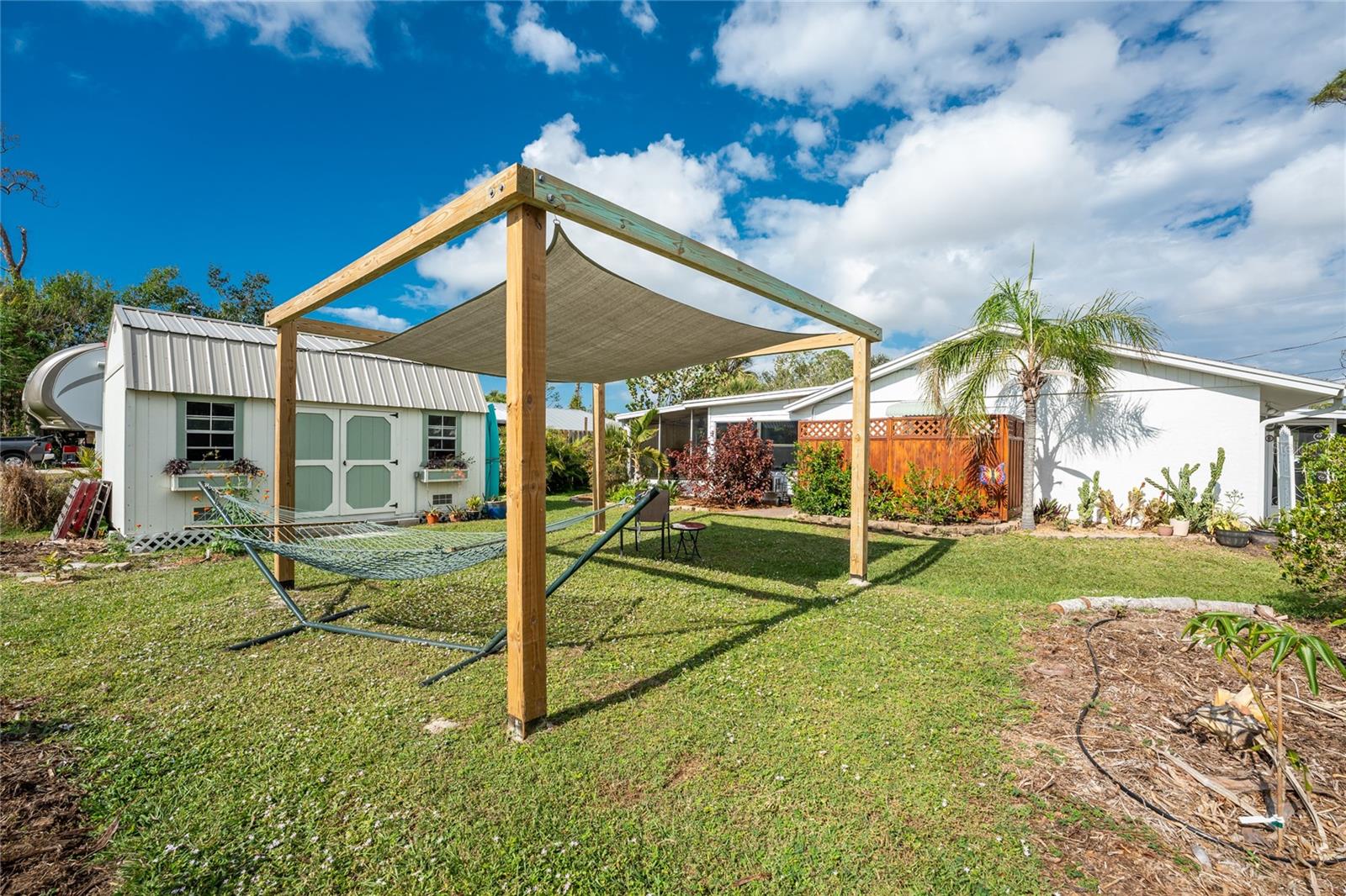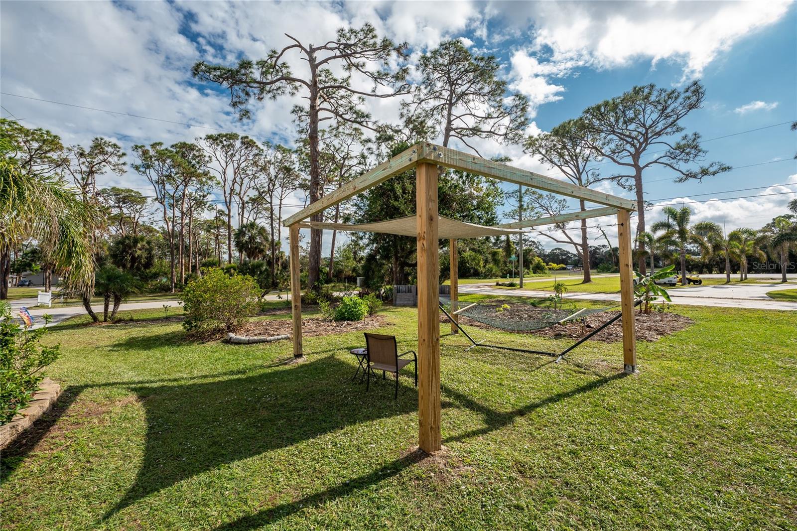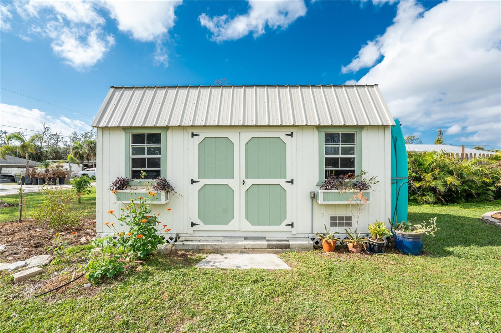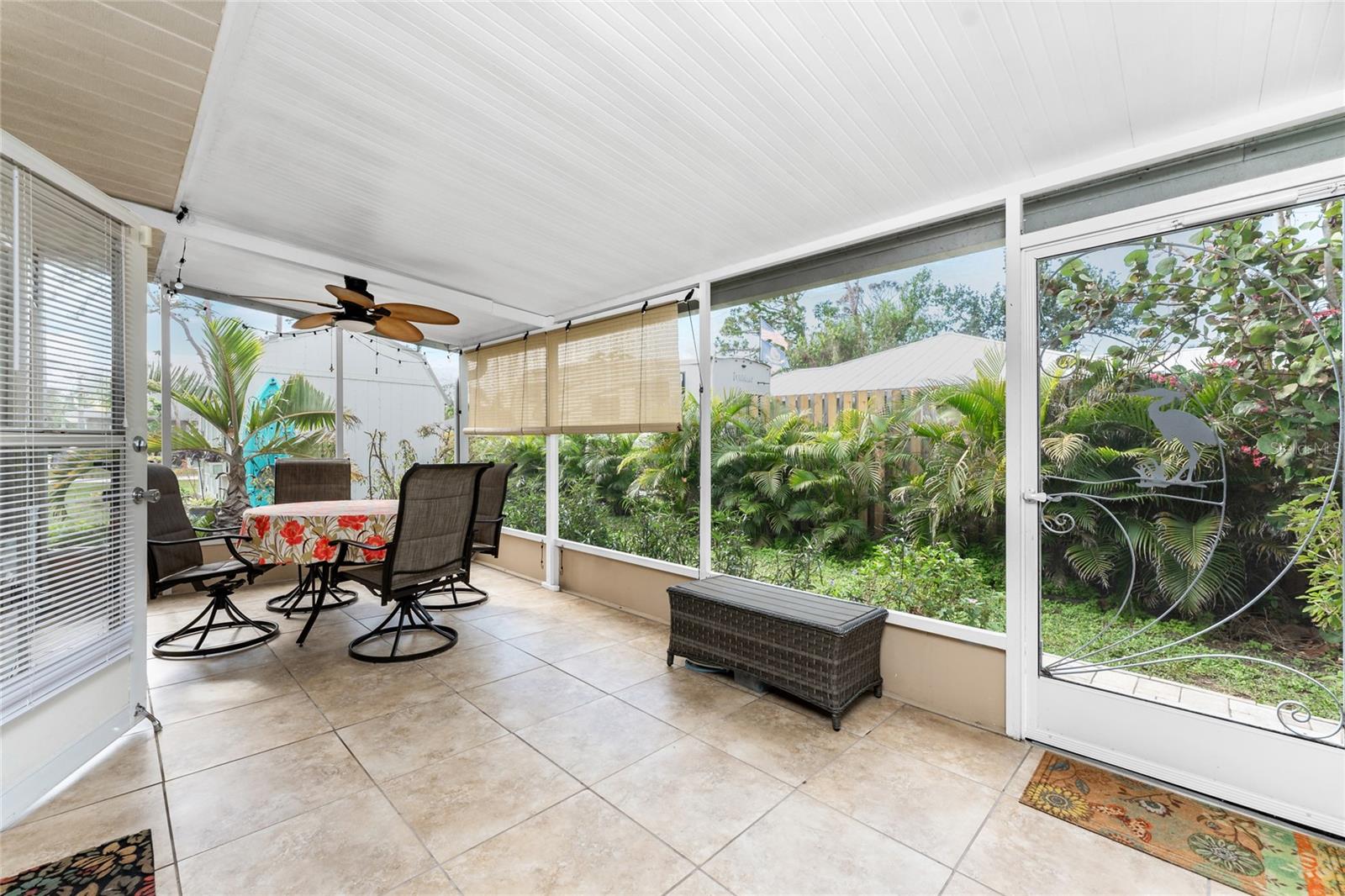TROPICAL OASIS! Nature lover's paradise, in a quiet, coveted neighborhood neartown. Charming 3-bedroom/2 full-baths, fully renovated and well built ranch style block home!Peace-of-mind Flood Zone X, the highest and safest zone with a very low risk of flooding, and no mandatory flood insurance is required. From the front screened porch, enjoy the sunrise and a peaceful view of wooded acreage across the street. Many recentrenovations include high quality luxury vinyl tile flooring, ceramic tiled lanais and baths, a beautifulkitchen with solid wood cherry cabinets, stainless deluxe appliances, granite counters, andupdated bathrooms. The home feels very spacious with its large light-filled Florida Room and twolanais, front and back. Stay comfortable with ceiling fans in every room but the bathrooms! Theprimary bedroom is a welcoming retreat space, with walk-in closet, private bath, and French doorsopening out to the secluded patio with hot tub (optional), butterfly garden, deluxe fire-pit, and largelaundry line. Attached garage includes laundry area with a second kitchen sink, and optional fullinformal kitchen set-up for guests. THERE ARE TWO DRIVEWAYS TO ENTER THIS HOME, one withconvenient RV and EV electrical hookups. A variety of young fruit trees and shrubs are wateredwith a separate well-water automatic irrigation system. Over-sized lot has a large south-lawn shadestructure for a hammock and seating, looking over a delightful and creative yard. Enjoy amplestorage space in the 12' x 18' sturdy new shed with window-boxes for a cottage-feel, and a privateoutdoor shower with available propane heat for the cool days. The AC system has been equippedwith a 'soft start' unit, affording less energy to start the unit, and allowing generator use. NEWHURRICANE IMPACT WINDOWS throughout the main home, a newer roof, and many electrical,plumbing, and ductwork upgrades. Home is located near a trailhead to the beautiful Lemon BayEnvironmental Park, with miles of wooded hiking trails and a kayak launch, all within a short walk.Quaint Downtown Dearborn Street is a leisurely 1-1/2 mile bike ride away via quiet neighborhoodstreets, and features outdoor cafes, a weekly Farmers Market, and lively public events. You won'tfind a more delightful, welcoming, and updated home at this price! Some furnishings will be offeredseparately. There has been zero flooding incurred in this home from hurricanes!