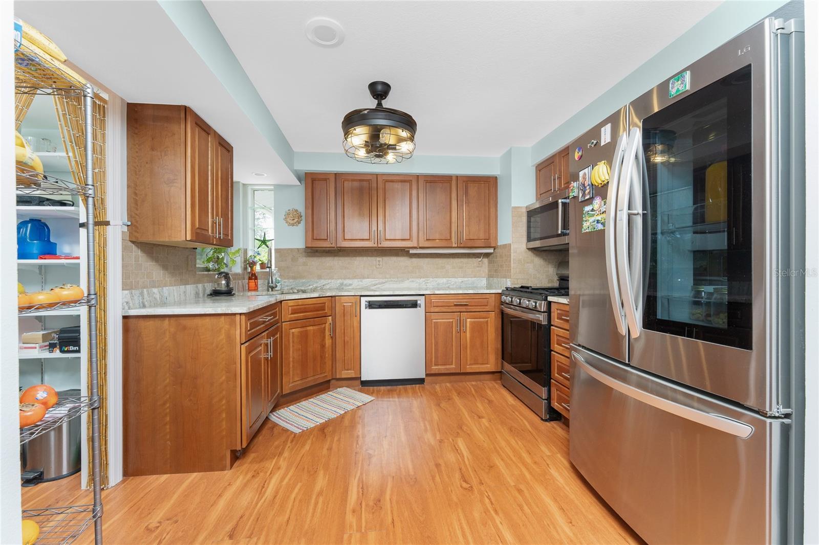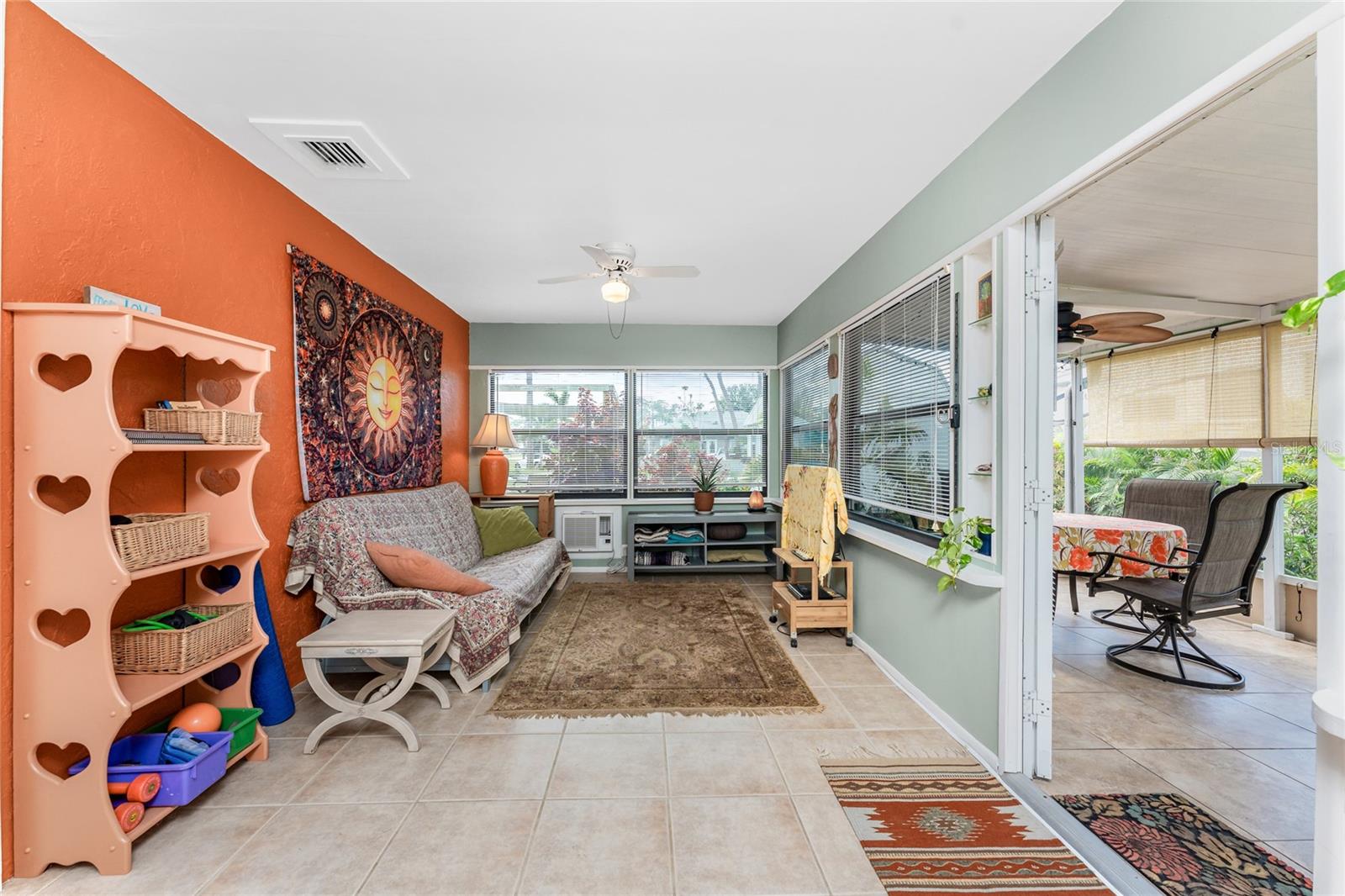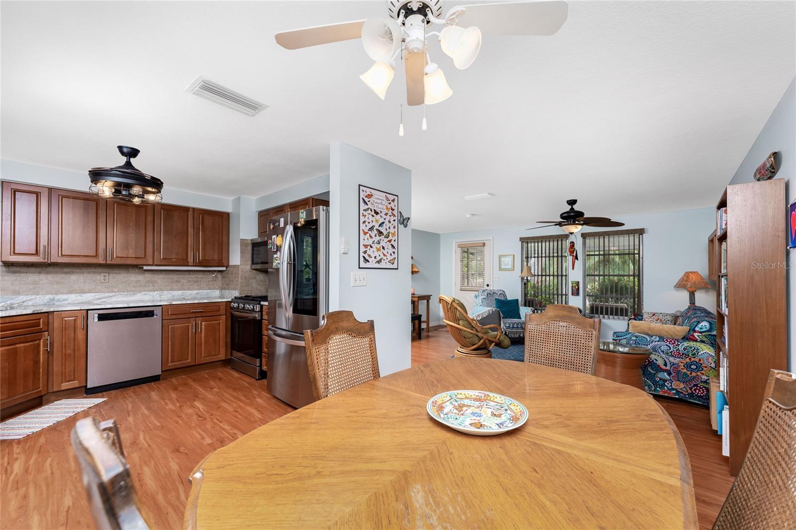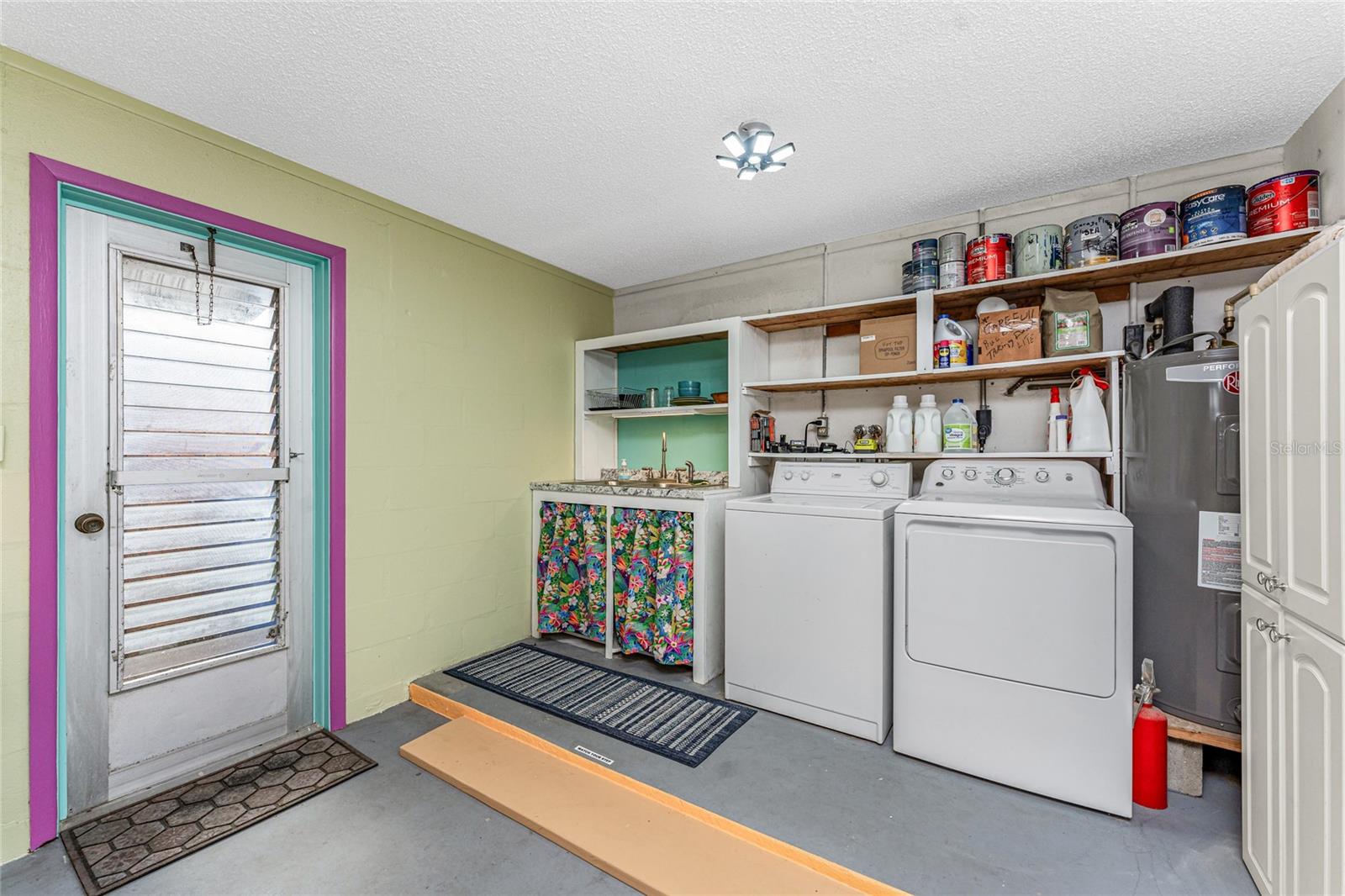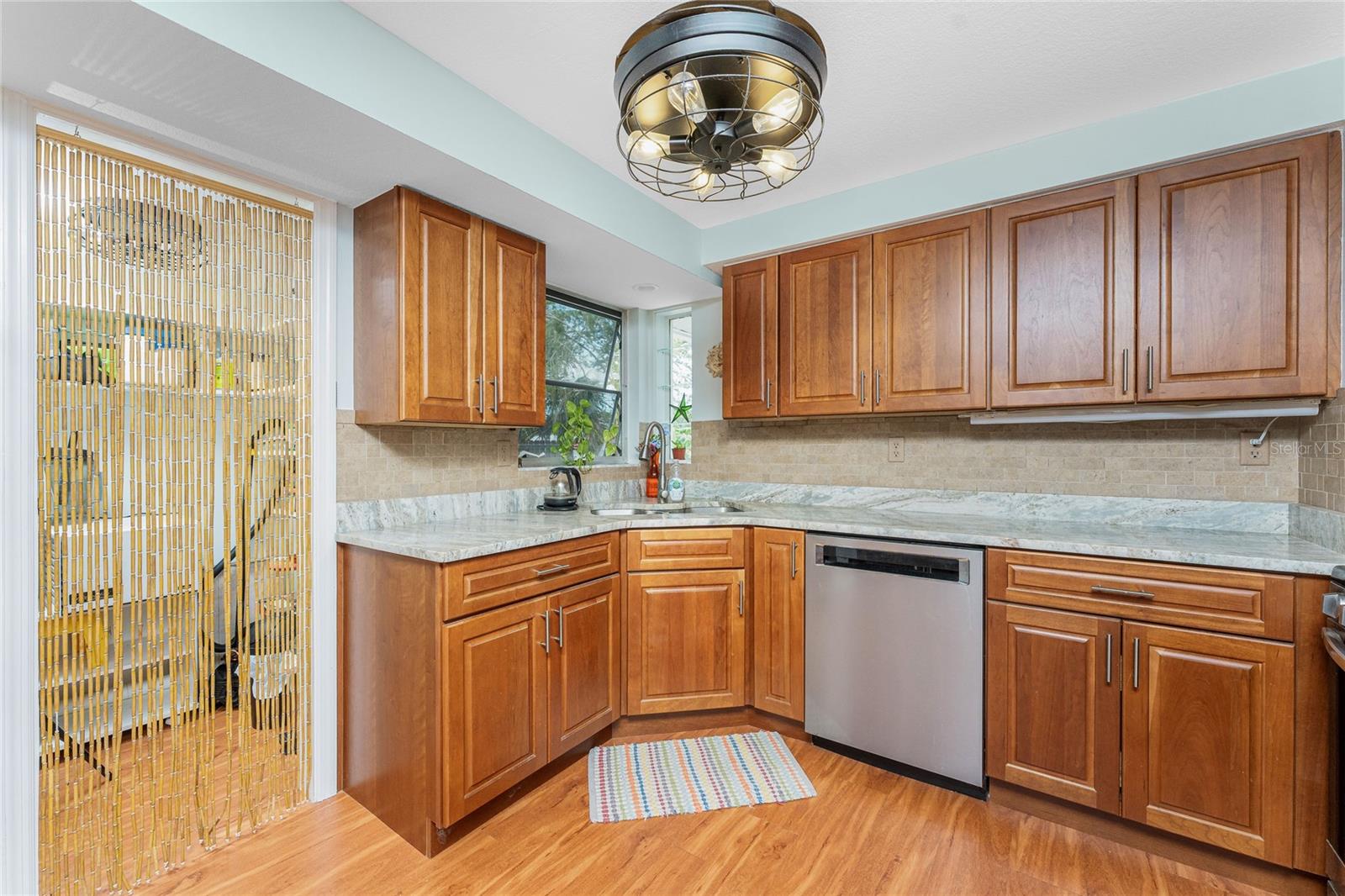 TROPICAL OASIS! Nature lover's paradise, in a quiet, coveted neighborhood neartown. Charming 3-bedroom/2 full-baths, fully renovated and well built ranch style block home!Peace-of-mind Flood Zone X, the highest and safest zone with a very low risk of flooding, and no mandatory flood insurance is required. From the front screened porch, enjoy the sunrise and a peaceful view of wooded acreage across the street. Many recentrenovations include high quality luxury vinyl tile flooring, ceramic tiled lanais and baths, a beautifulkitchen with solid wood cherry cabinets, stainless deluxe appliances, granite counters, andupdated bathrooms. The home feels very spacious with its large light-filled Florida Room and twolanais, front and back. Stay comfortable with ceiling fans in every room but the bathrooms! Theprimary bedroom is a welcoming retreat space, with walk-in closet, private bath, and French doorsopening out to the secluded patio with hot tub (optional), butterfly garden, deluxe fire-pit, and largelaundry line. Attached garage includes laundry area with a second kitchen sink, and optional fullinformal kitchen set-up for guests. THERE ARE TWO DRIVEWAYS TO ENTER THIS HOME, one withconvenient RV and EV electrical hookups. A variety of young fruit trees and shrubs are wateredwith a separate well-water automatic irrigation system. Over-sized lot has a large south-lawn shadestructure for a hammock and seating, looking over a delightful and creative yard. Enjoy amplestorage space in the 12' x 18' sturdy new shed with window-boxes for a cottage-feel, and a privateoutdoor shower with available propane heat for the cool days. The AC system has been equippedwith a 'soft start' unit, affording less energy to start the unit, and allowing generator use. NEWHURRICANE IMPACT WINDOWS throughout the main home, a newer roof, and many electrical,plumbing, and ductwork upgrades. Home is located near a trailhead to the beautiful Lemon BayEnvironmental Park, with miles of wooded hiking trails and a kayak launch, all within a short walk.Quaint Downtown Dearborn Street is a leisurely 1-1/2 mile bike ride away via quiet neighborhoodstreets, and features outdoor cafes, a weekly Farmers Market, and lively public events. You won'tfind a more delightful, welcoming, and updated home at this price! Some furnishings will be offeredseparately. There has been zero flooding incurred in this home from hurricanes!