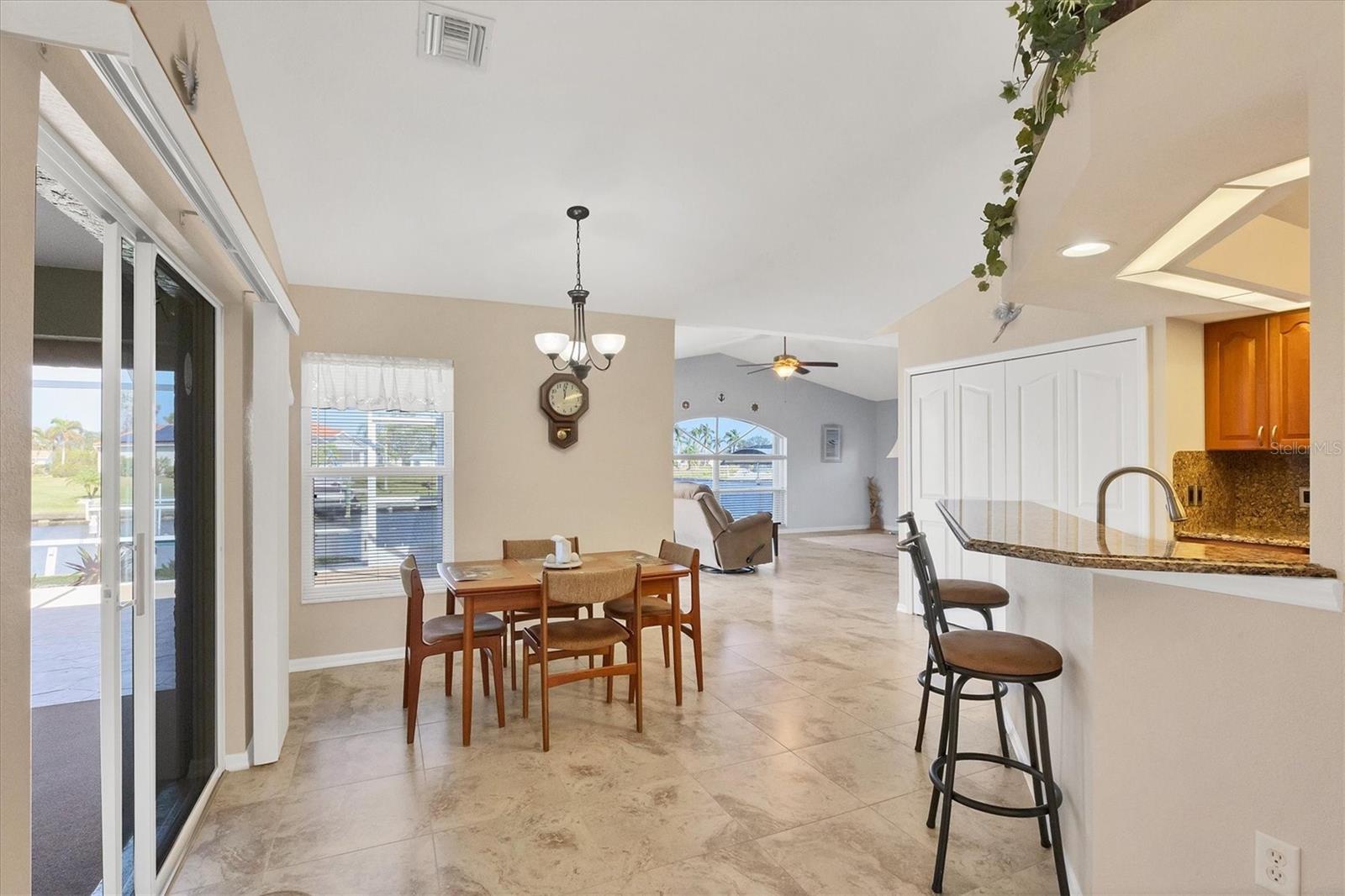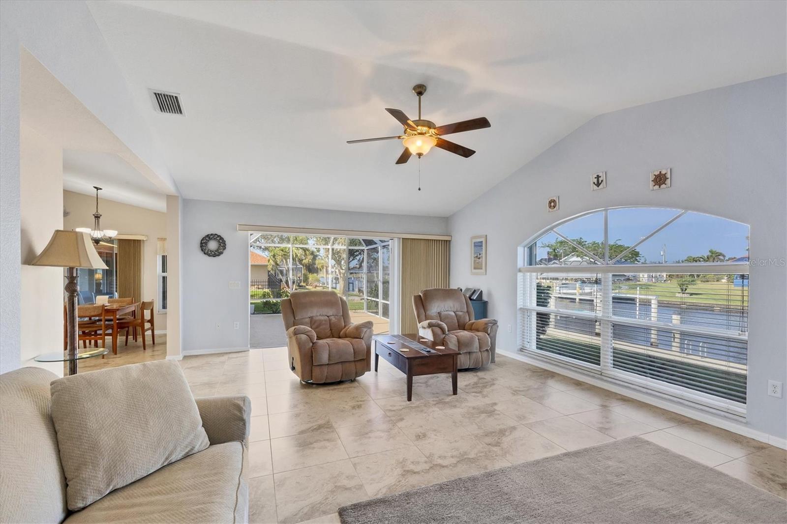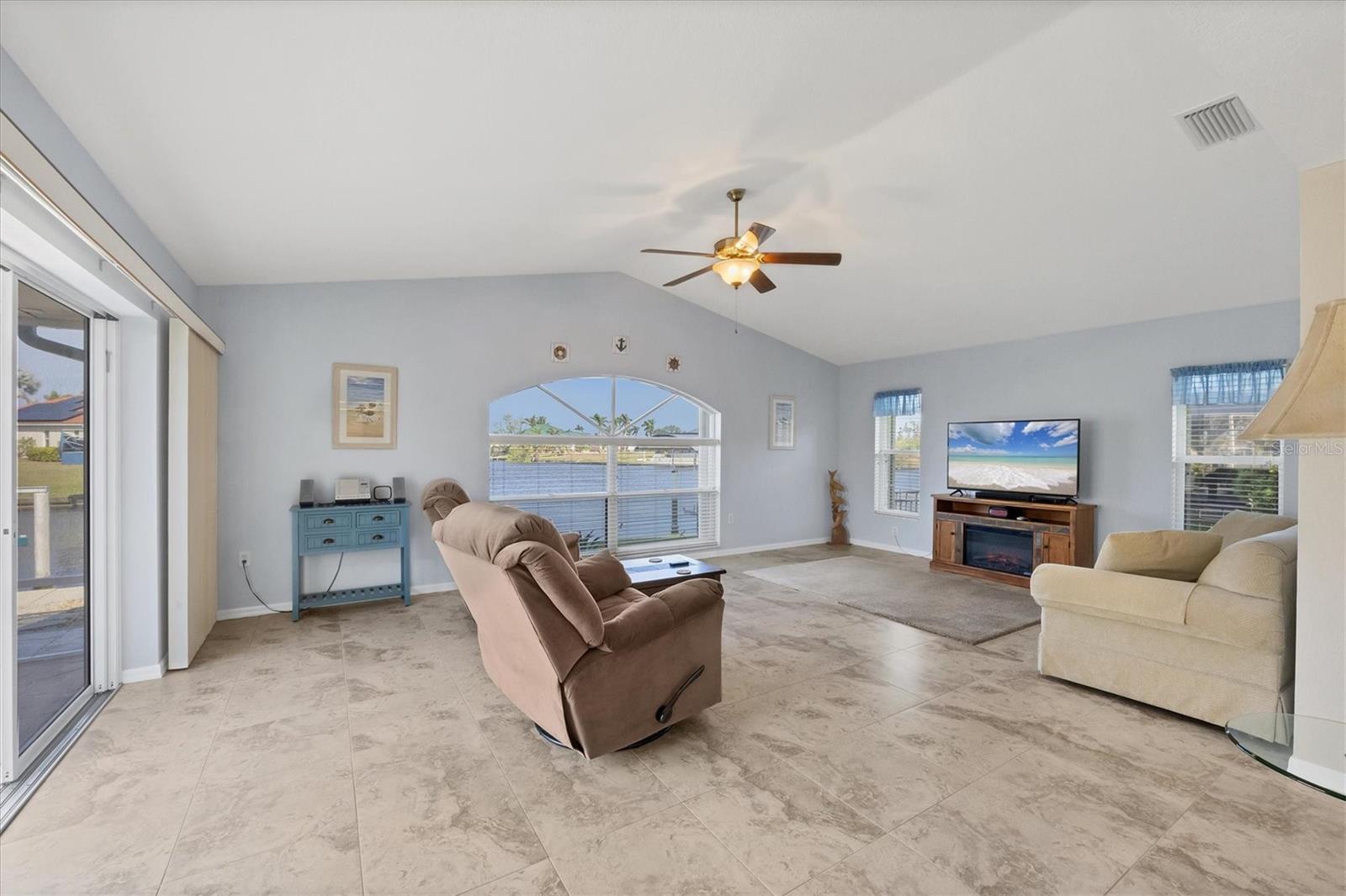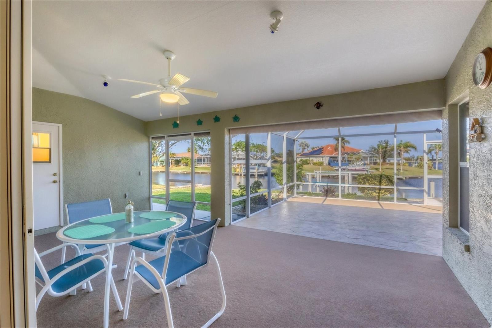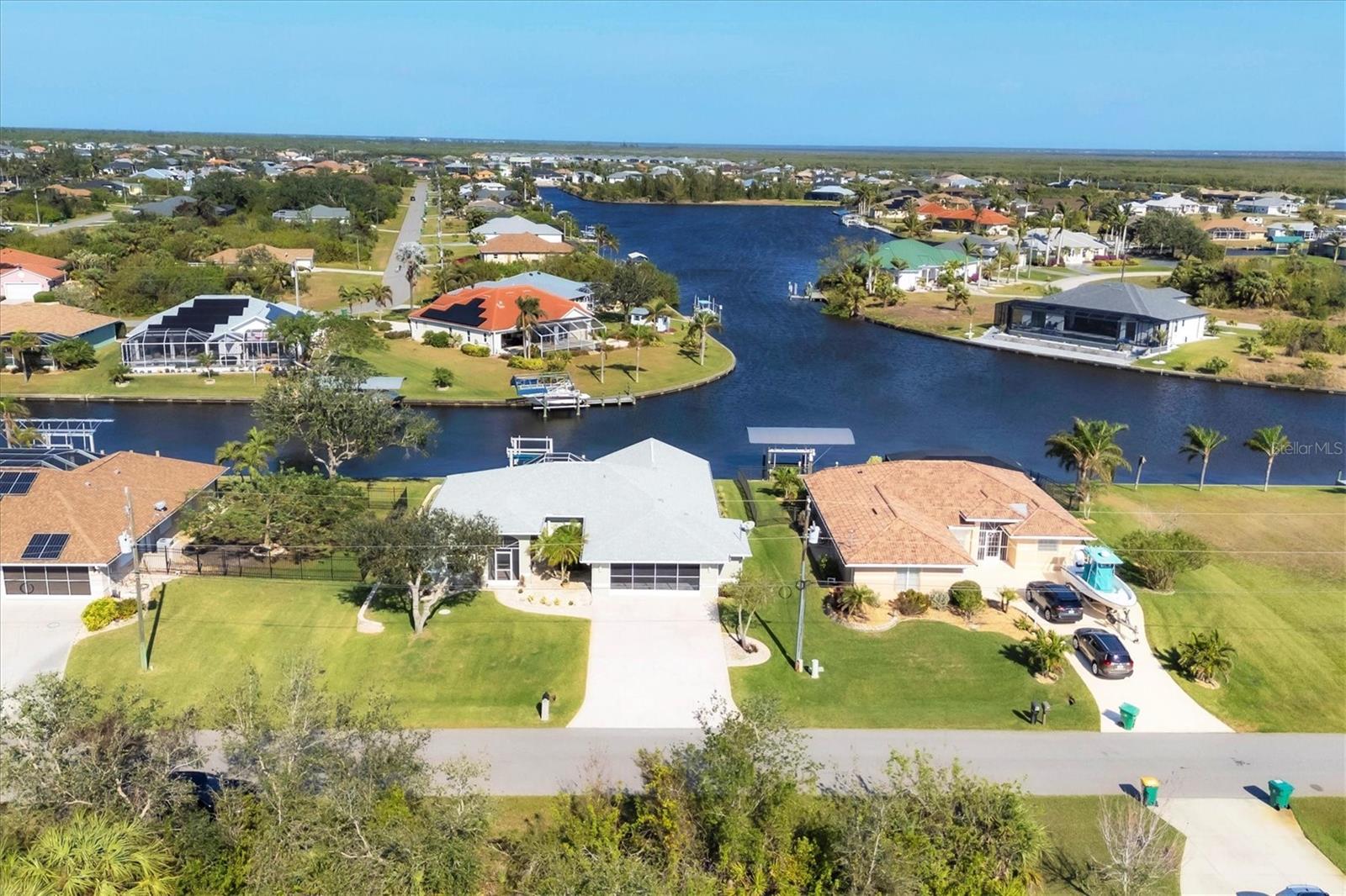 Discover this charming 3 bedroom, 2.5 bathroom waterfront home nestled in the coveted Section 93 of South Gulf Cove, offering breathtaking intersecting canal views. This residence provides direct access to the Gulf, making it a boater's paradise. Equipped with a seawall, cement dock, and lift, it ensures seamless and quick boating access through the nearby lock.Step inside and you'll be welcomed by a spacious, light-filled interior, where every room frames serene water vistas. A front screened entry with double doors leads you into a bright and airy living space, featuring volume ceilings and new tile flooring throughout.The renovated kitchen, updated in 2016, boasts Quartz countertops and backsplash, soft-close doors and drawers, complemented by a suite of newer stainless appliances. Designed for seamless entertaining, the home offers sliders from both the formal living and family rooms, providing easy access to the lanai. The expansive primary suite is designed to accommodate large furniture and features dual closets for ample storage. Sliders offer direct access to the lanai, allowing you to enjoy the beautiful outdoors with ease. The en-suite bathroom has been thoughtfully updated and boasts two sinks and a walk-in shower, creating a spa-like retreat.Guest bedrooms are thoughtfully situated on the opposite side of the home, with a conveniently located, updated bathroom between them, ensuring privacy and comfort for all occupants.Step outside to discover a large outdoor space featuring an extended lanai and pool bath, perfect for enjoying the Florida lifestyle. This versatile area can be enjoyed as is or offers plenty of room to add a custom pool of your own. The oversized two-car garage is complete with a utility sink and garage screen, creating a comfortable workspace or hobby area. Recent upgrades include a new roof installed in 2021, a new air conditioner in 2022, and a new generator added in 2023, ensuring modern comfort and reliability. With its open layout and picturesque views, this home is perfect for hosting gatherings or enjoying tranquil moments by the water. BONUS, house comes furnished, ask realtor for details!