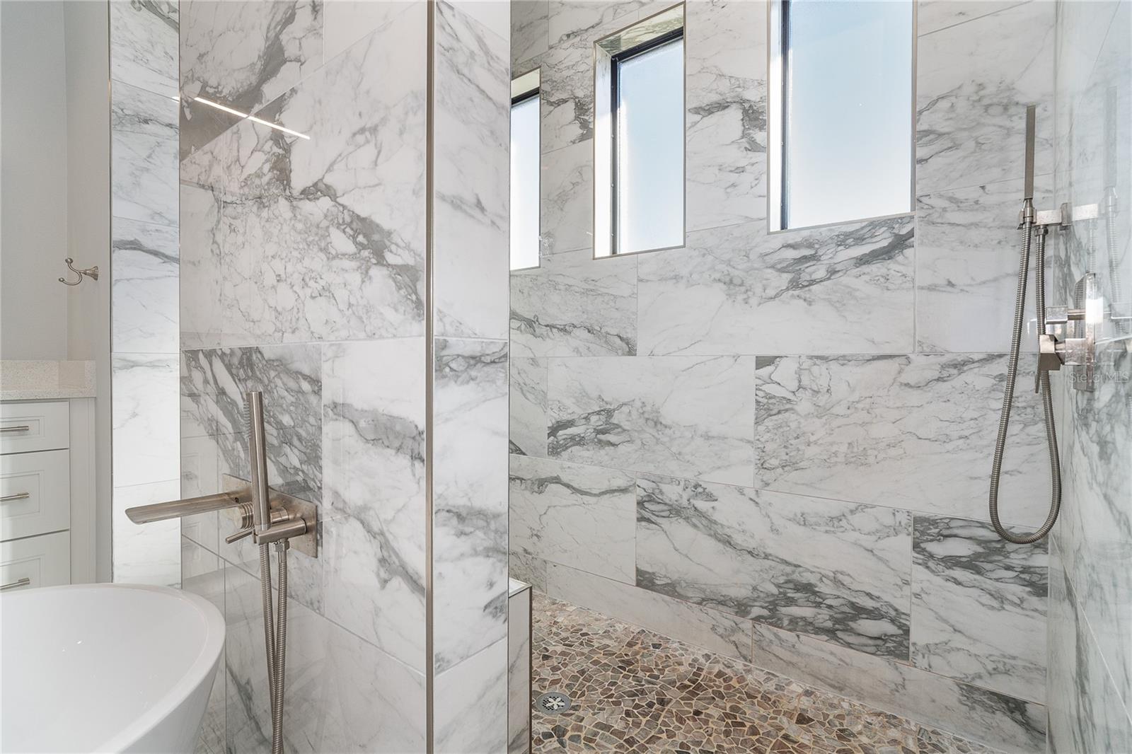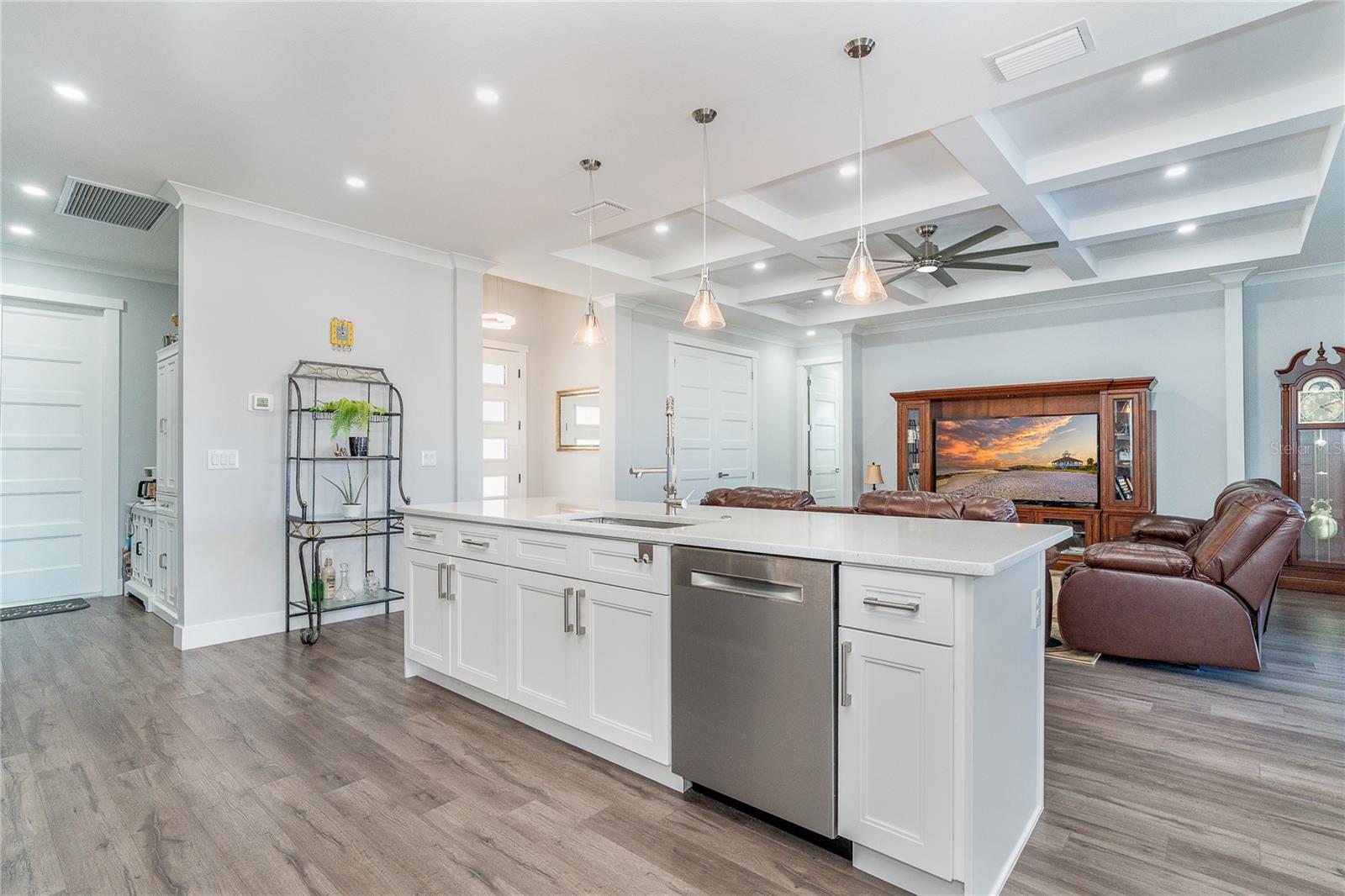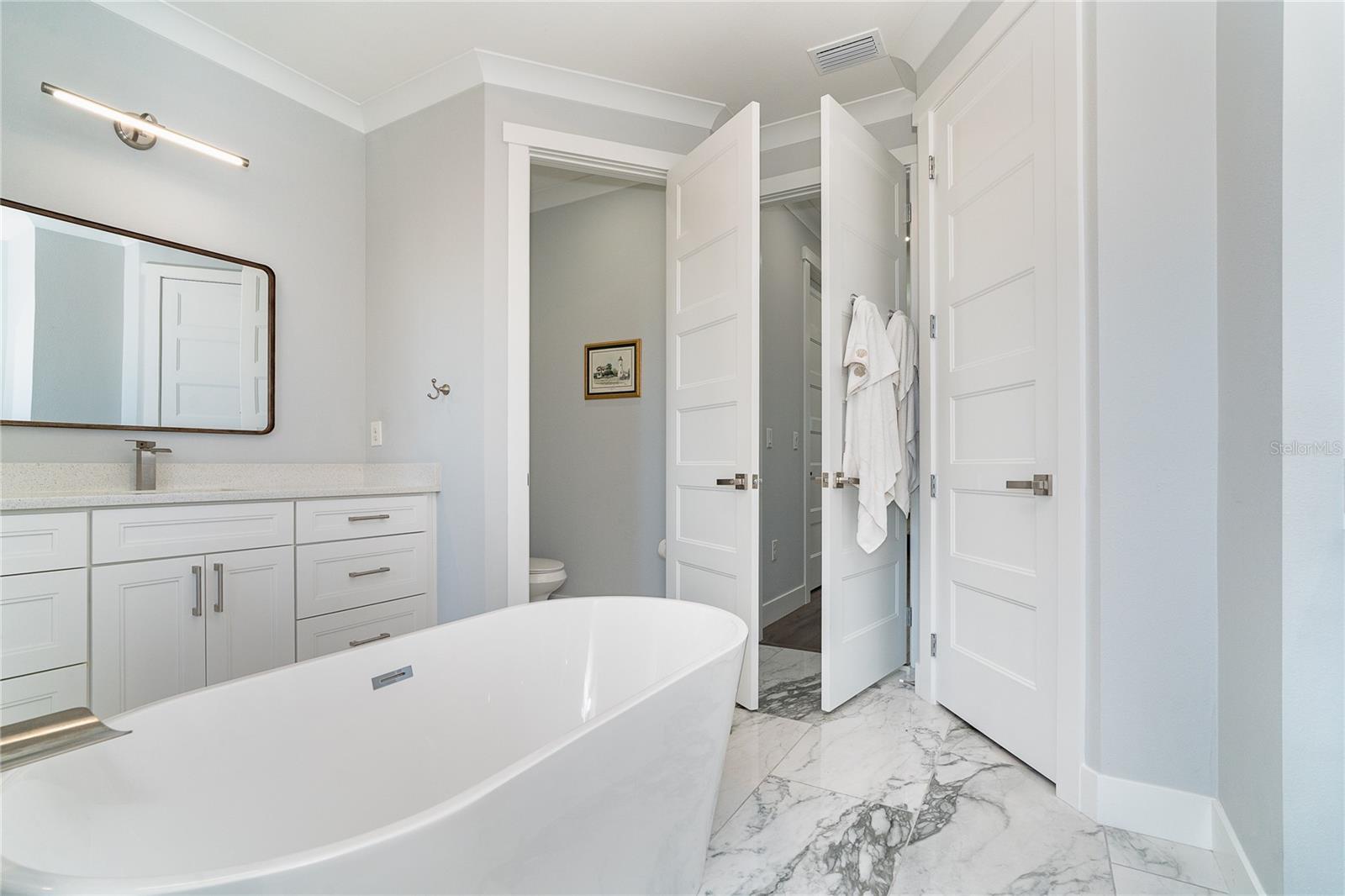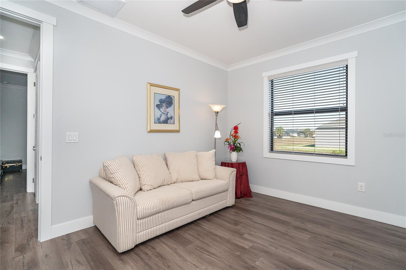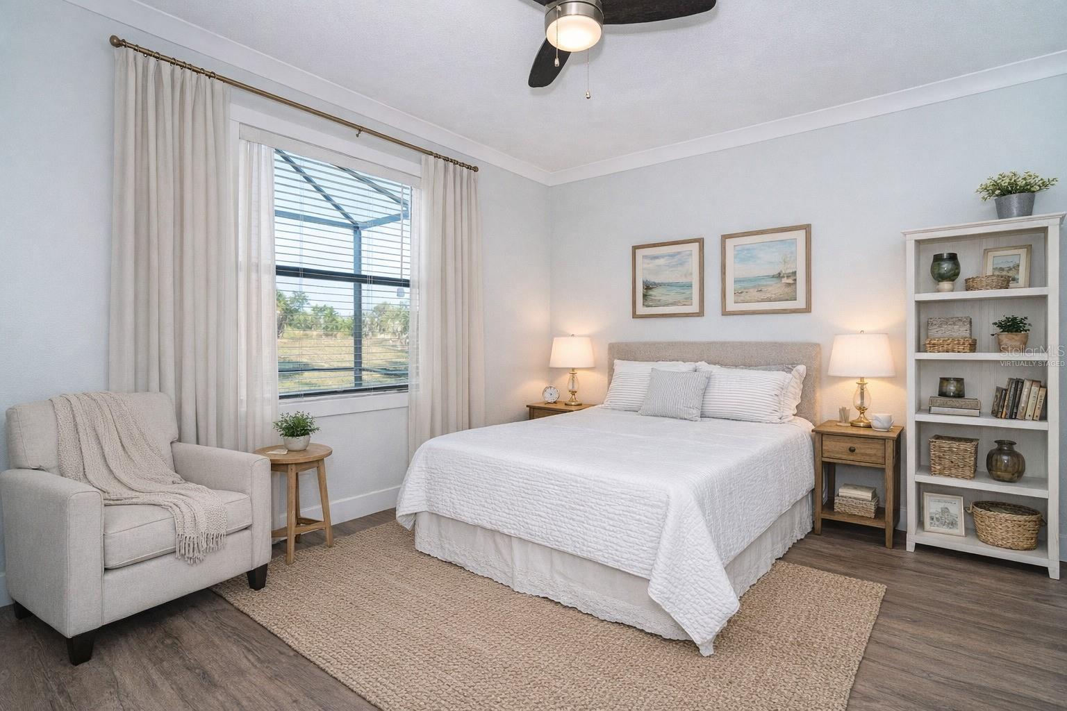 One or more photo(s) has been virtually staged. Prepare to be impressed when you step into your new home! Thoughtfully designed with soaring ceilings, 8-foot Doors, Coffered Ceilings, and Crown Molding throughout. This home offers a refined yet inviting atmosphere filled with natural light. The open-concept living area flows into a Chef's Kitchen featuring a Bertazzoni range and top-of-the-line Bosch appliances, including a Built-in wall oven that also functions as a microwave. The luxurious primary suite is a true retreat, showcasing a spa-inspired bathroom with a stunning walk-in shower and soaking tub. A versatile fourth bedroom with double doors can easily serve as a home office or den. A stylish guest bathroom featuring double sinks is conveniently located between two additional guest bedrooms. Outdoors, enjoy your own private oasis with a spectacular Lap Pool complete with Lighting, Sun Shelf, and pool heater. The oversized screened lanai is the perfect place to spend your evenings relaxing or entertaining. This exceptional home is truly Move-in Ready. Schedule your private showing today.